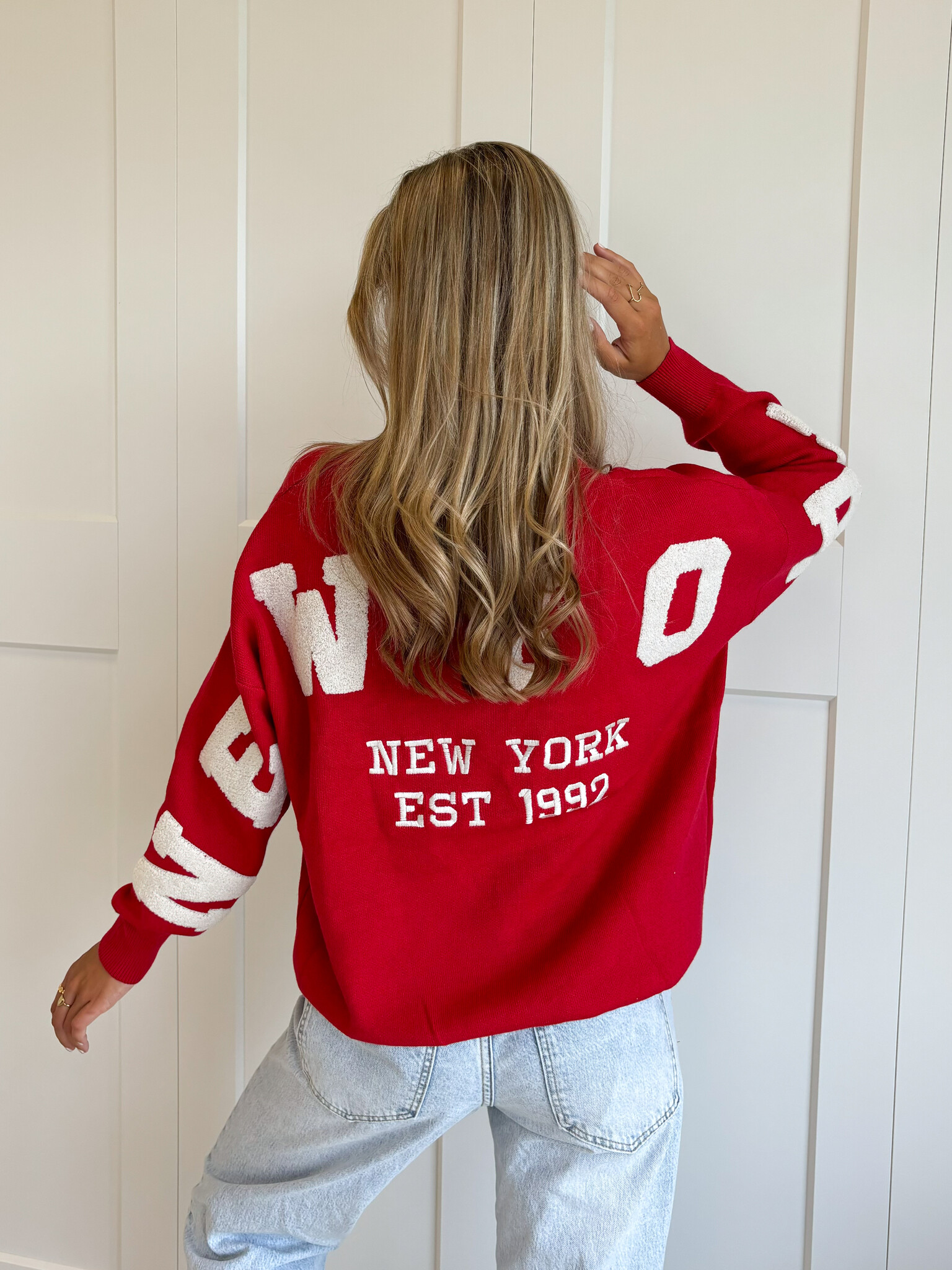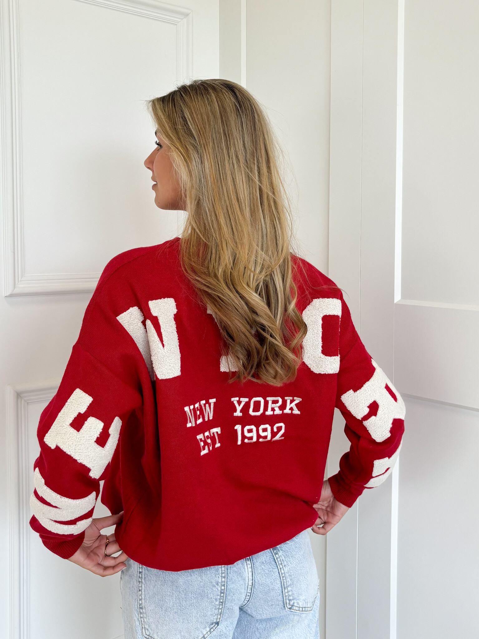 Hoe amazing is deze New York trui! De trui zit heerlijk en de tekst heeft een zachte textuur. Combineer het met één van onze jeans of pantalon. Je shopt deze trui in twee verschillende kleuren!