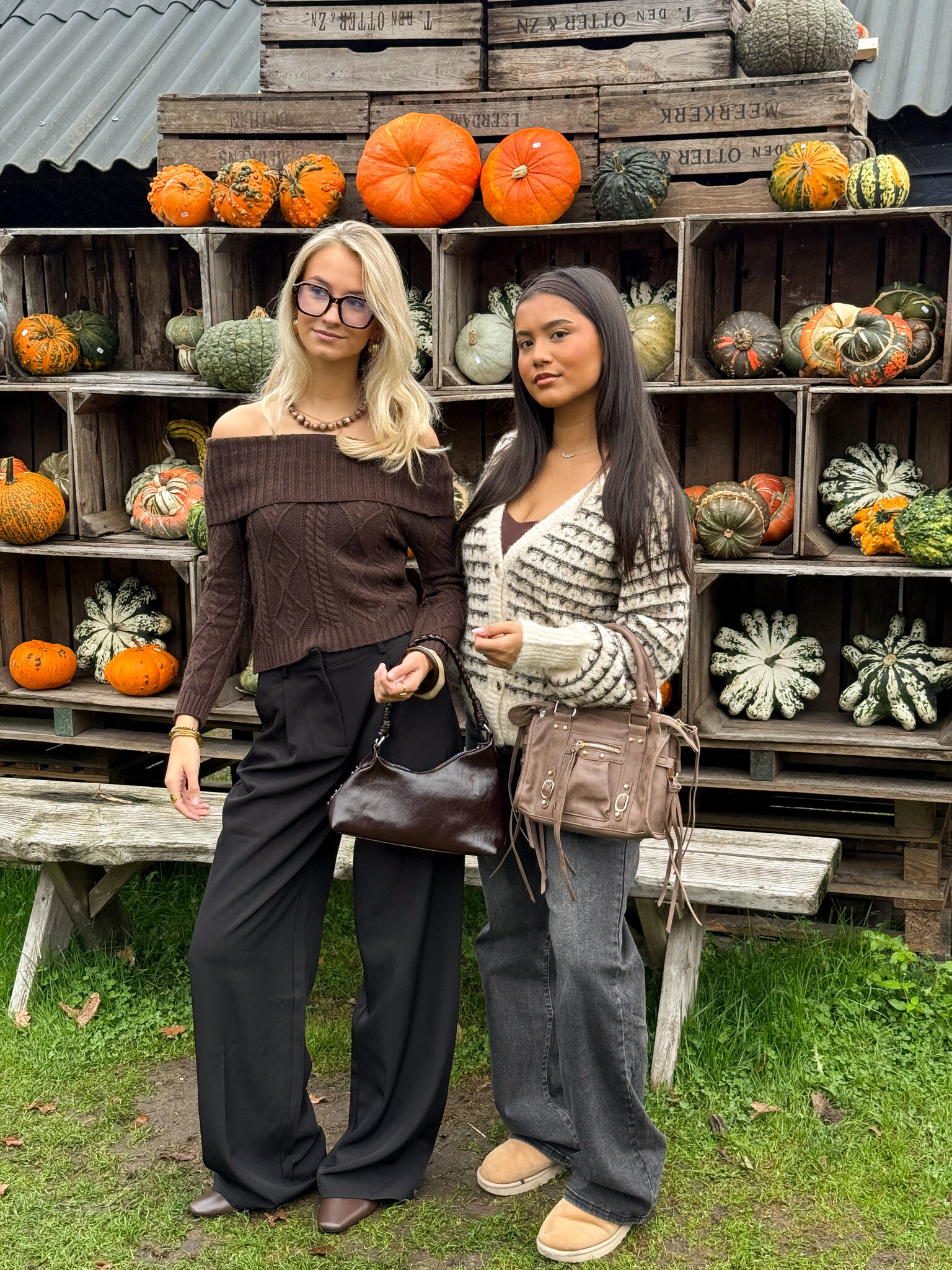 Draag haar nonchalant over één schouder met een jeans voor een casual look, of combineer haar met een rok en laarzen voor een feminine touch. Een absolute musthave voor de herfst en winter!