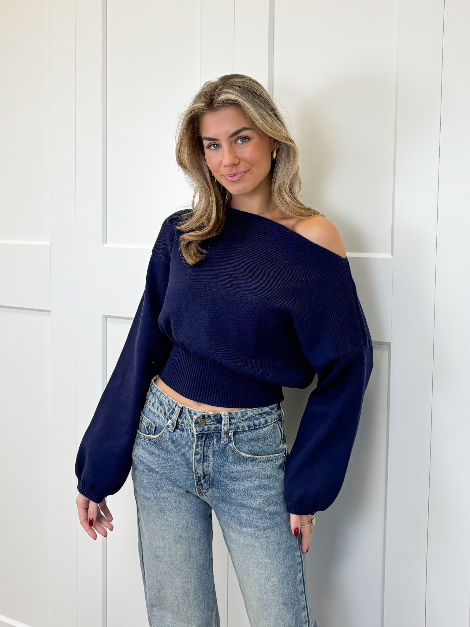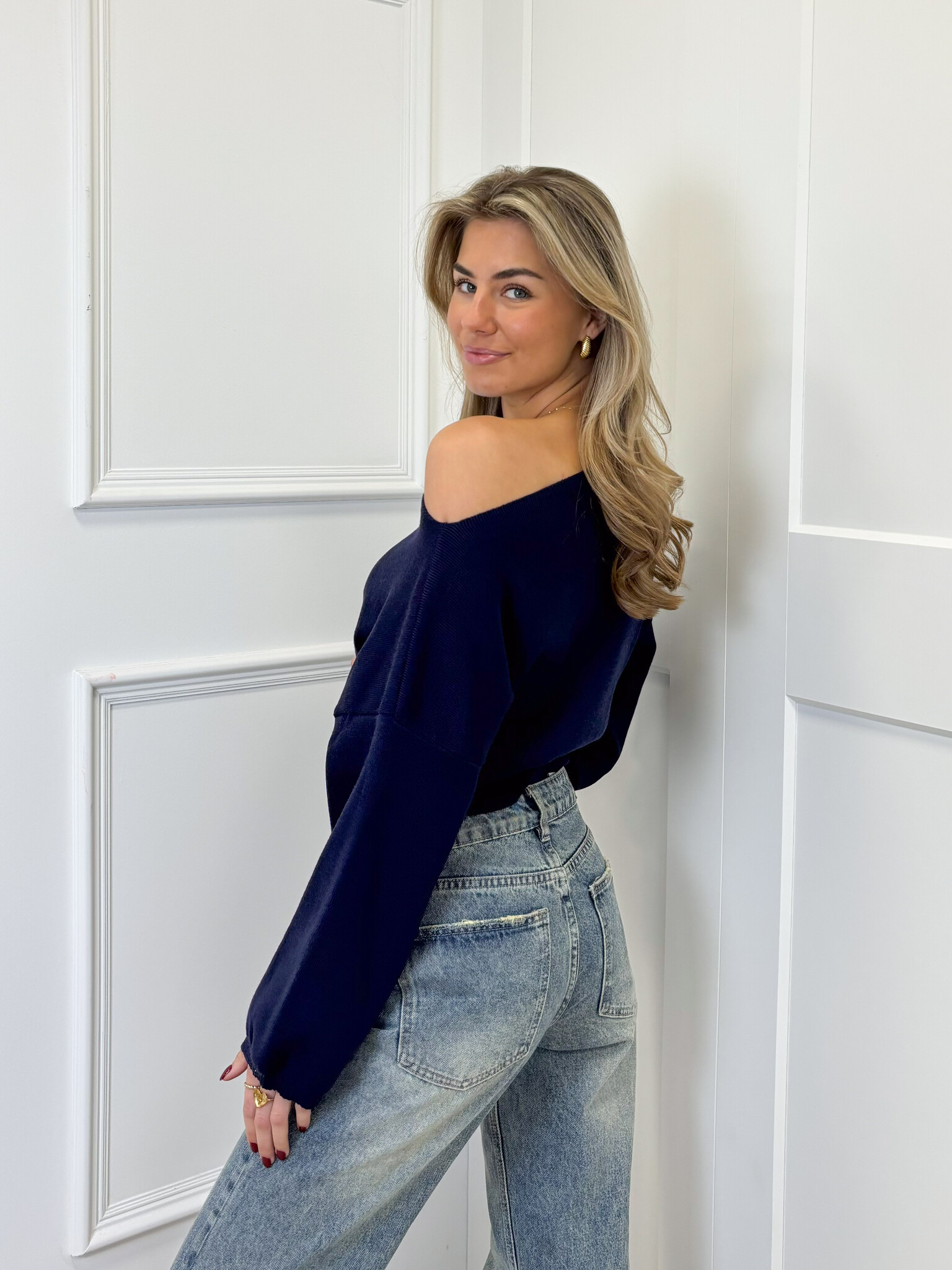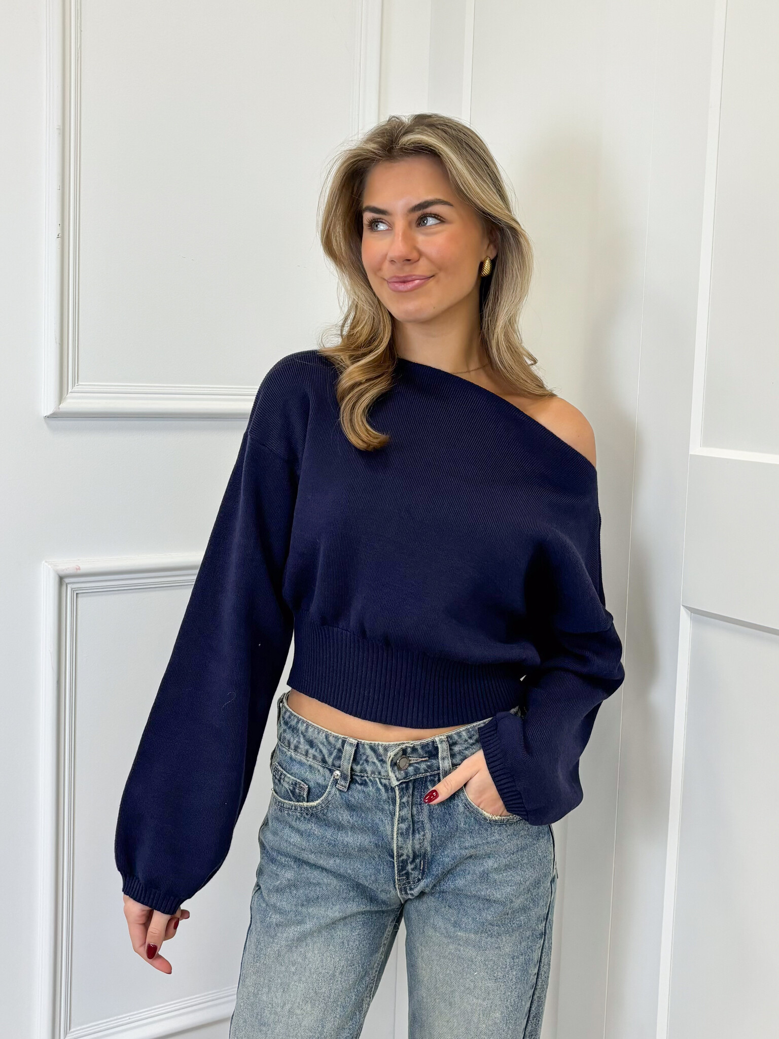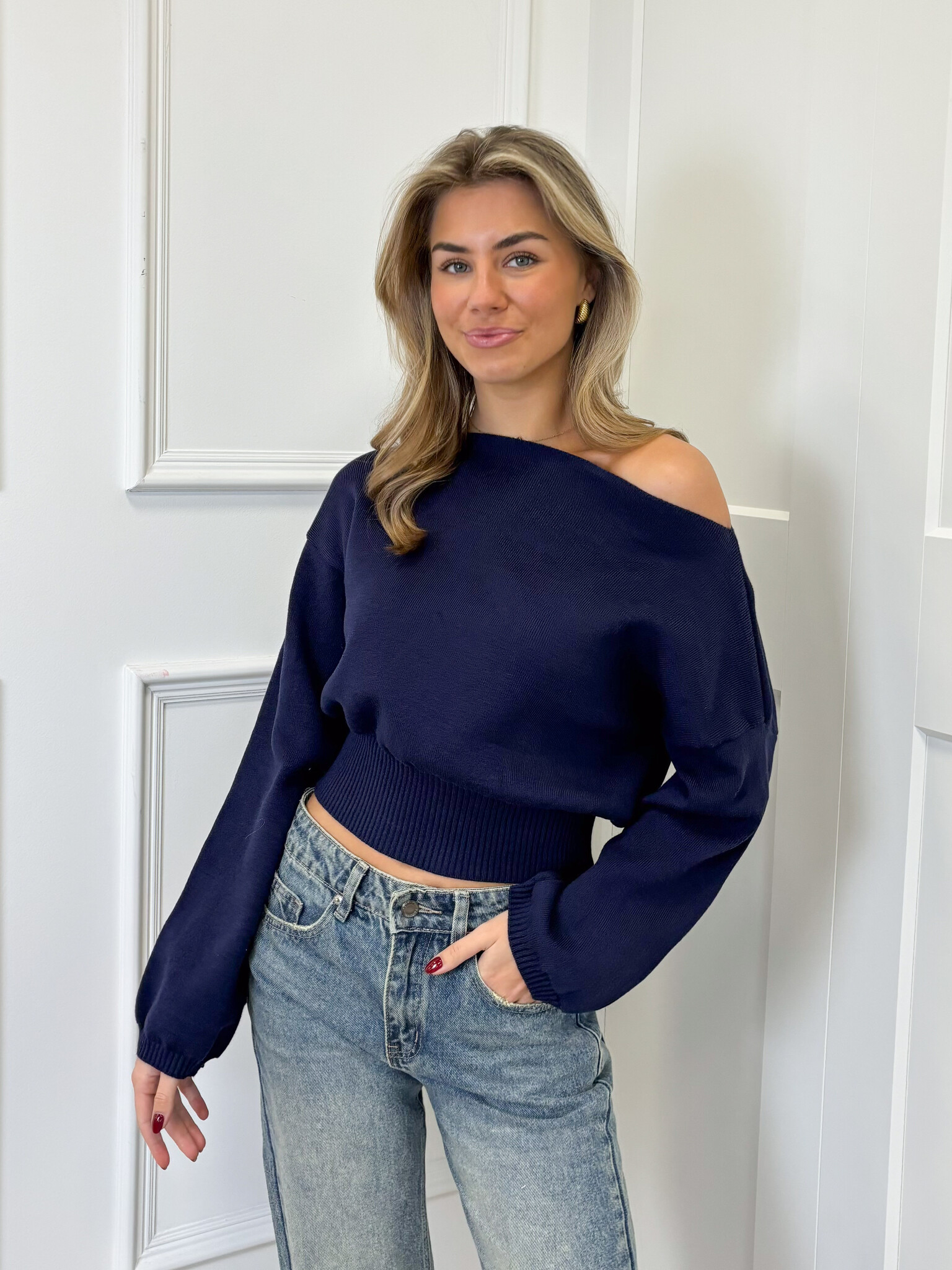 De perfecte basic trui! Door het cropped model, wijd uitlopende mouwen en de off shoulder model is de trui net even wat specialer! Deze trui zit aan de onderkant wat getailleerd, waardoor het een mooi model geeft. Een tijdloze trui die je gemakkelijk overal op kan combineren. Dit truitje valt mooi soepel en houdt je lekker warm voor de koudere dagen. Je shopt deze trui in meerdere kleuren!