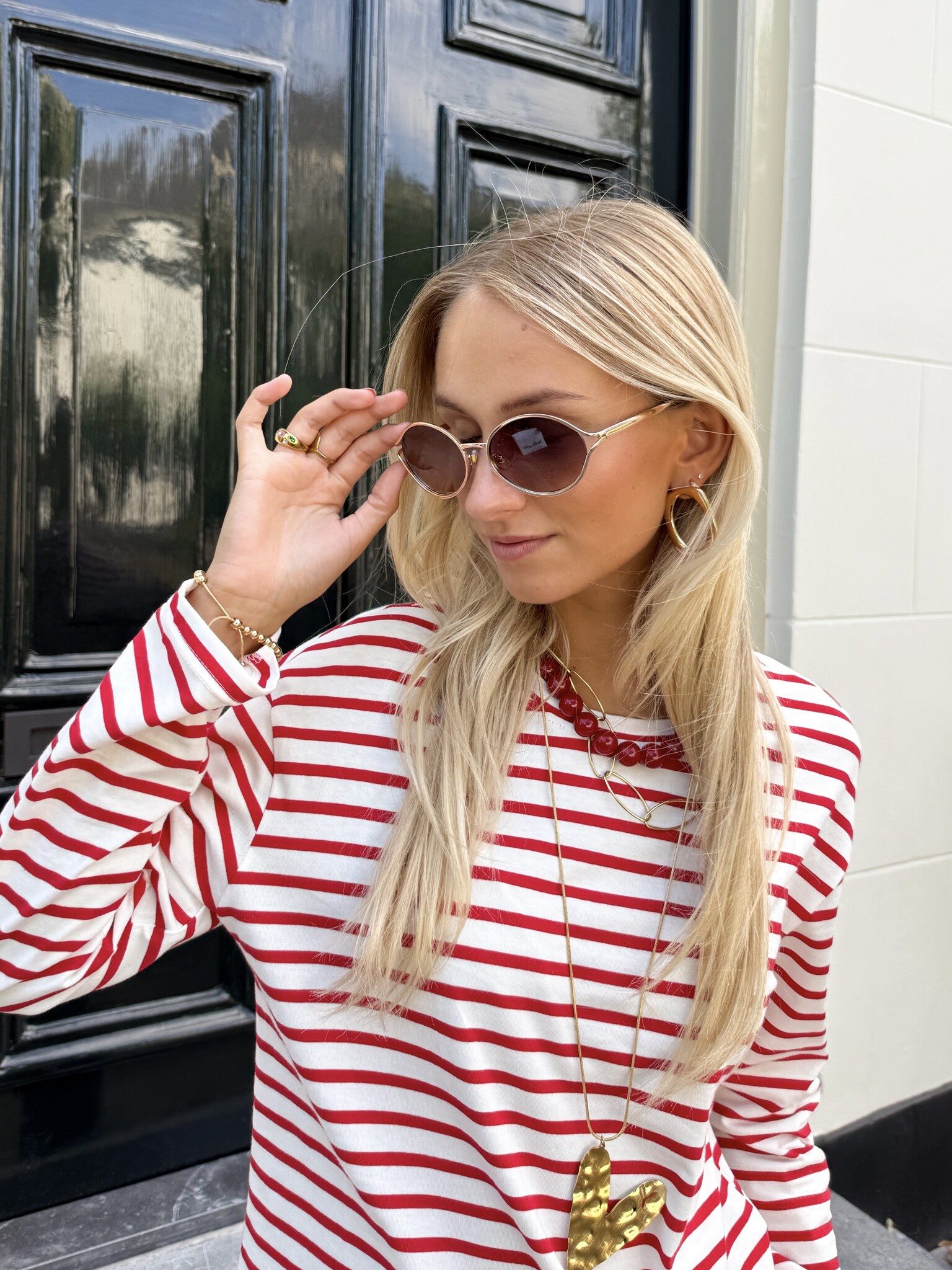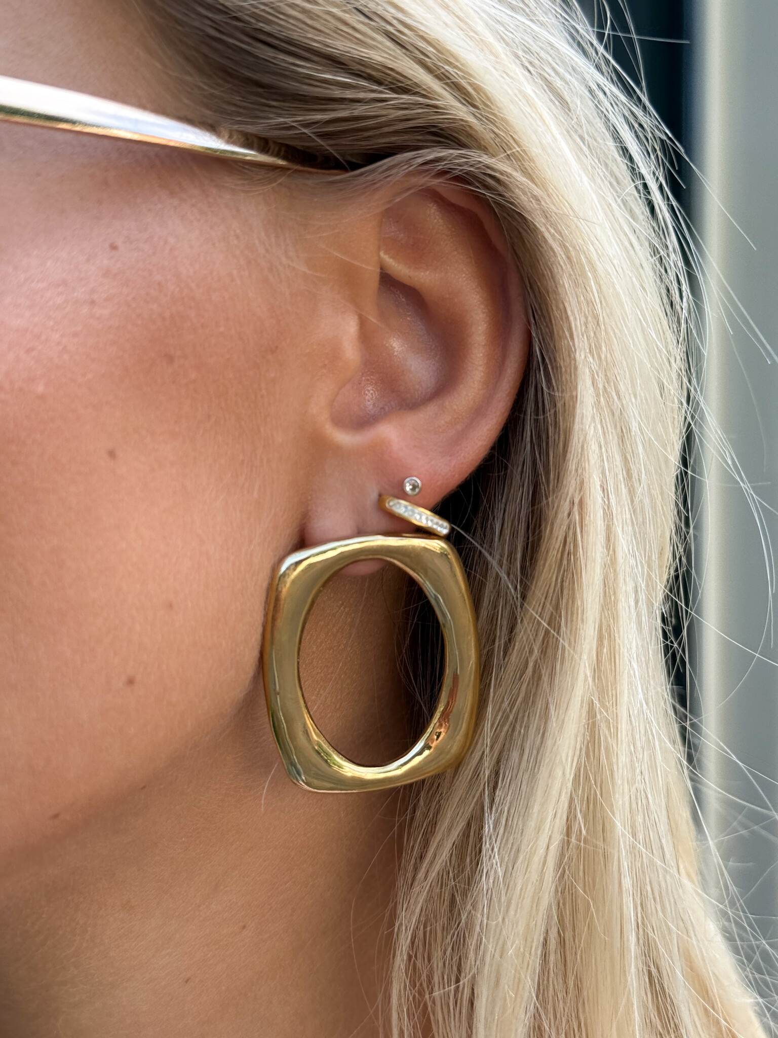 Stijlvolle gouden steek oorbellen met een unieke ronde rechthoekige vorm. Elegant en modern tegelijk, perfect voor elke gelegenheid.