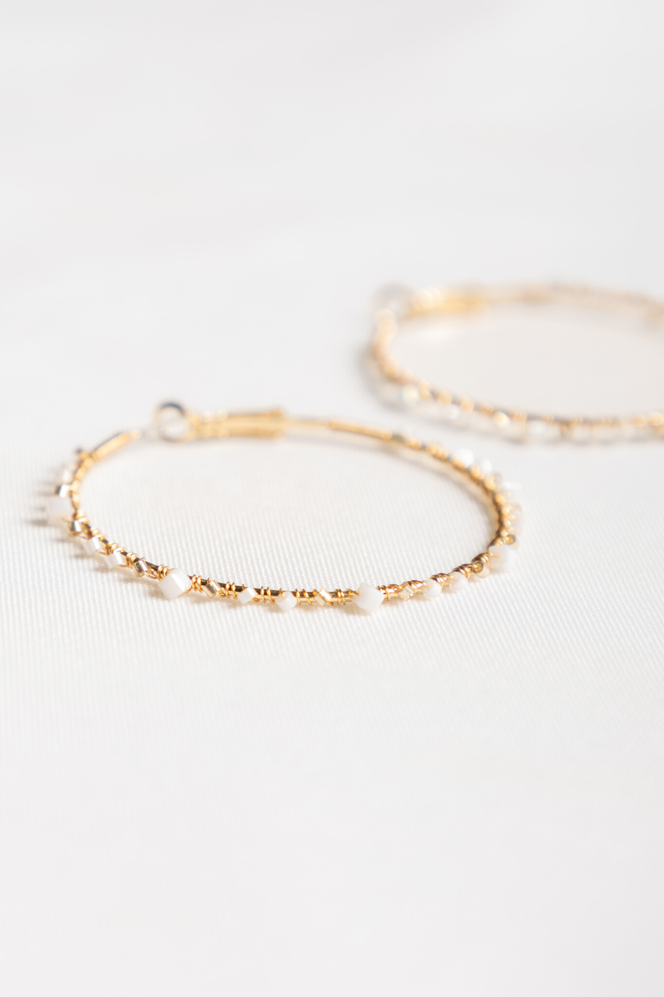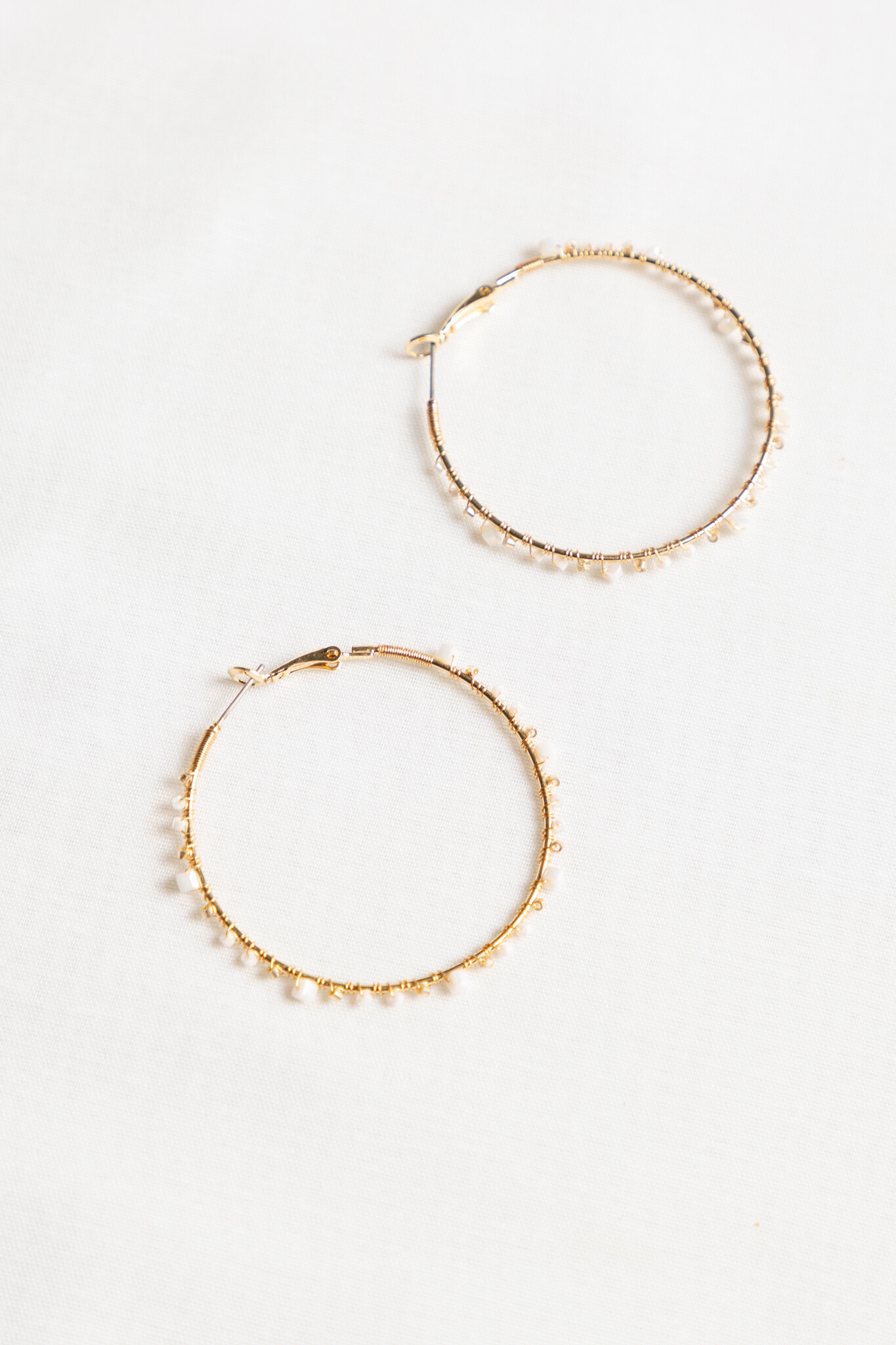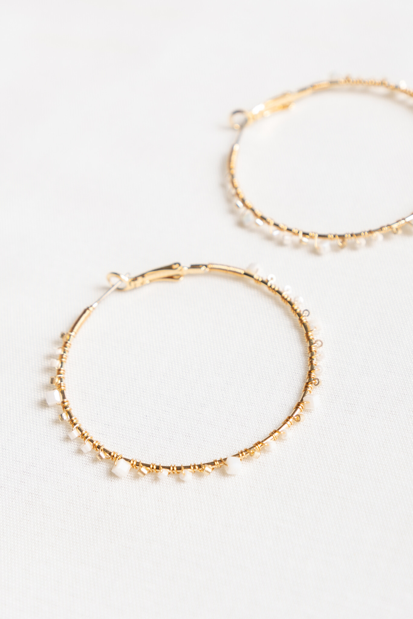 Deze dunne gouden creolen van stainless steel zijn een subtiele blikvanger. De fijne ring van 5 cm in diameter is versierd met kleine witte steentjes die schitteren in het licht. Door het minimalistische design zijn ze perfect voor dagelijks gebruik, maar geven ze ook een sparkling touch aan een avondlook. Combineer ze met een blouse of een satijnen jurk voor een elegante uitstraling. Gemaakt van stainless steel.