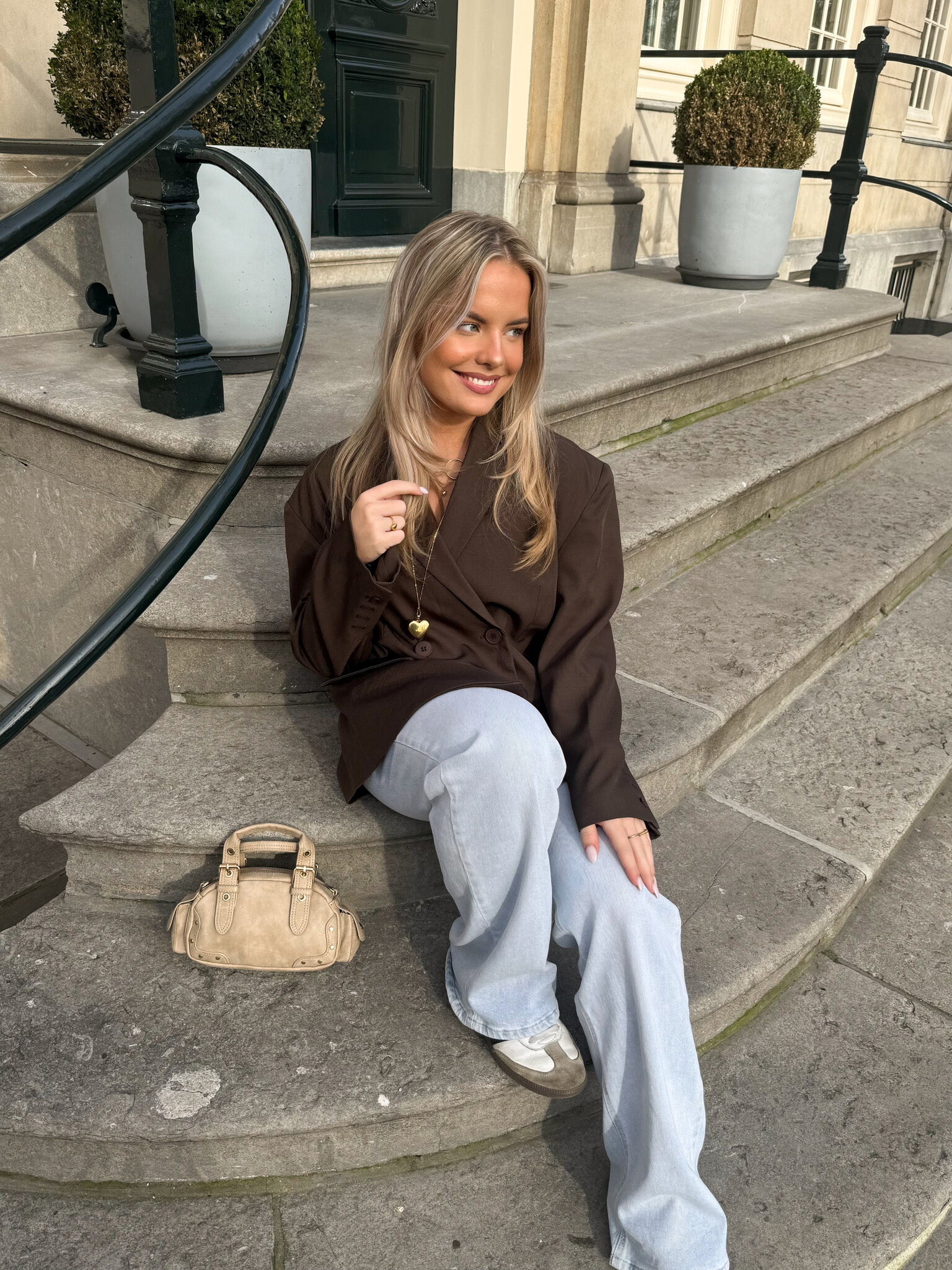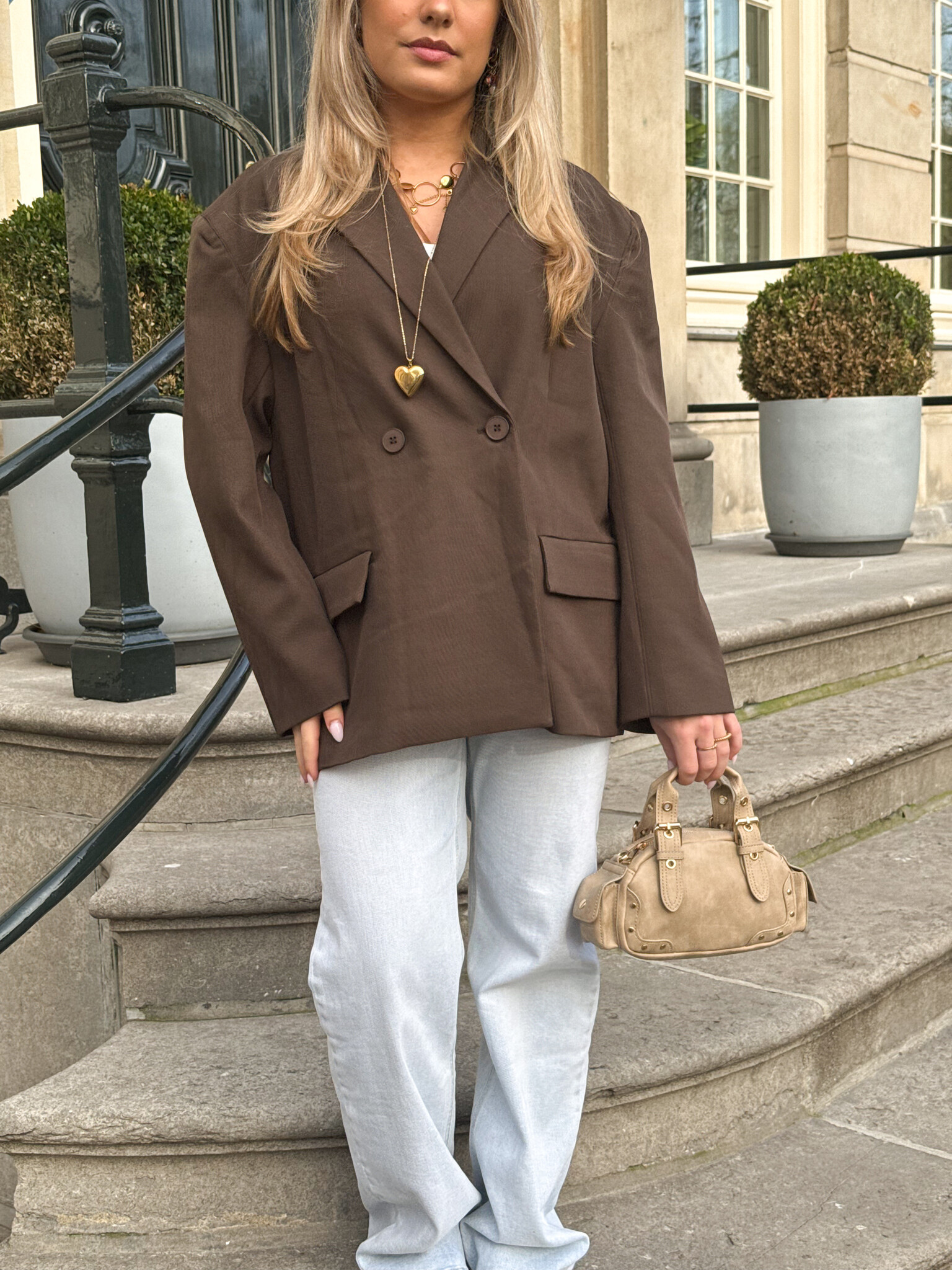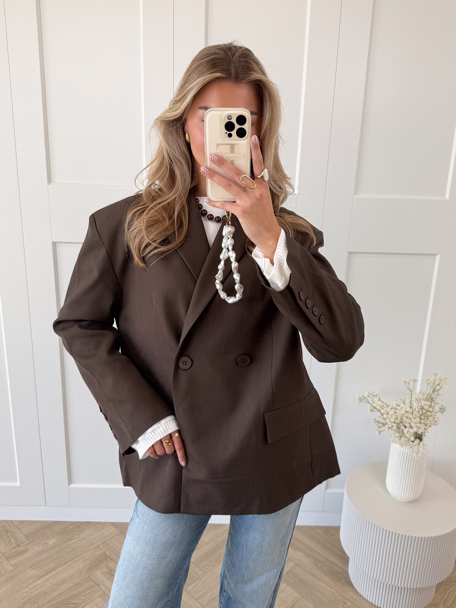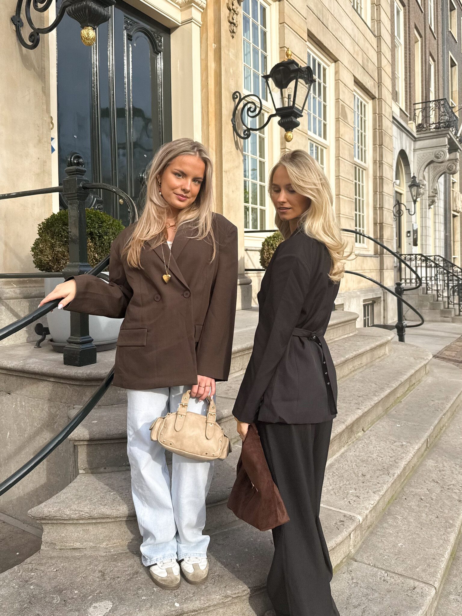 Deze oversized blazer is het ultieme key item dat elke outfit direct een stijlvolle upgrade geeft. De blazer heeft een losvallende pasvorm die zorgt voor een moderne en nonchalante uitstraling, terwijl de klassieke details hem tijdloos maken. Aan de voorkant vind je sierzakken en een dubbele knoopsluiting die zorgt voor een nette afwerking. Bij de mouwen zitten kleine knoopjes, wat een subtiel detail toevoegt aan het geheel. De achterkant is voorzien van twee elegante splits, waardoor de blazer extra mooi valt en je gemakkelijk kunt bewegen.