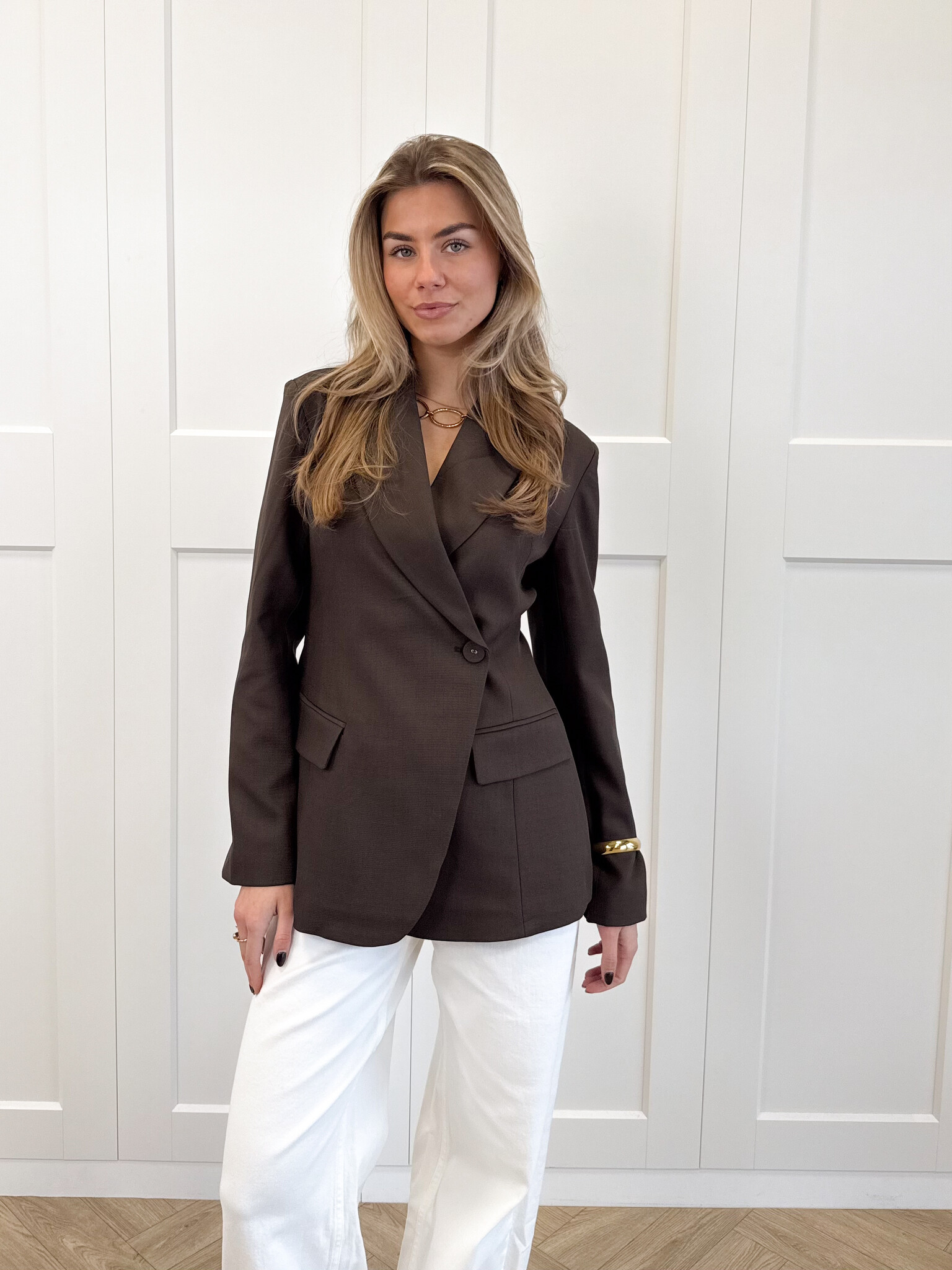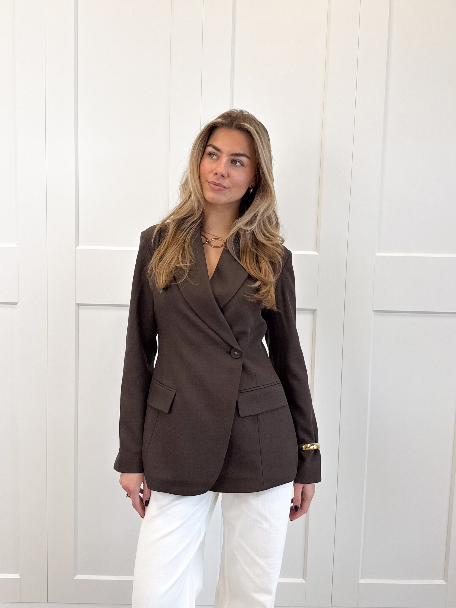 Deze stijlvolle blazer is een echte eyecatcher voor je garderobe. Het overslagmodel met knoopsluiting zorgt voor een elegante en moderne uitstraling. Door de lichte taillering krijgt je silhouet een vrouwelijke vorm, zonder dat het strak aanvoelt. De sierzakken geven een classy detail en maken de look helemaal af. Makkelijk te combineren met een jeans voor een casual vibe of met een pantalon of rokje voor een meer geklede outfit. Perfect voor school, werk, een etentje of een dagje shoppen. Dit item geeft elke look direct een fashionable upgrade en is ideaal voor meiden die houden van stijl met een zachte, girly uitstraling.