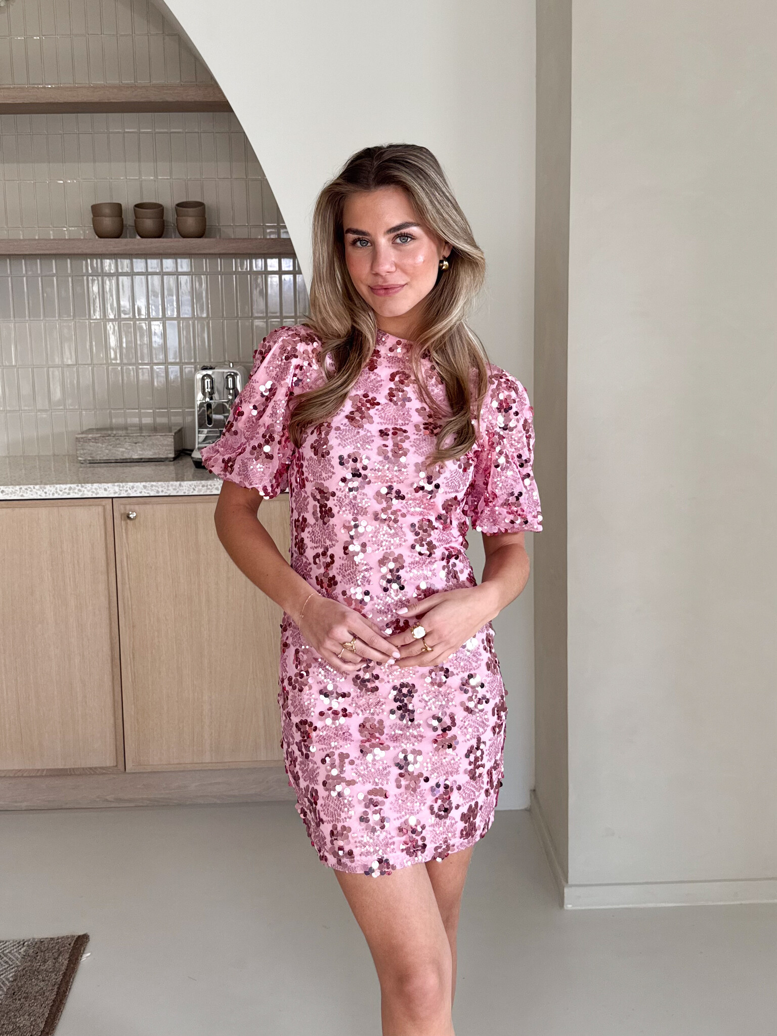 Hoe amazing is de roze glitter jurk! De pofmouwen en glinsterende pailletten maken deze party dress een echte eyecatcher voor de feestdagen. Aan de achterkant zit een verborgen ritssluiting. Het heeft een kleine open back en er zit een knoopsluiting aan de achterkant van de nek. Perfect voor de aankomende feestdagen, een nieuwjaarsfeest, of avondjes stappen met vriendinnen. Deze glitter jurk is dé must-have voor jouw party wardrobe.