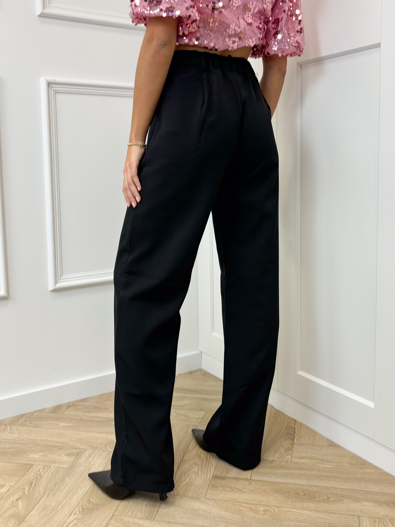 Pantalons en broeken heb je nooit genoeg van, dus deze prachtige basic kan echt niet ontbreken! De broek is makkelijk te combineren, dus combineer eindeloos met je favoriete topjes en sweaters en je bent helemaal ready to go. Het sluit perfect aan bij de taille door de elastische band. Stijl je outfit af met een fancy riem die je door de lusjes kan doen. Je shopt deze musthave in twéé verschillende kleuren!