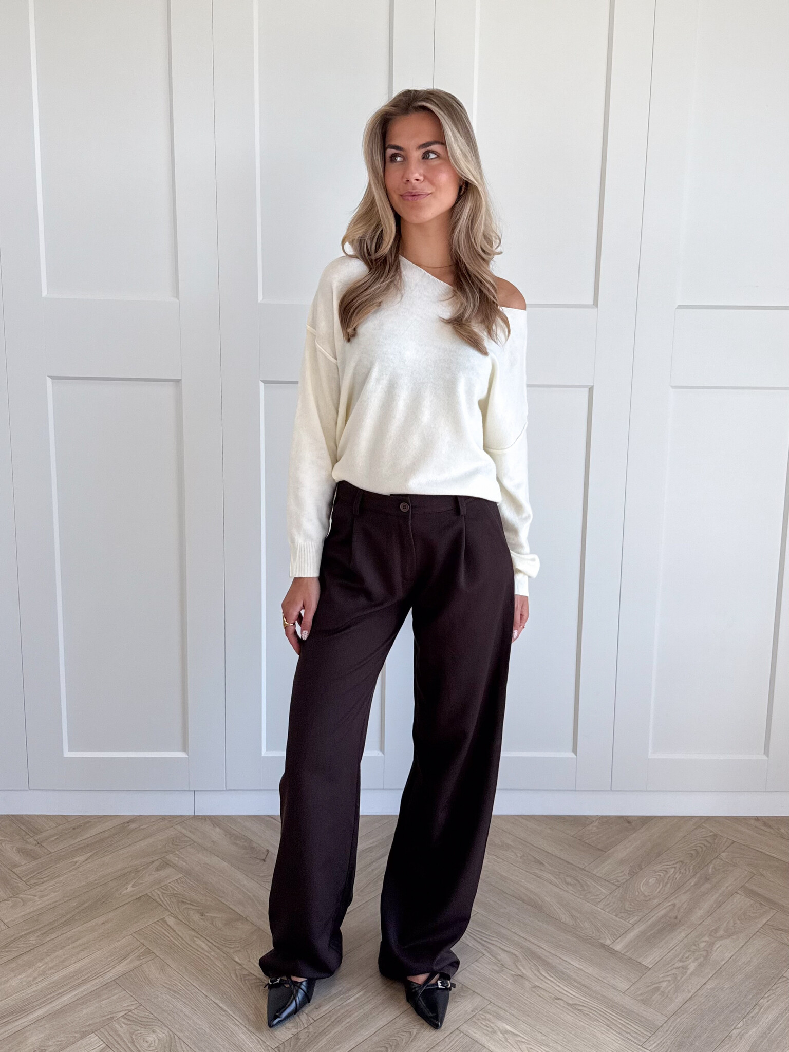 Jouw nieuwe low-waist loose-fit crush. Deze tijdloze pantalon accentueert heeft een perfecte hoogte. Niet te laag en ook niet te hoog waist. De broek valt lekker los en soepelvallend. De pantalon heeft zakken.