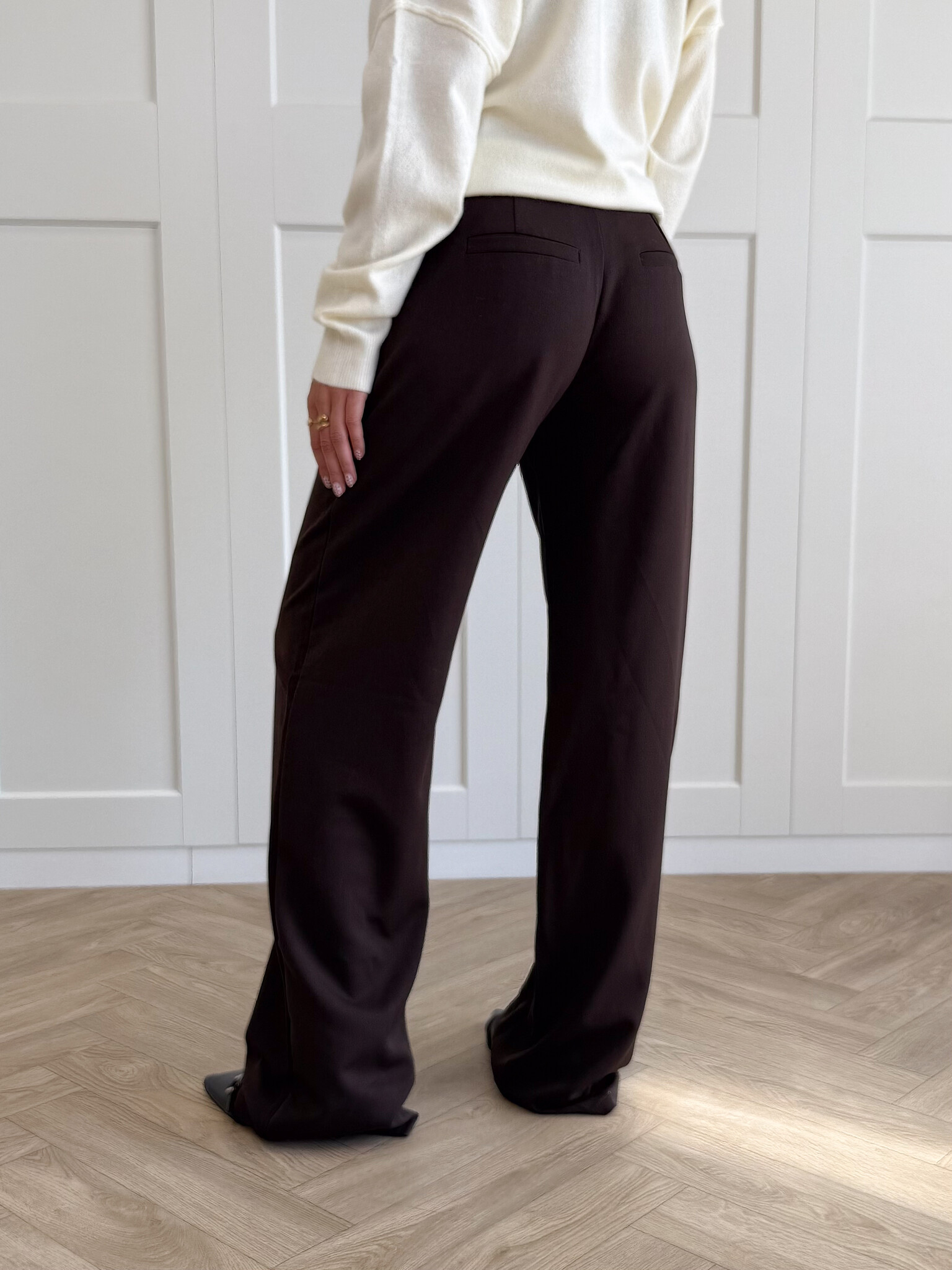 Deze pantalon is een stijlvolle essential die elke outfit een elegante upgrade geeft. Het hoge taillemodel zorgt voor een vrouwelijk en flatterend silhouet, terwijl de rechte pasvorm de broek een moderne en tijdloze look geeft. Aan de voorkant zitten handige steekzakken, perfect voor een relaxte uitstraling en praktische details. De achterkant is afgewerkt met sierzakken, waardoor de pantalon een nette en verfijnde look behoudt. Met riemlusjes kan je eenvoudig een riem toevoegen om je taille extra te accentueren en je outfit compleet te maken.