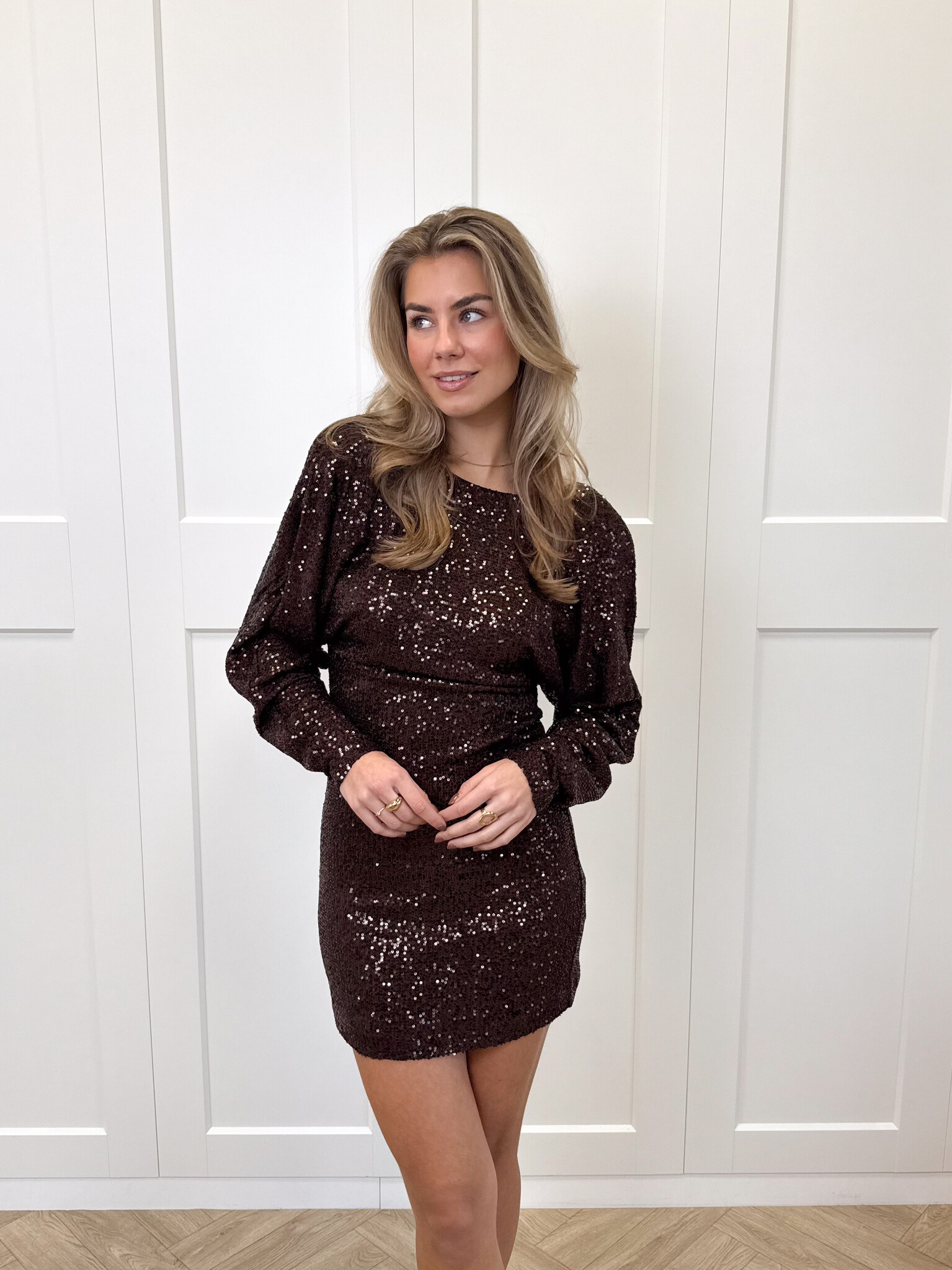 Deze jurk is een echte showstopper binnen de partycollectie. De glinsterende pailletten reflecteren het licht prachtig, waardoor je gegarandeerd alle ogen op je gericht hebt. De open rug voegt een sexy maar elegante touch toe, terwijl de schoudervulling zorgt voor een mooie vorm en extra structuur. Een subtiele antislip rand aan de binnenkant houdt de jurk perfect op zijn plek, zodat je de hele avond comfortabel kunt dansen en bewegen. De pasvorm is vrouwelijk en flatterend, waardoor de jurk geschikt is voor verschillende lichaamstypes. Combineer met hoge hakken en minimalistische accessoires voor een glam look, of laat de jurk spreken door hem met een simpele clutch te stylen. Deze jurk is perfect voor feestdagen, verjaardagen, girls nights out en iedere gelegenheid waarbij je wilt stralen.