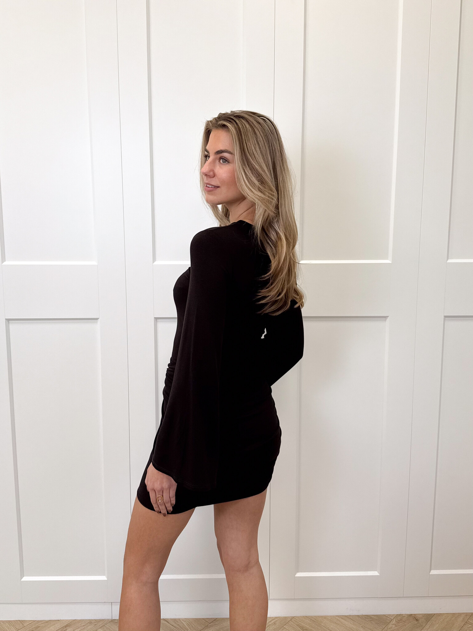 Deze bodycon jurk is perfect voor meiden en vrouwen die een elegante en vrouwelijke uitstraling willen. Het gedrapeerde strikdetail aan de voorkant voegt een speels en chic accent toe, terwijl de lange mouwen zorgen voor een classy finish. De pasvorm sluit mooi aan op het lichaam, waardoor de jurk de silhouet flatteert en een stijlvolle, moderne look creëert. Het materiaal voelt zacht en comfortabel aan en heeft net genoeg stretch om je te laten bewegen zonder in te leveren op stijl. Combineer de jurk met hakken en minimalistische accessoires voor een elegante party- of dinnerlook, of laat de jurk spreken door te kiezen voor opvallende sieraden. Perfect voor speciale gelegenheden, feestjes, dates of een avondje uit waarbij je wilt opvallen met een stijlvolle, girly touch.