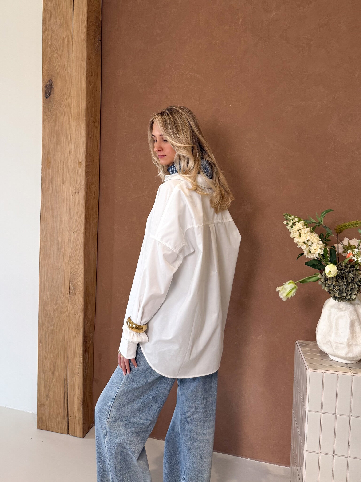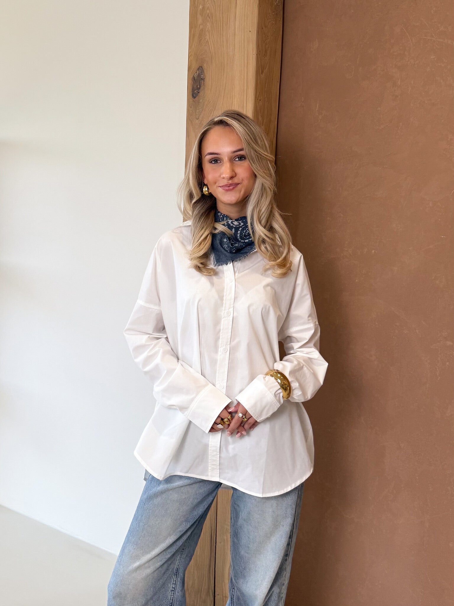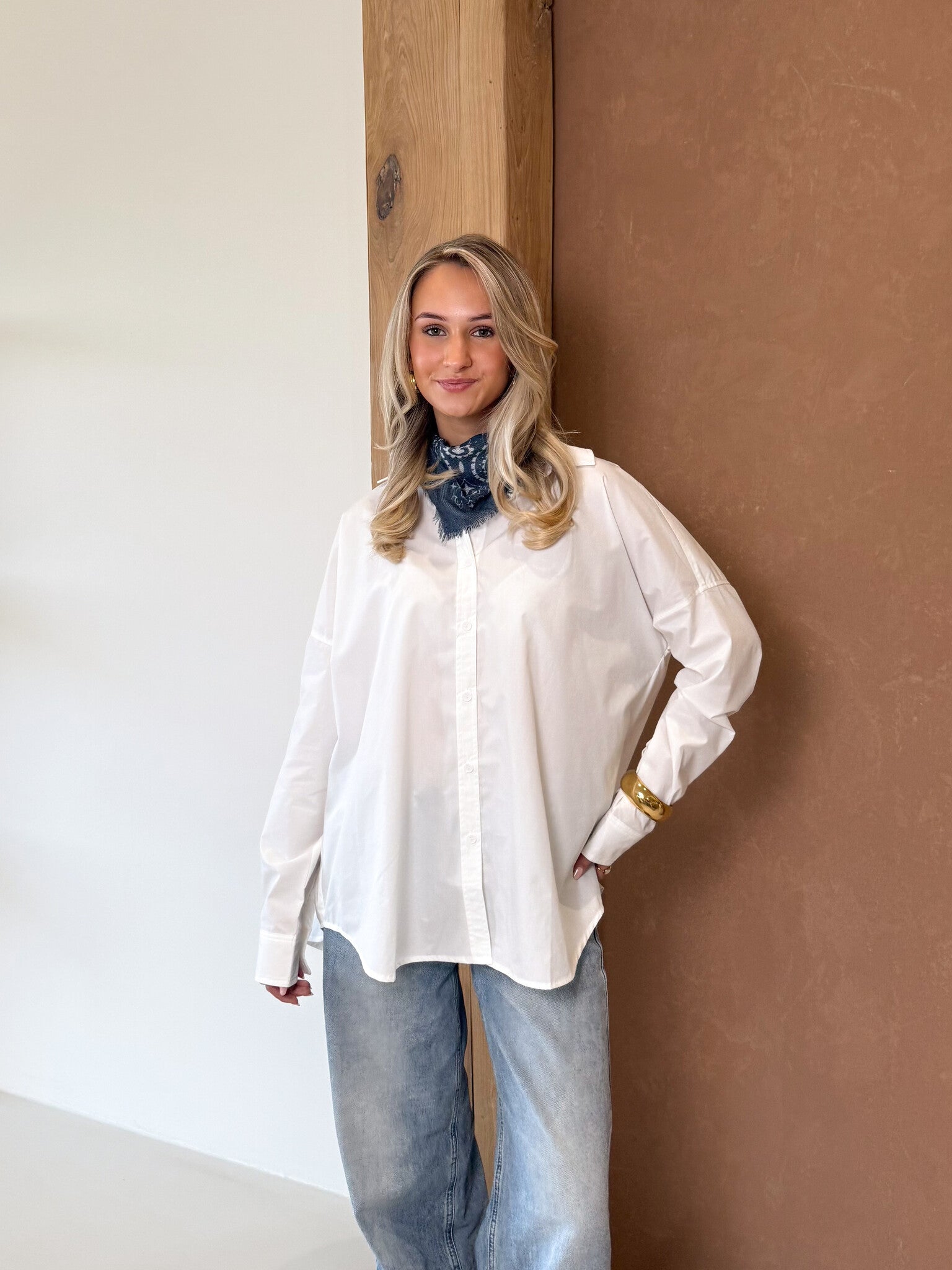 Deze oversized witte blouse is een echte wardrobe essential. De loose fit geeft een nonchalante, effortless vibe terwijl de klassieke witte kleur zorgt voor een tijdloze en classy uitstraling. De blouse valt ruim en comfortabel, waardoor je ‘m zowel open als dicht kunt dragen. Style ‘m casual met een jeans en sneakers voor een everyday look of combineer met een pantalon en hakken voor een meer sophisticated outfit. Ook leuk om half in je broek te dragen voor die trendy touch. Perfect voor werk, school, een lunchdate of zelfs een avondje uit. Een musthave die je eindeloos kunt combineren.
