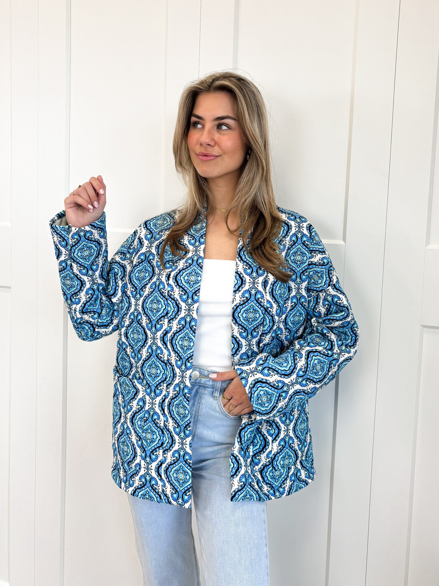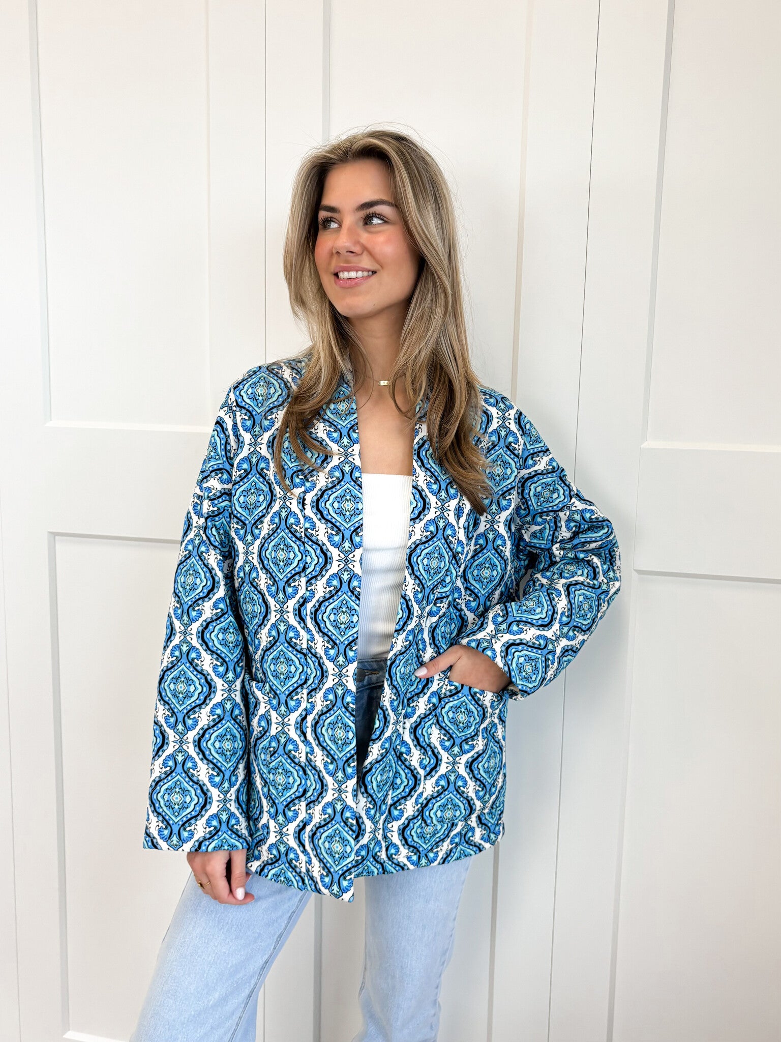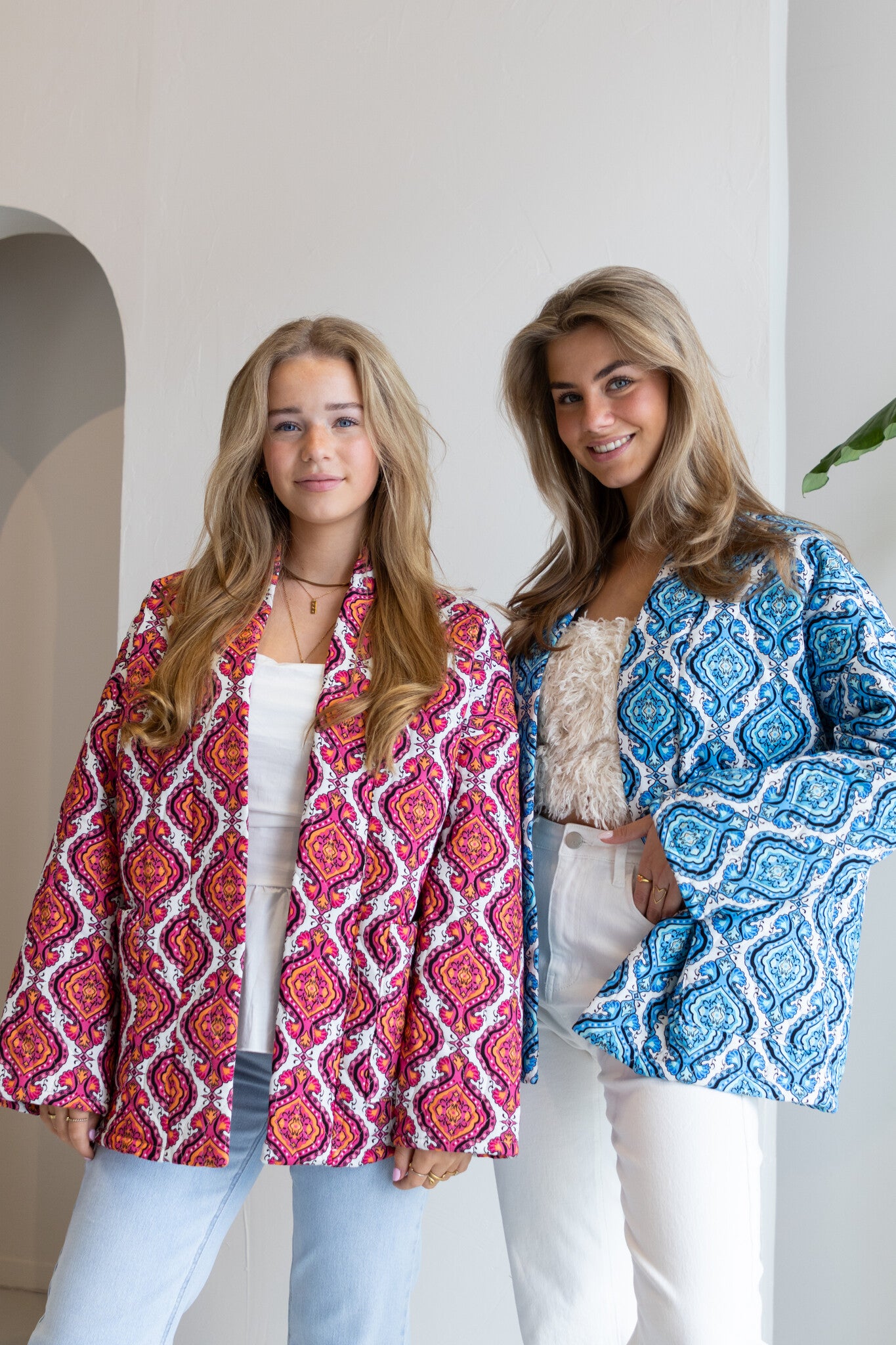 Dit jasje is het helemaal! Deze jas heeft een mooie patroon die je outfit helemaal opvrolijkt! De jacket heeft zakken aan beide kanten en valt lekker soepel. De perfecte jas voor een dagje shoppen of festival. Je shopt dit jasje in twéé verschillende kleuren!