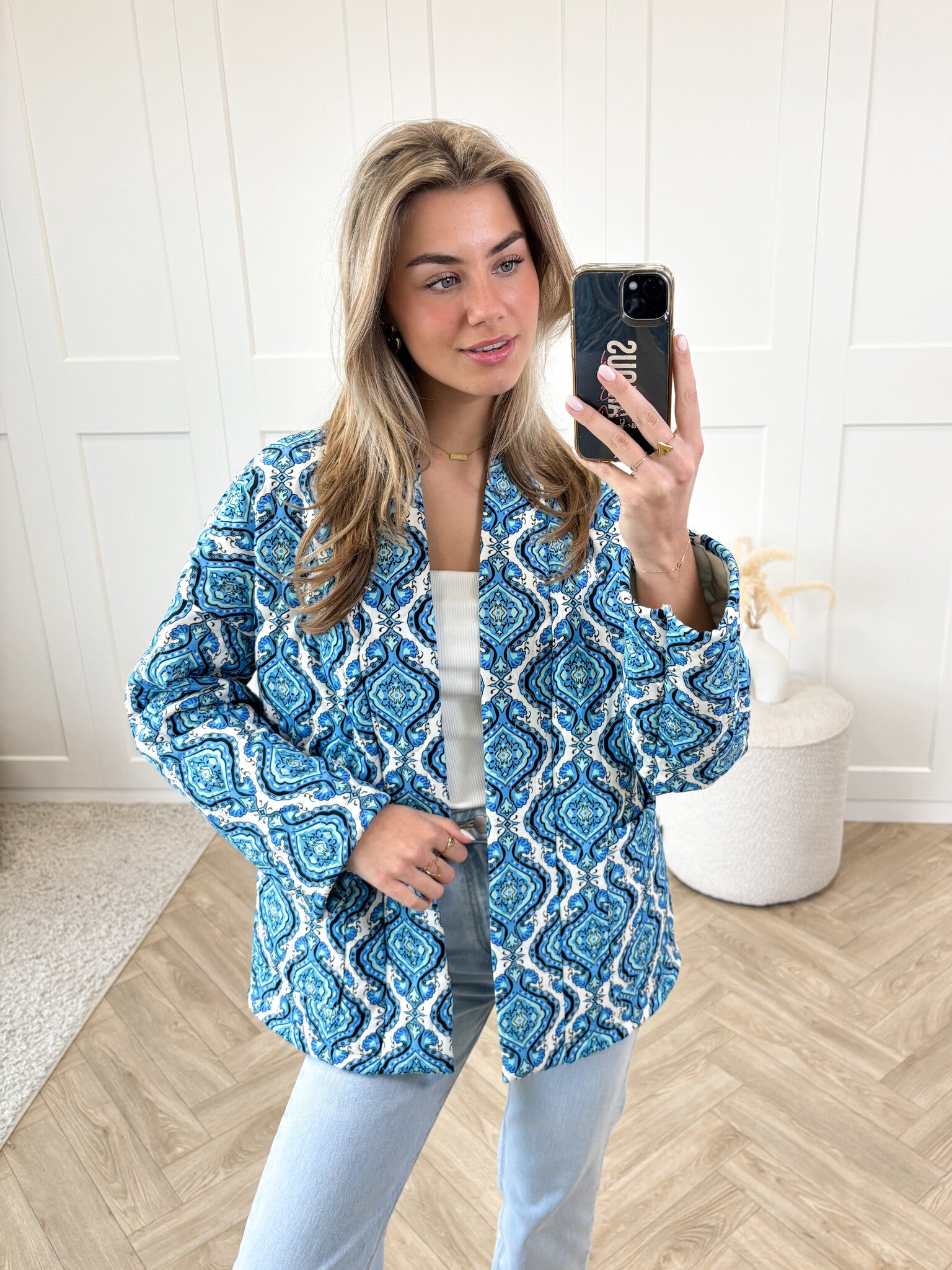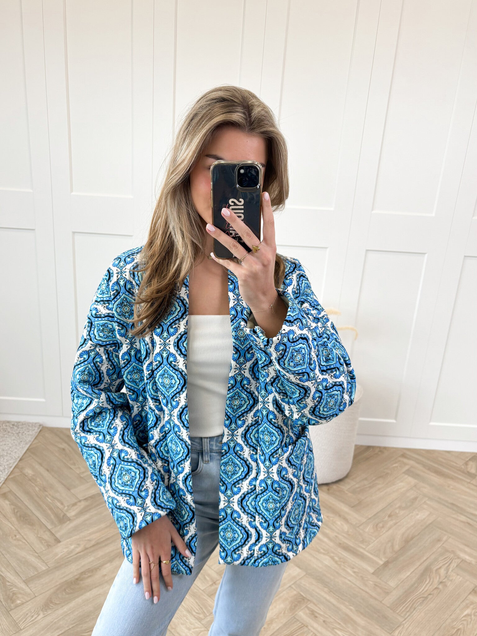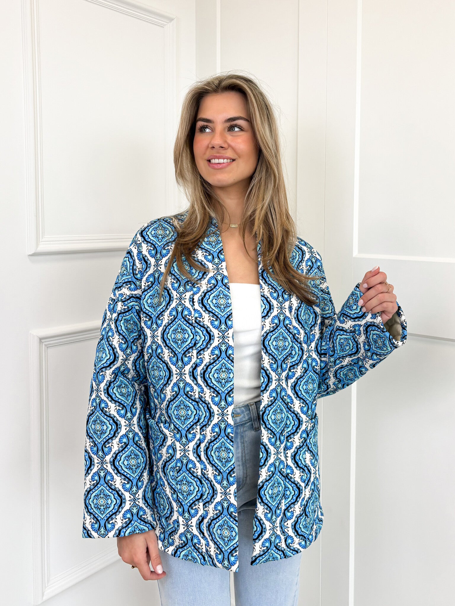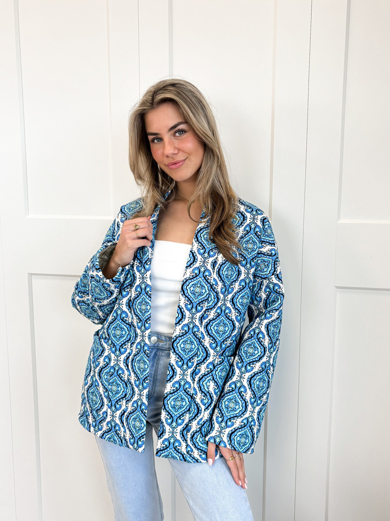 Dit jasje is het helemaal! Deze jas heeft een mooie patroon die je outfit helemaal opvrolijkt! De jacket heeft zakken aan beide kanten en valt lekker soepel. De perfecte jas voor een dagje shoppen of festival. Je shopt dit jasje in twéé verschillende kleuren!