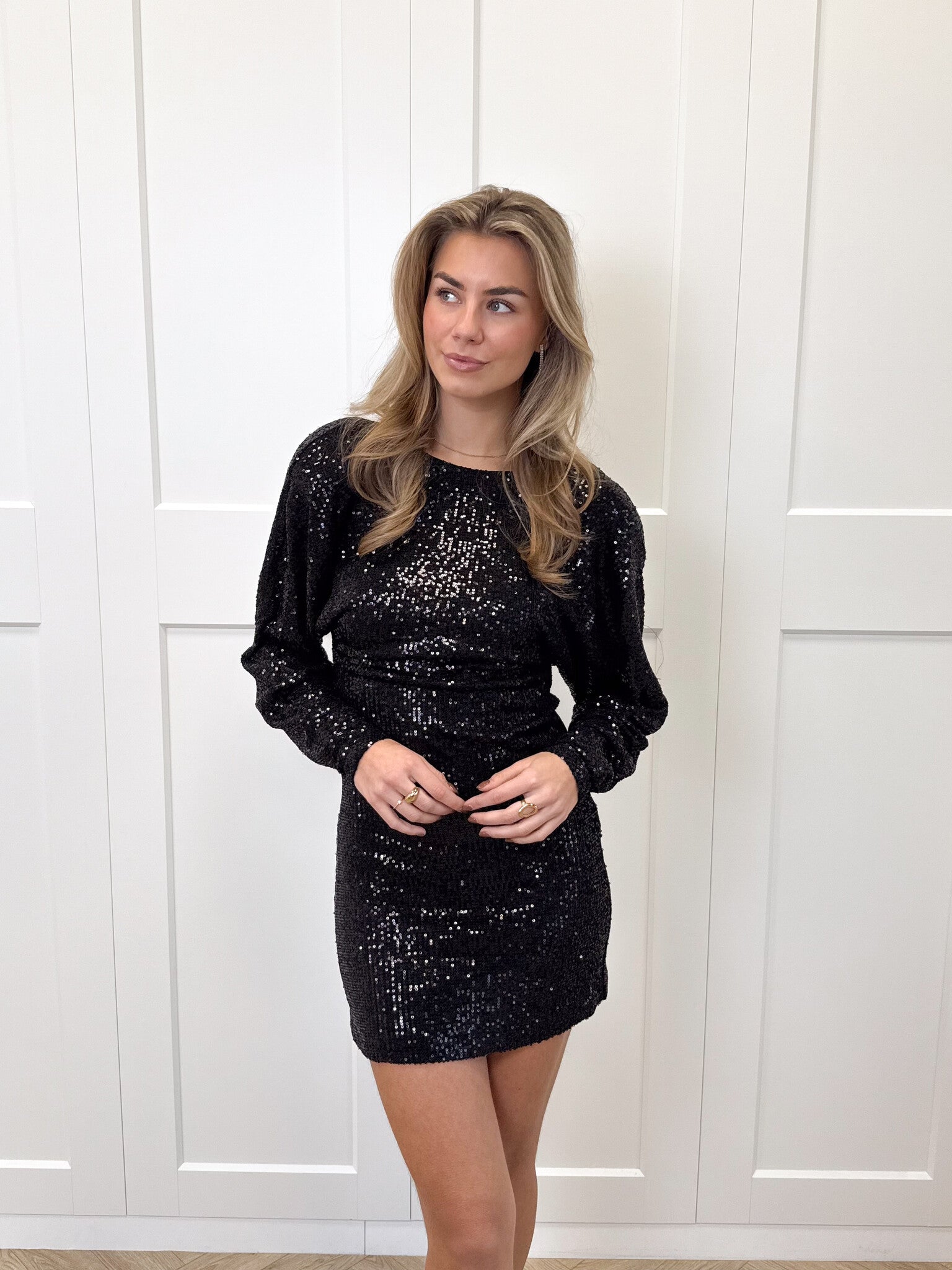 Deze jurk is een echte showstopper binnen de partycollectie. De glinsterende pailletten reflecteren het licht prachtig, waardoor je gegarandeerd alle ogen op je gericht hebt. De open rug voegt een sexy maar elegante touch toe, terwijl de schoudervulling zorgt voor een mooie vorm en extra structuur. Een subtiele antislip rand aan de binnenkant houdt de jurk perfect op zijn plek, zodat je de hele avond comfortabel kunt dansen en bewegen. De pasvorm is vrouwelijk en flatterend, waardoor de jurk geschikt is voor verschillende lichaamstypes. Combineer met hoge hakken en minimalistische accessoires voor een glam look, of laat de jurk spreken door hem met een simpele clutch te stylen. Deze jurk is perfect voor feestdagen, verjaardagen, girls nights out en iedere gelegenheid waarbij je wilt stralen.