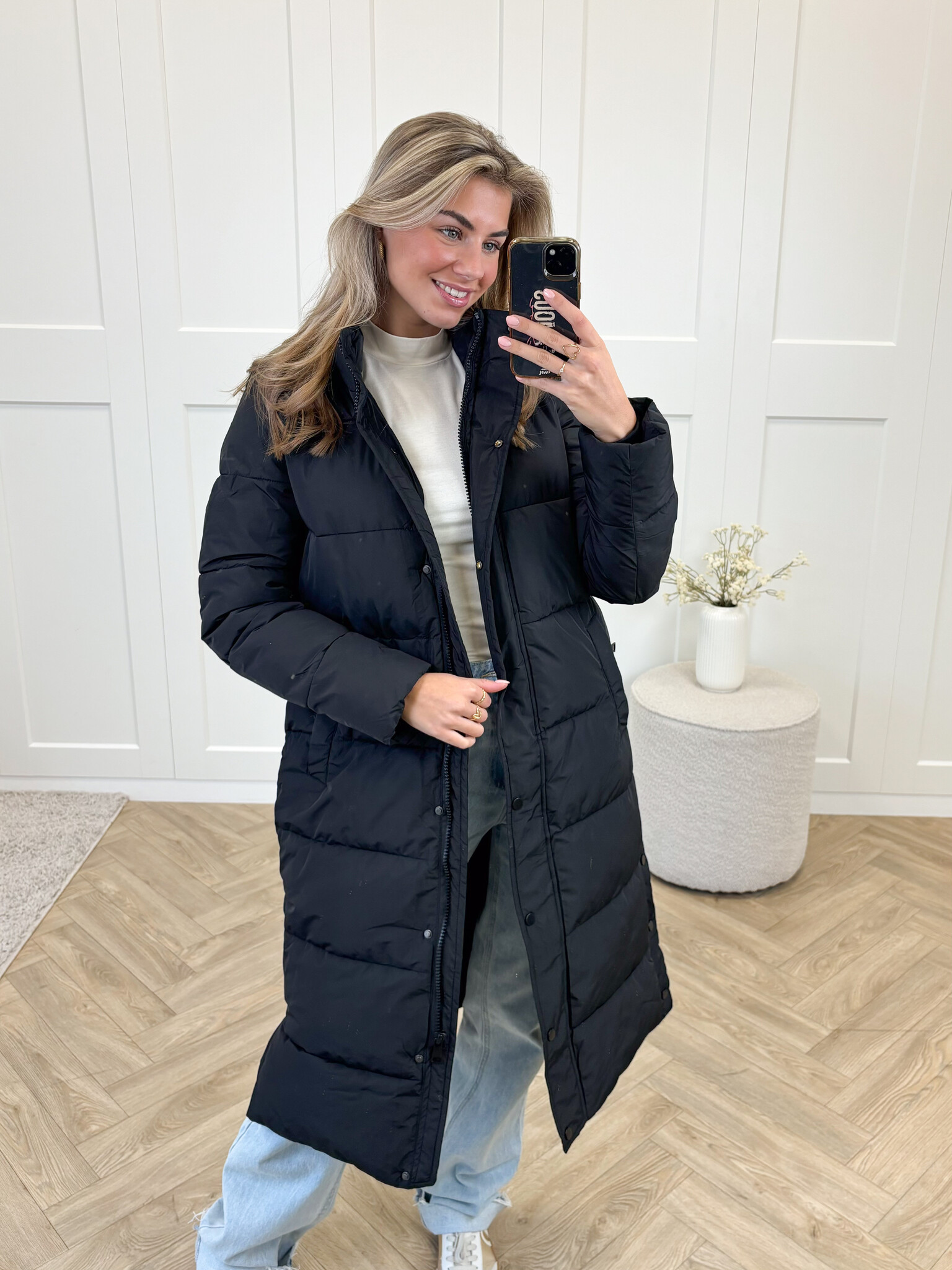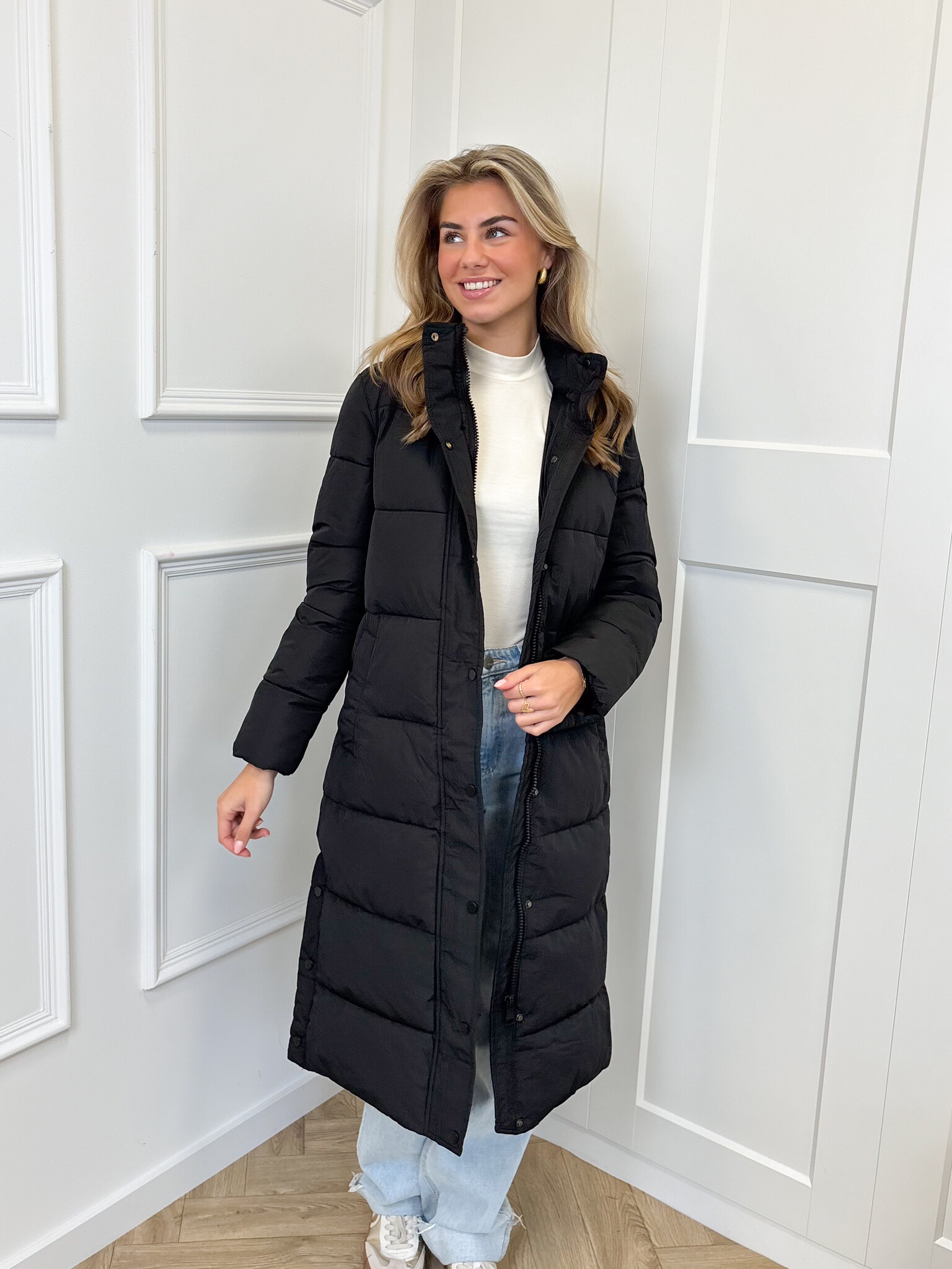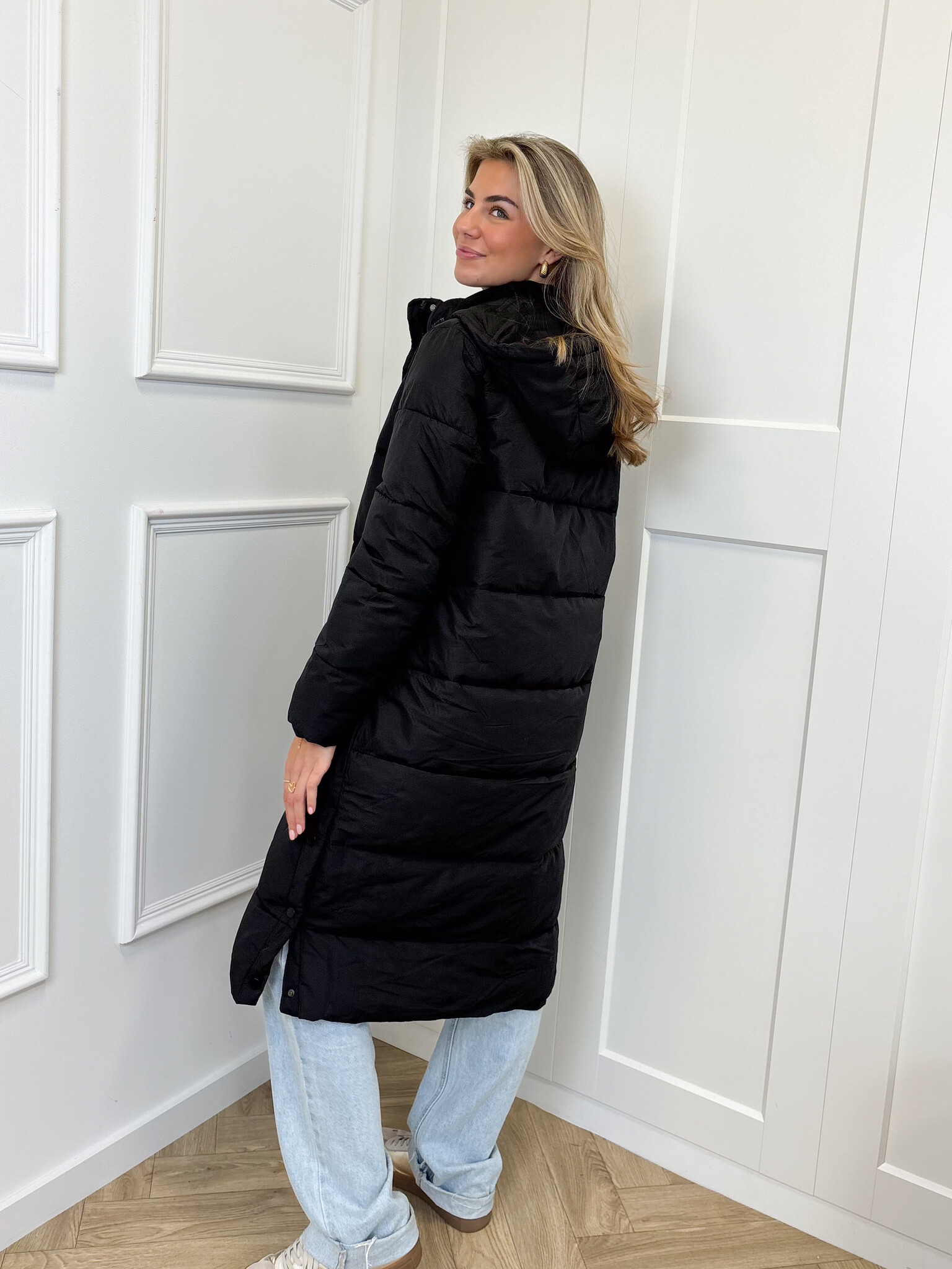 Een heerlijke warme puffer coat die je deze winter lekker warm houdt! Je kan het dragen met of zonder capuchon. De zakken hebben een rits en aan de zijkant van de jas zitten knopen. Comfortabel en ook fabulous. Je shopt deze coat in twéé verschillende kleuren!