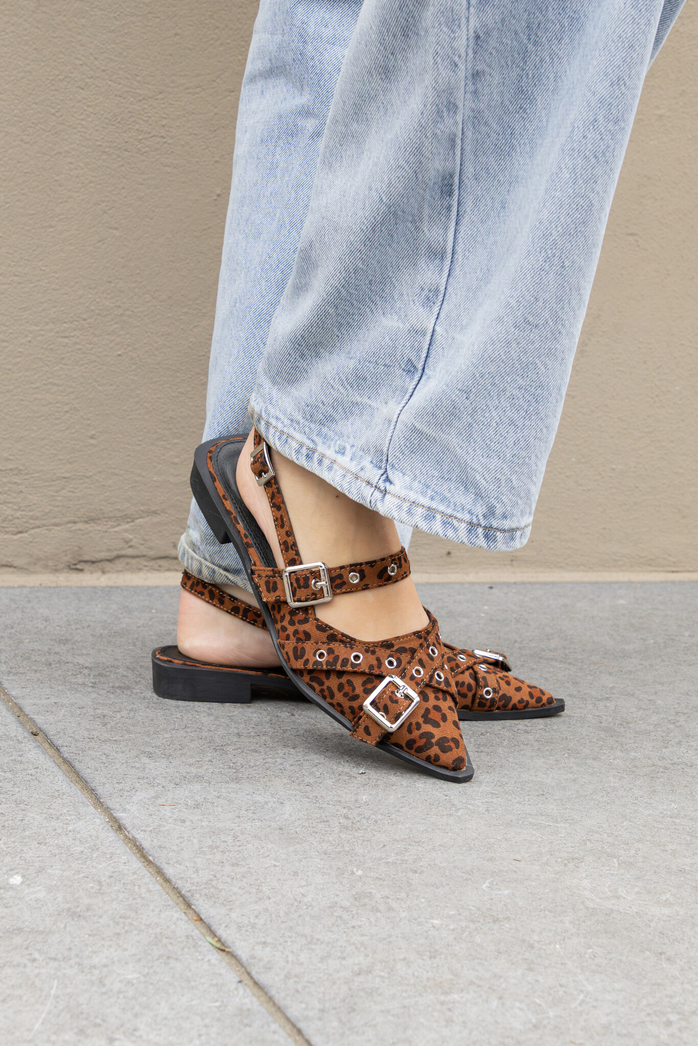 Deze loafers hebben zilveren details en een puntige neus. De slingback style is helemaal de trend! De open studs geven net die extra touch. De leopard instapschoentjes hebben een platte zool met subtiele hak wat zorgt voor een comfortabele chique look.