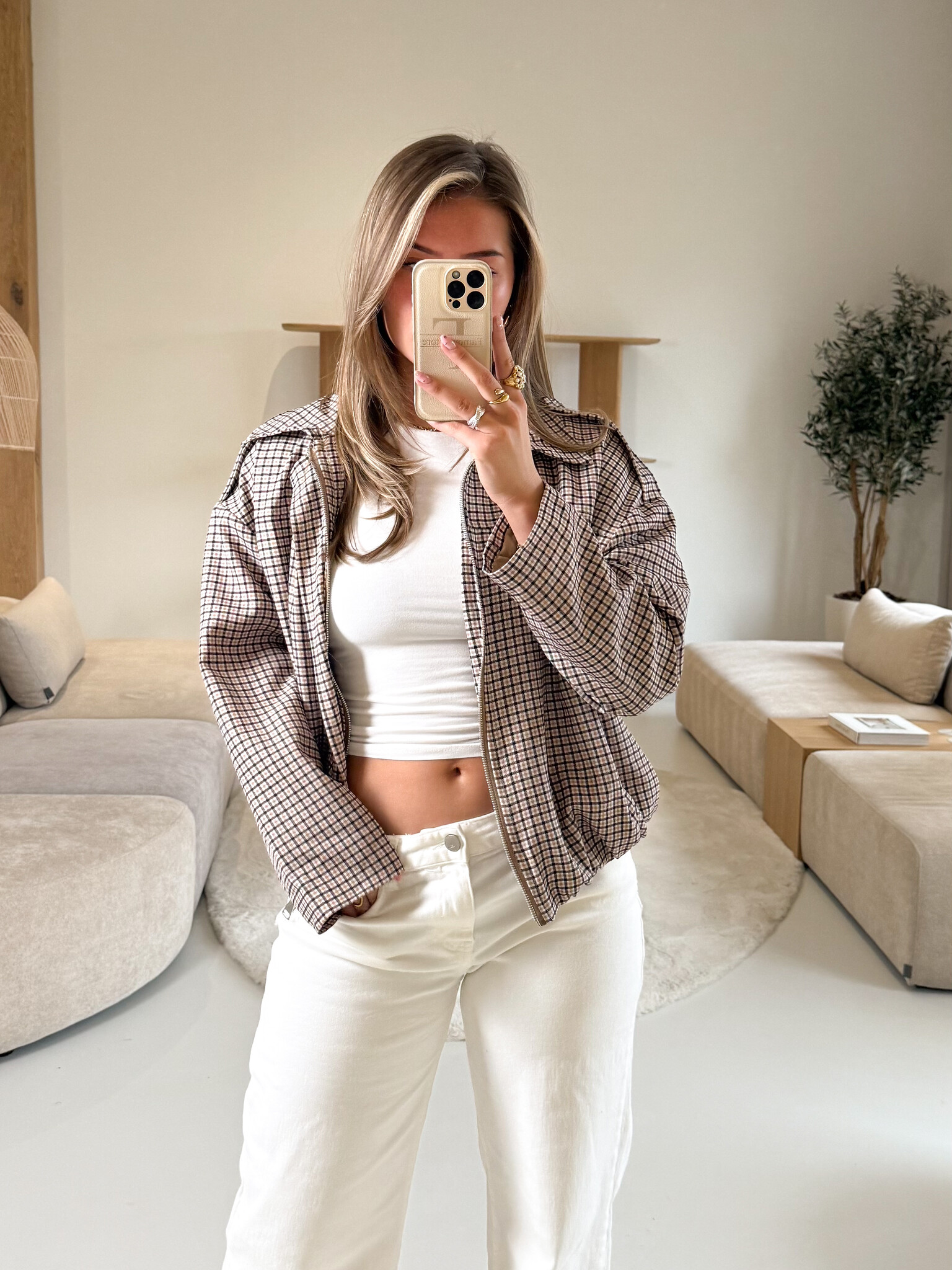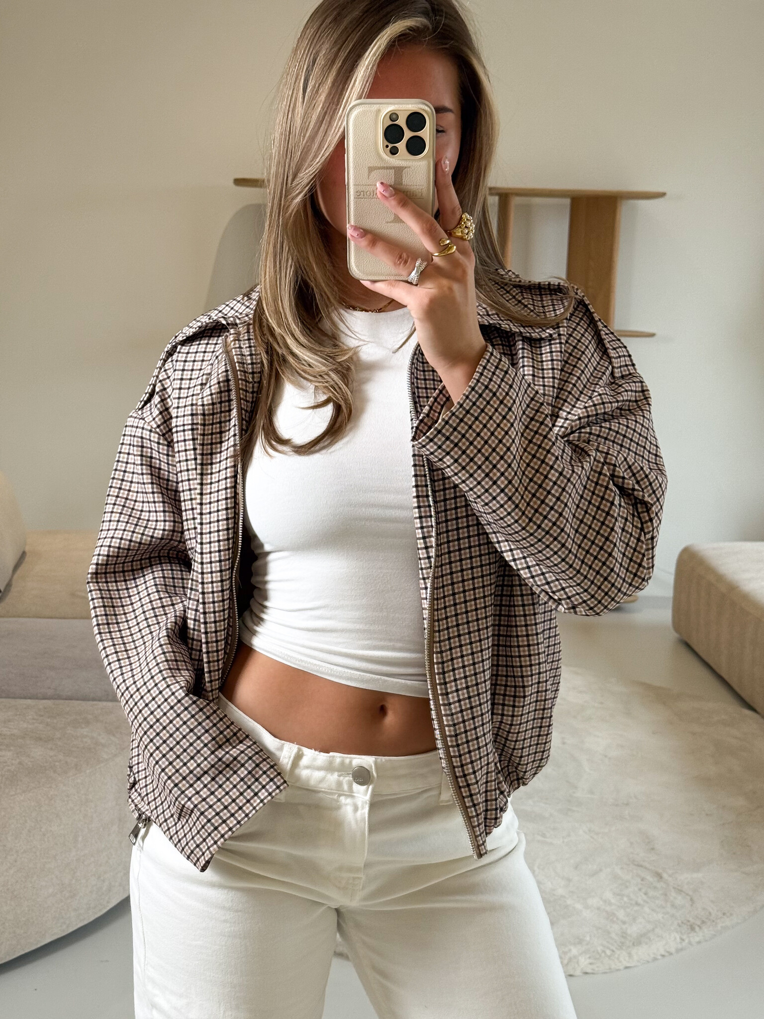 Dit fashionable geruite jasje met rits en stijlvolle kraag is een musthave voor meiden en vrouwen die houden van girly, trendy en elegante looks. Het klassieke ruitpatroon krijgt een moderne twist door de subtiele details aan de bovenkant, terwijl de rits en kraag zorgen voor een stoere en chique touch. Licht van gewicht en comfortabel om te dragen, ideaal voor school, werk, een dagje shoppen of koffiedates. Combineer het met een basic top en je favoriete jeans of pantalons voor een effortless girly look. Een veelzijdig jasje dat je garderobe direct een stijlvolle upgrade geeft.