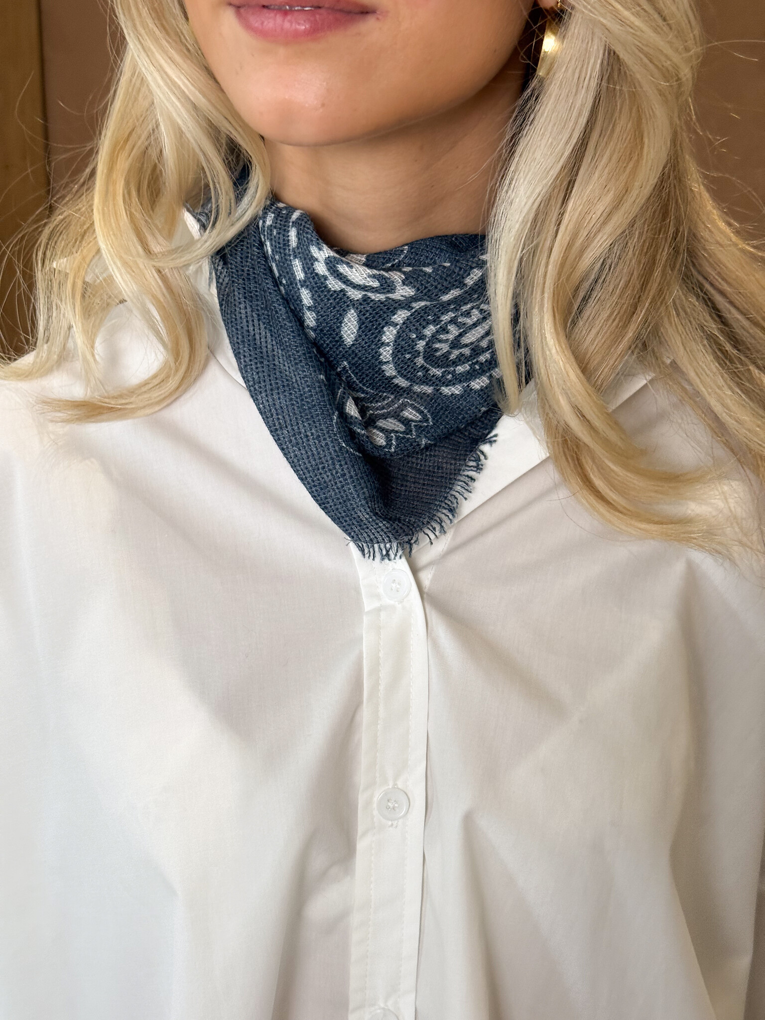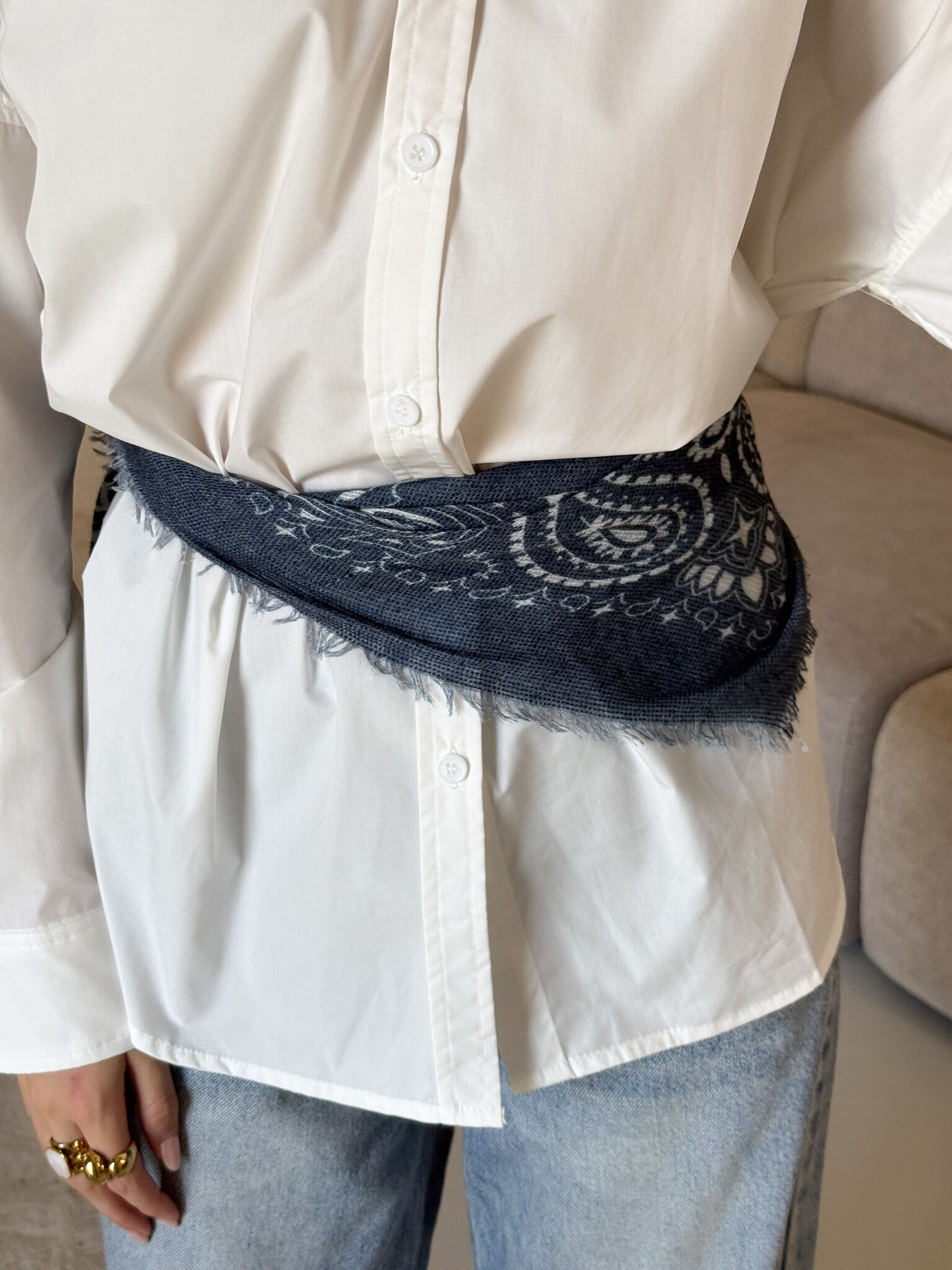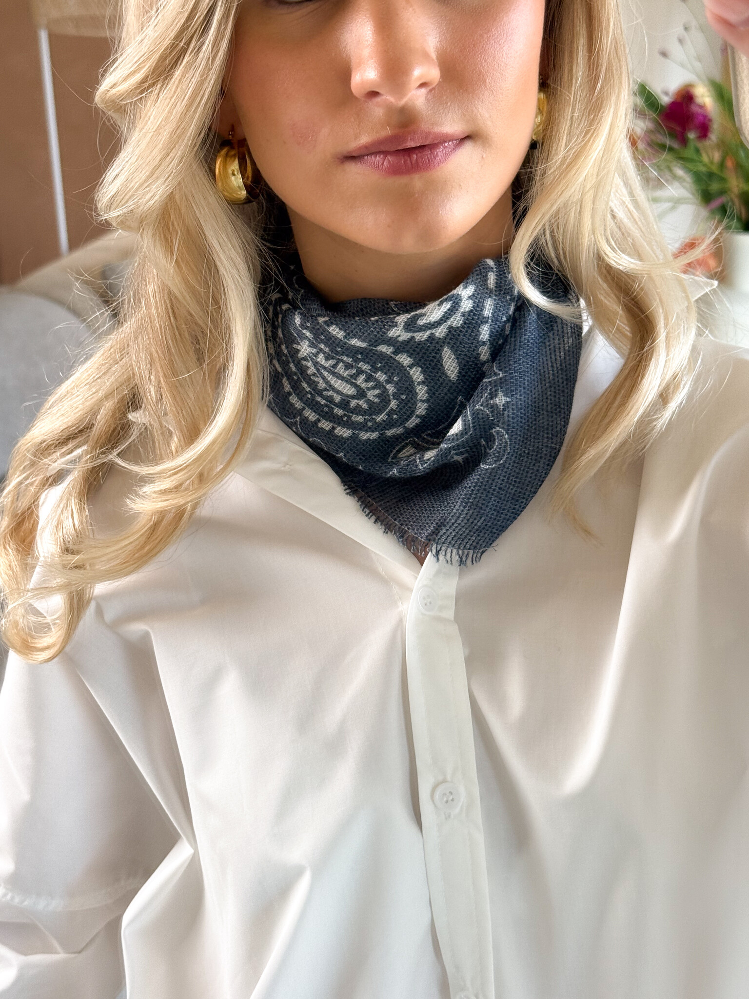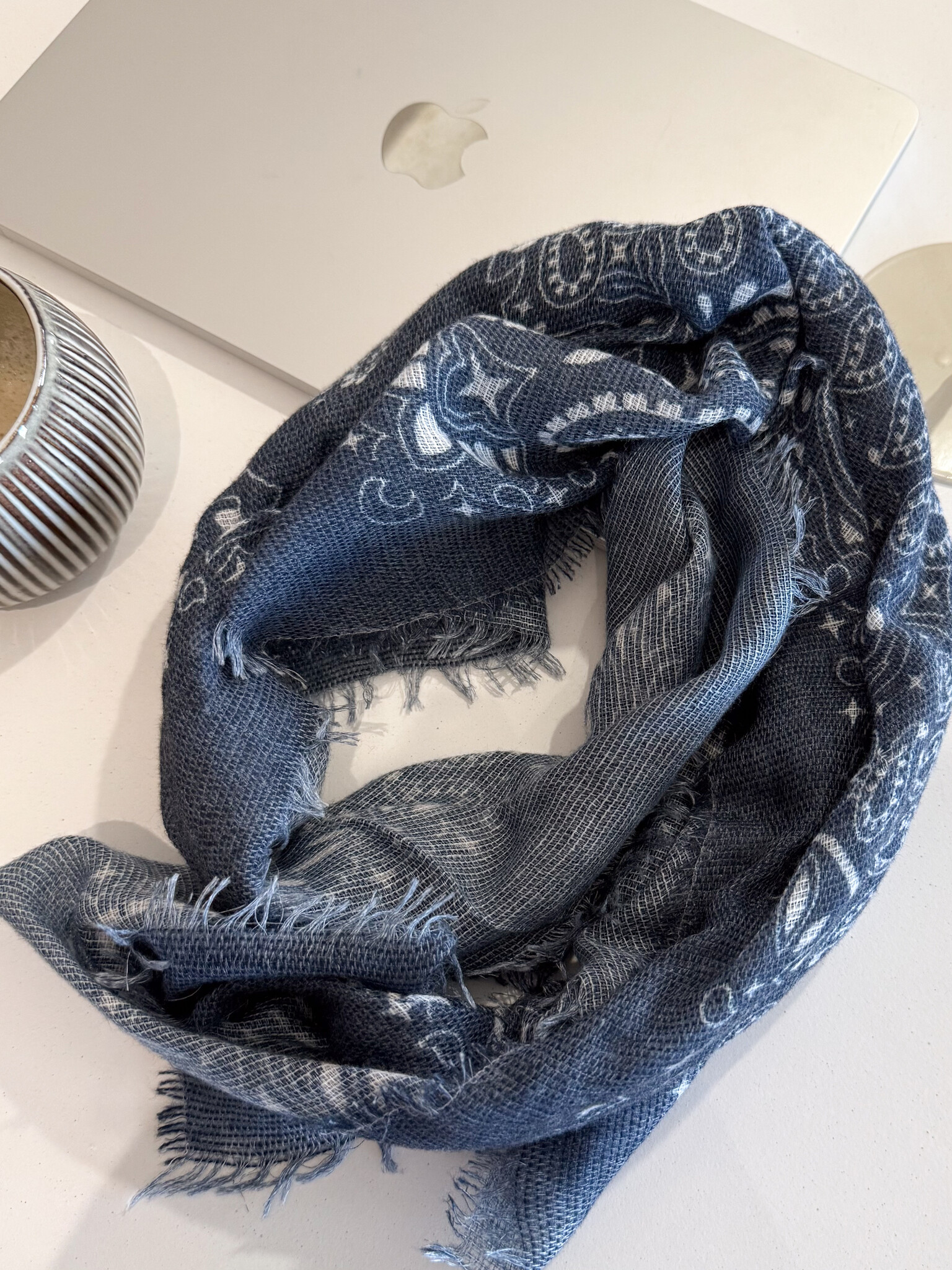Deze zachte sjaal met een patroontje is de finishing touch voor elke look. Draag het sjaaltje nonchalant om je nek, knoop het stoer aan je tas of om je heup of gebruik het als haaraccessoire. De mogelijkheden zijn eindeloos.