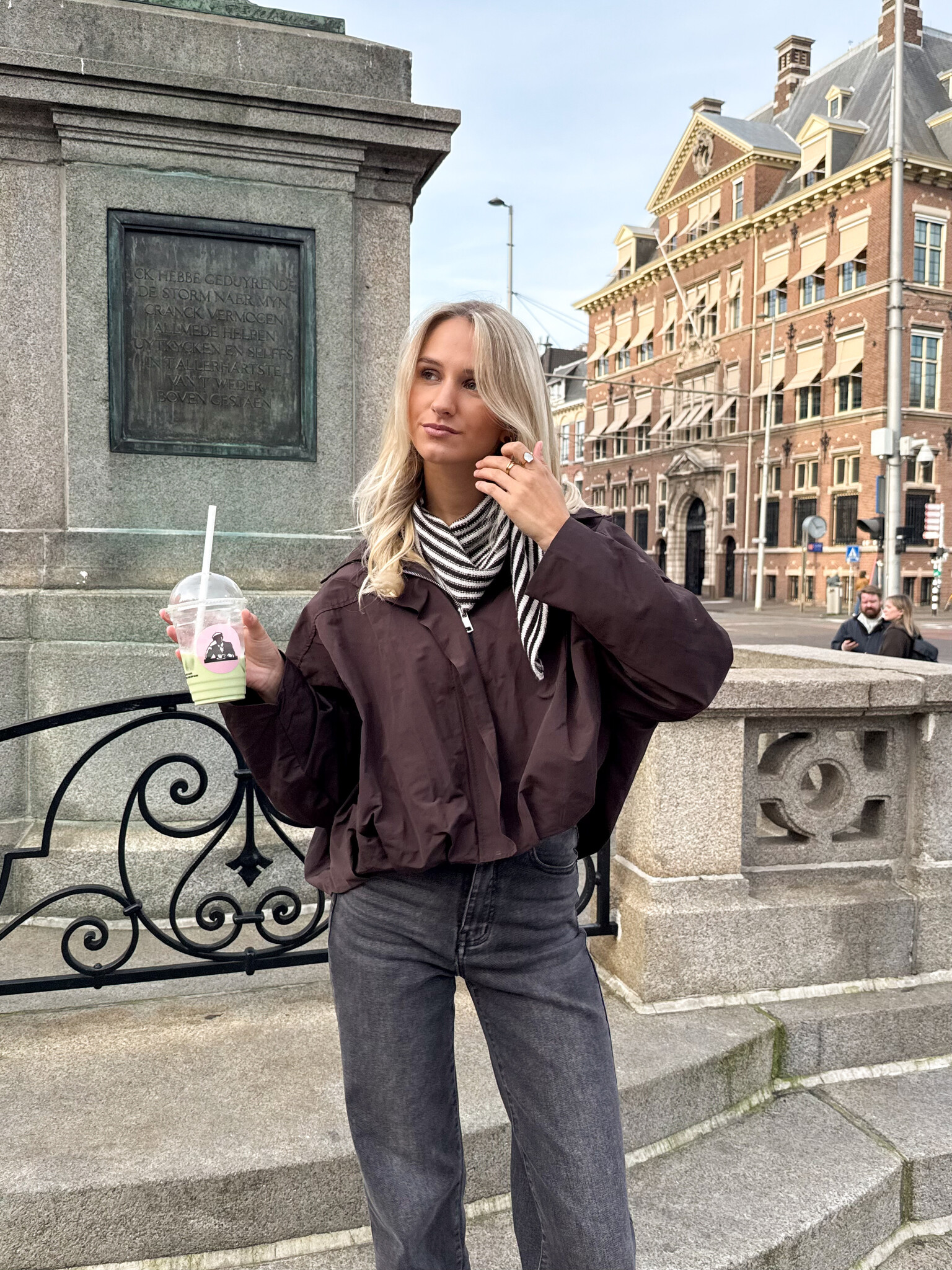 Deze kleine wollen sjaal is het perfecte accessoire voor de echte fashionlover. De zachte, warme stof voelt heerlijk aan en de subtiele strepen zorgen voor een speelse, maar chique uitstraling. Dankzij het compacte formaat kun je de sjaal op verschillende manieren dragen. Elegant om je nek geknoopt, nonchalant over je schouders of zelfs als haaraccessoire voor een girly touch. De neutrale tinten maken het makkelijk om te combineren met jouw favoriete truien, jasjes of blazers. Deze sjaal is niet alleen praktisch op koudere dagen, maar ook de perfecte finishing touch voor je outfit. Een echte must-have voor jouw stijlvolle garderobe!