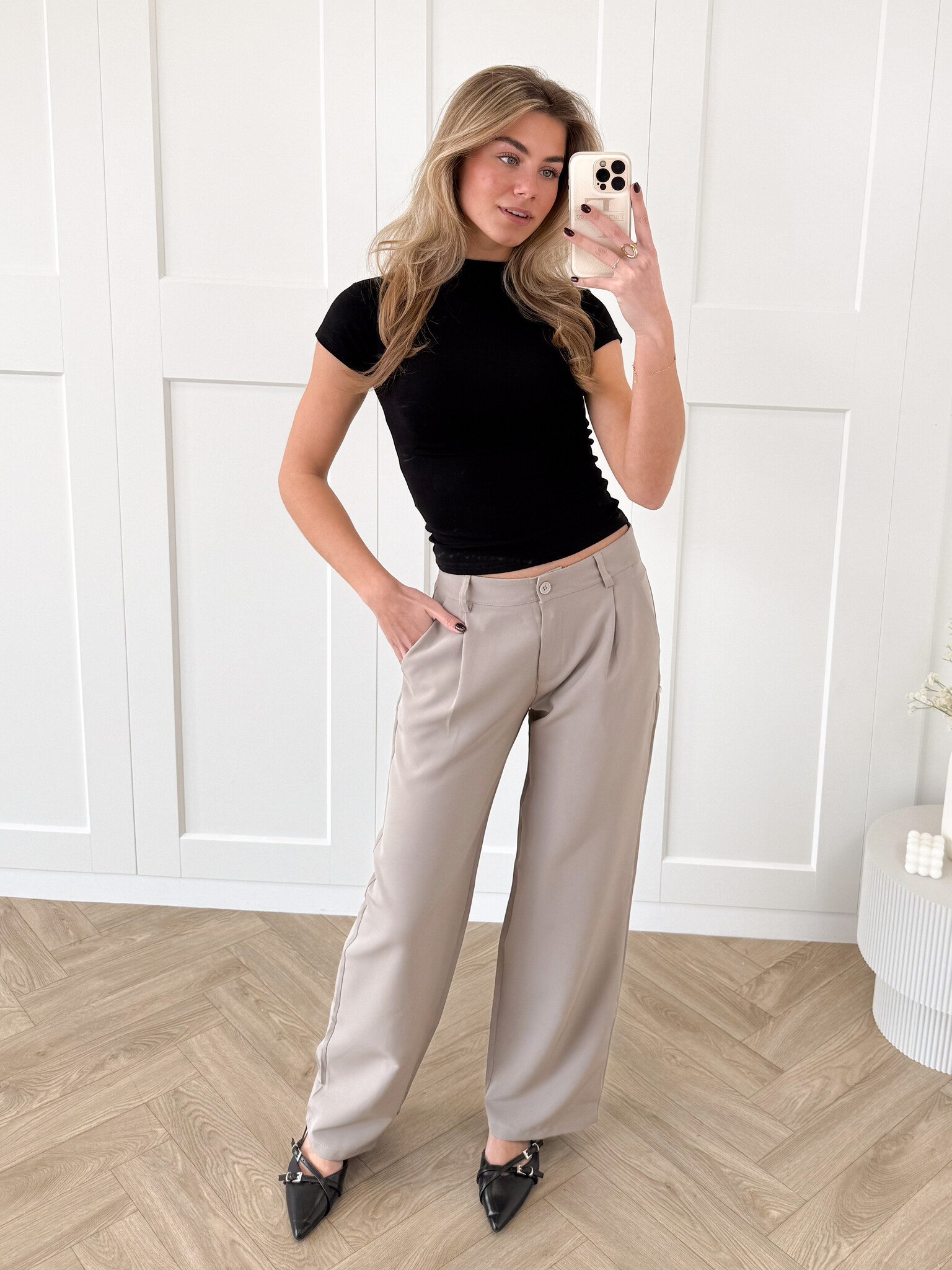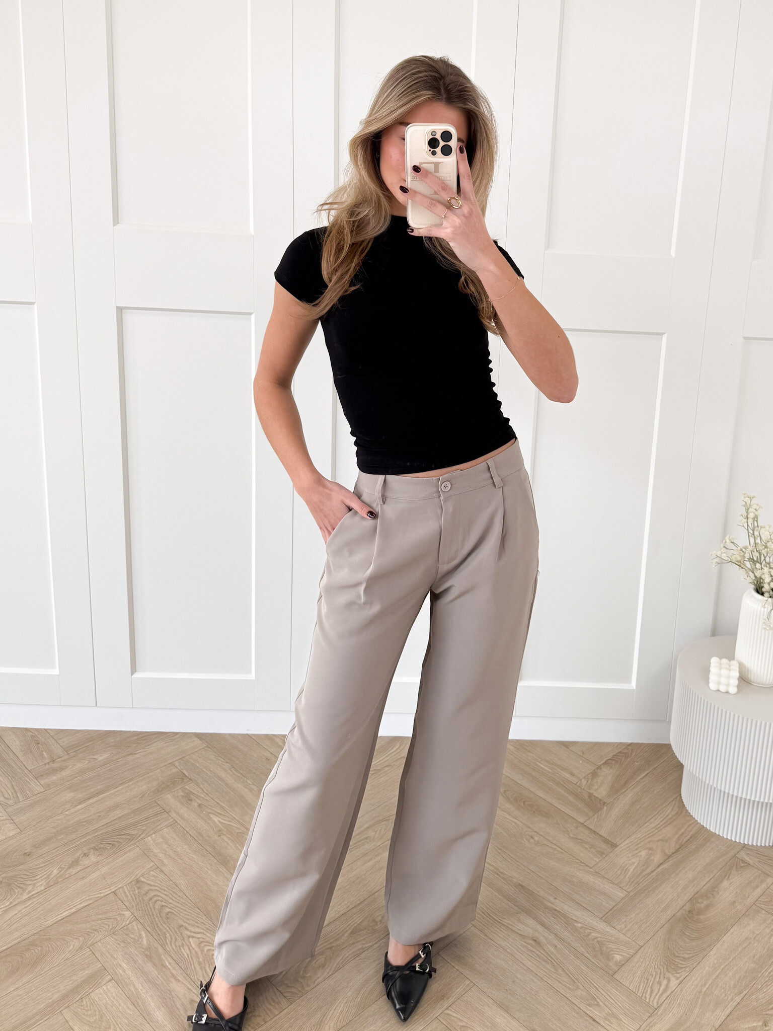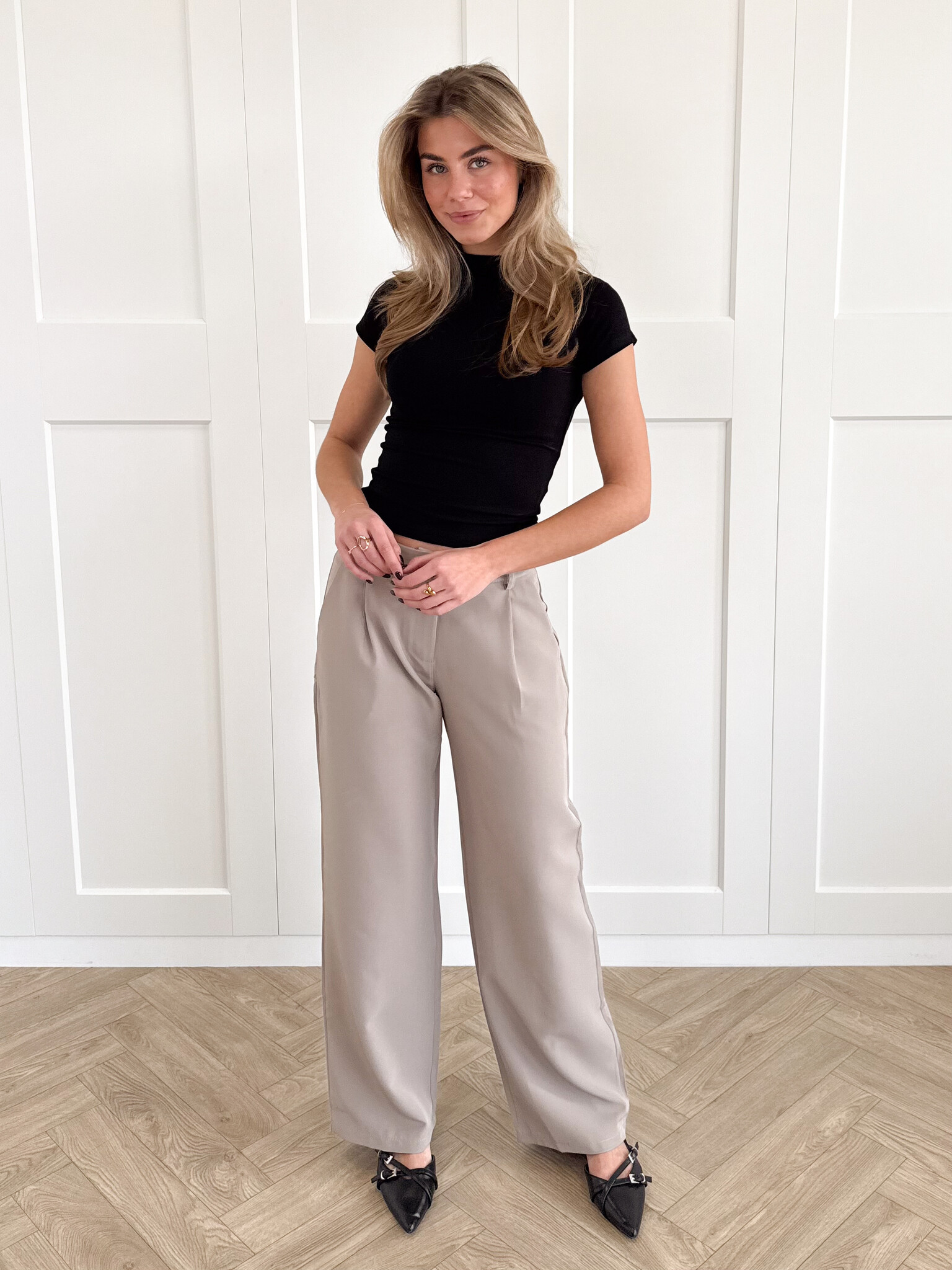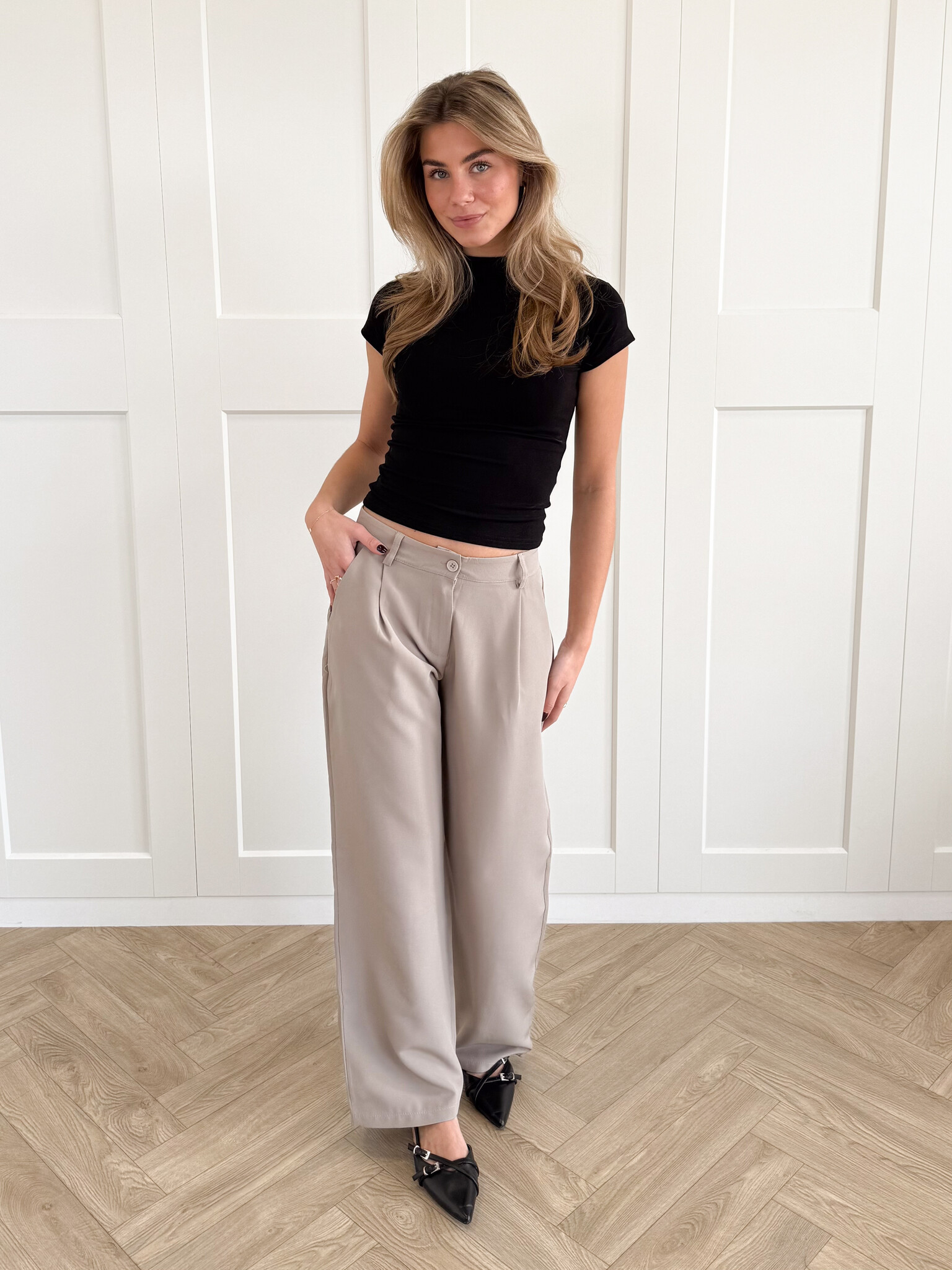Stijl ‘m casual met een crop-top of T-shirt en casual sneakers of geef ‘m een chique upgrade met blazer en loafers. Dress up of down: de mogelijkheden zijn eindeloos. De pantalon is ook geschikt voor de lange dames en makkelijk te verkorten als het te lang is voor de wat kortere dames.