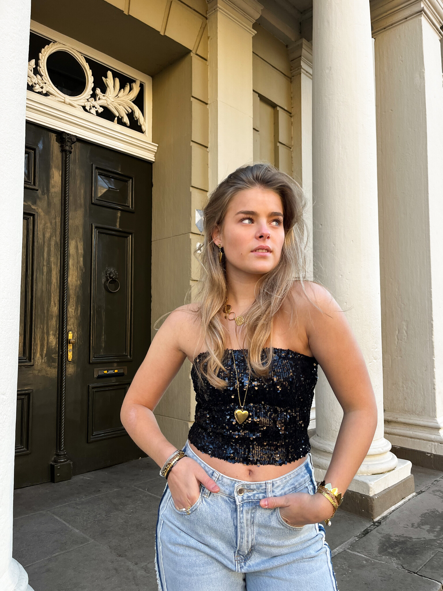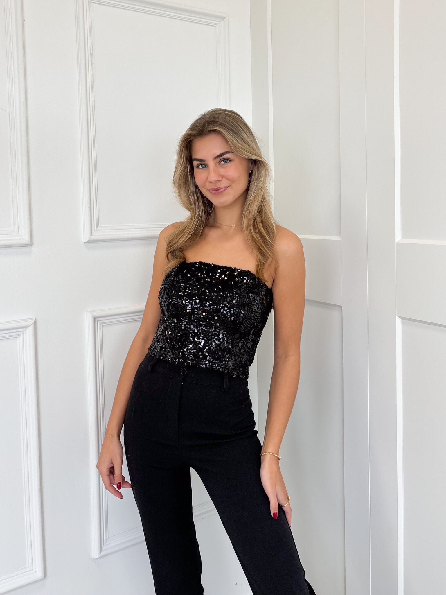 Strapless pailletten top zwart