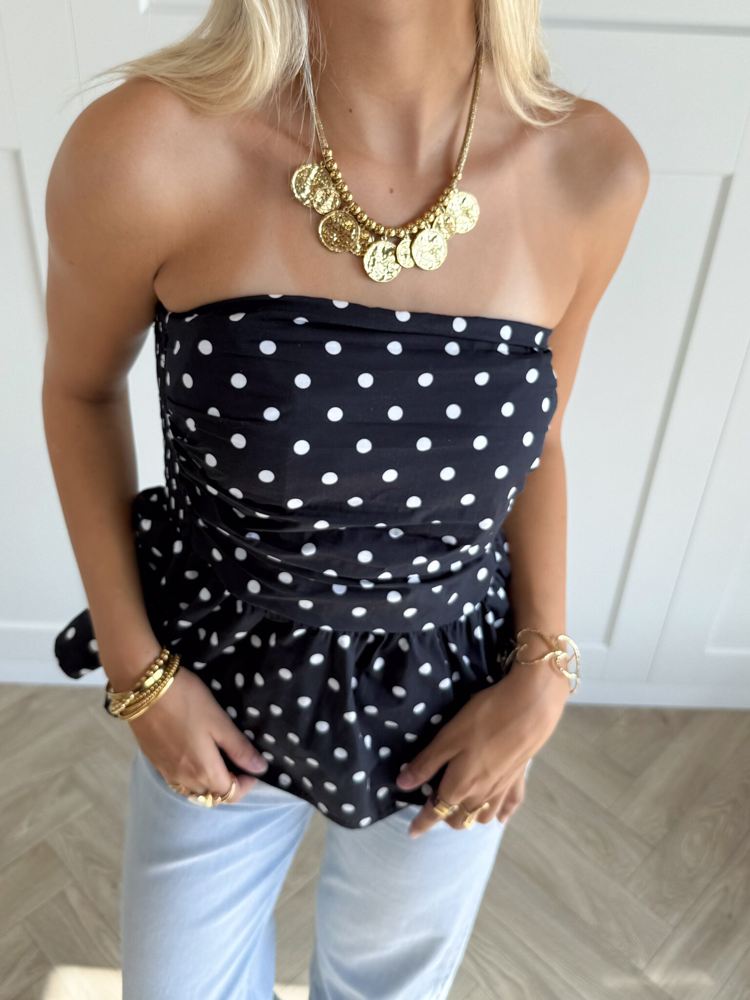 Strapless polka dot top