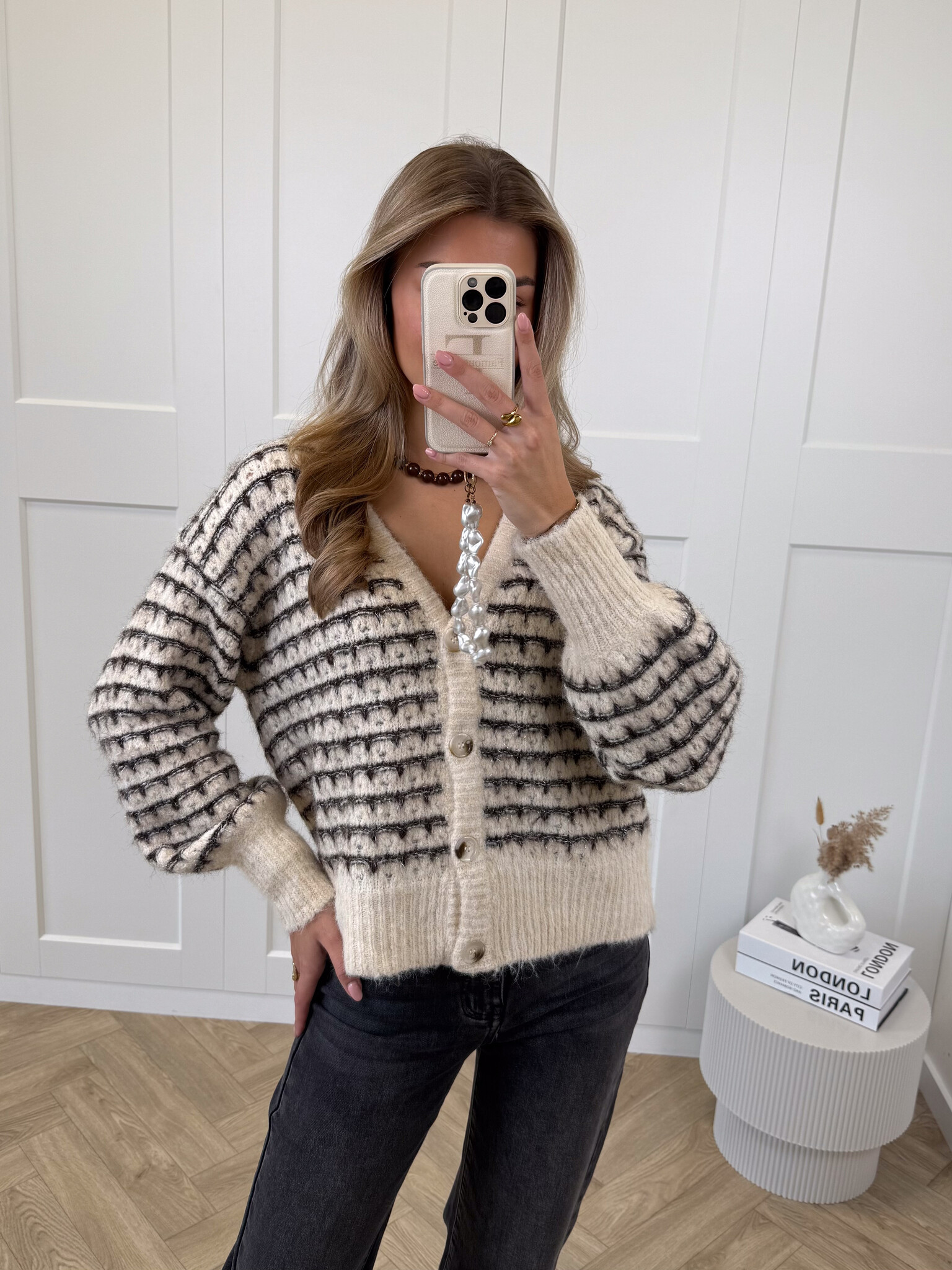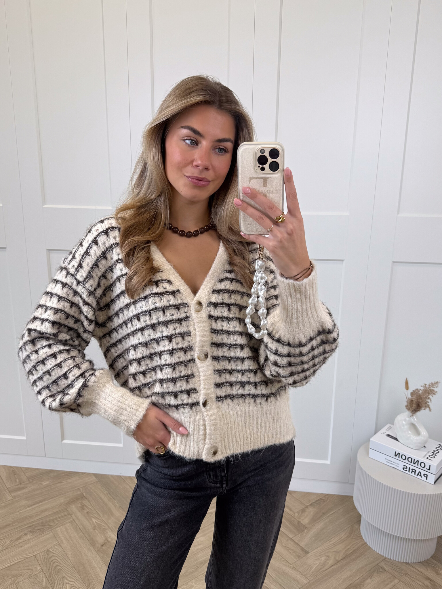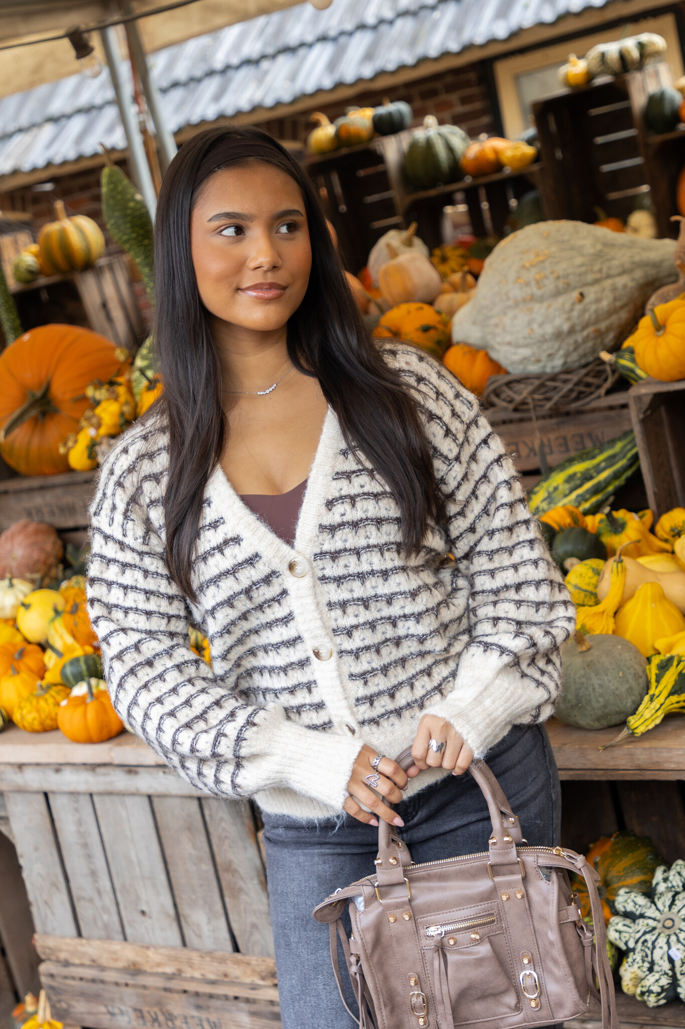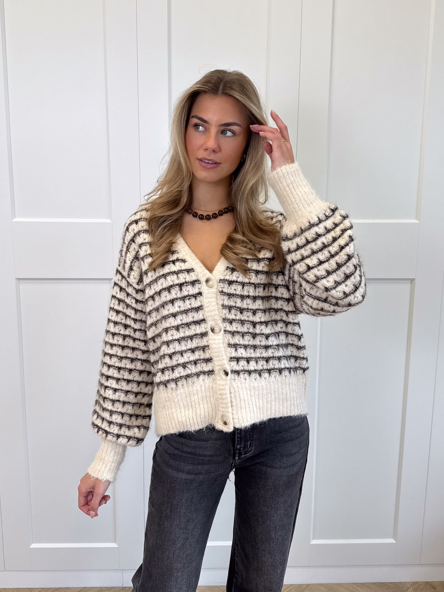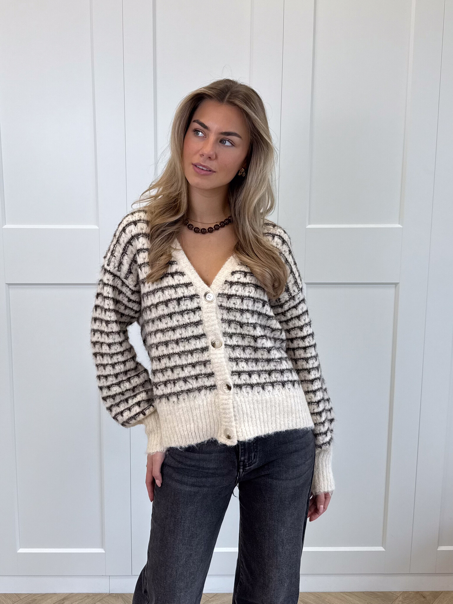 Dit bruin-beige gestreepte vestje is een echte musthave voor meiden die houden van een speelse en stijlvolle look. De wolmix stof voelt heerlijk zacht aan en houdt je comfortabel warm tijdens koelere dagen. De subtiele glitterdraad geeft het vest een charmante glans, terwijl de V-hals en de knoopsluiting zorgen voor een vrouwelijke touch. Dankzij de stretchy stof sluit het vest mooi aan en beweeg je er makkelijk in. Perfect te combineren met een jeans voor een casual dag of met een rok voor een meer geklede outfit. Met zijn opvallende kleuren en speelse details is dit vestje een echte eyecatcher in je garderobe. Comfy, chic en helemaal on-trend.