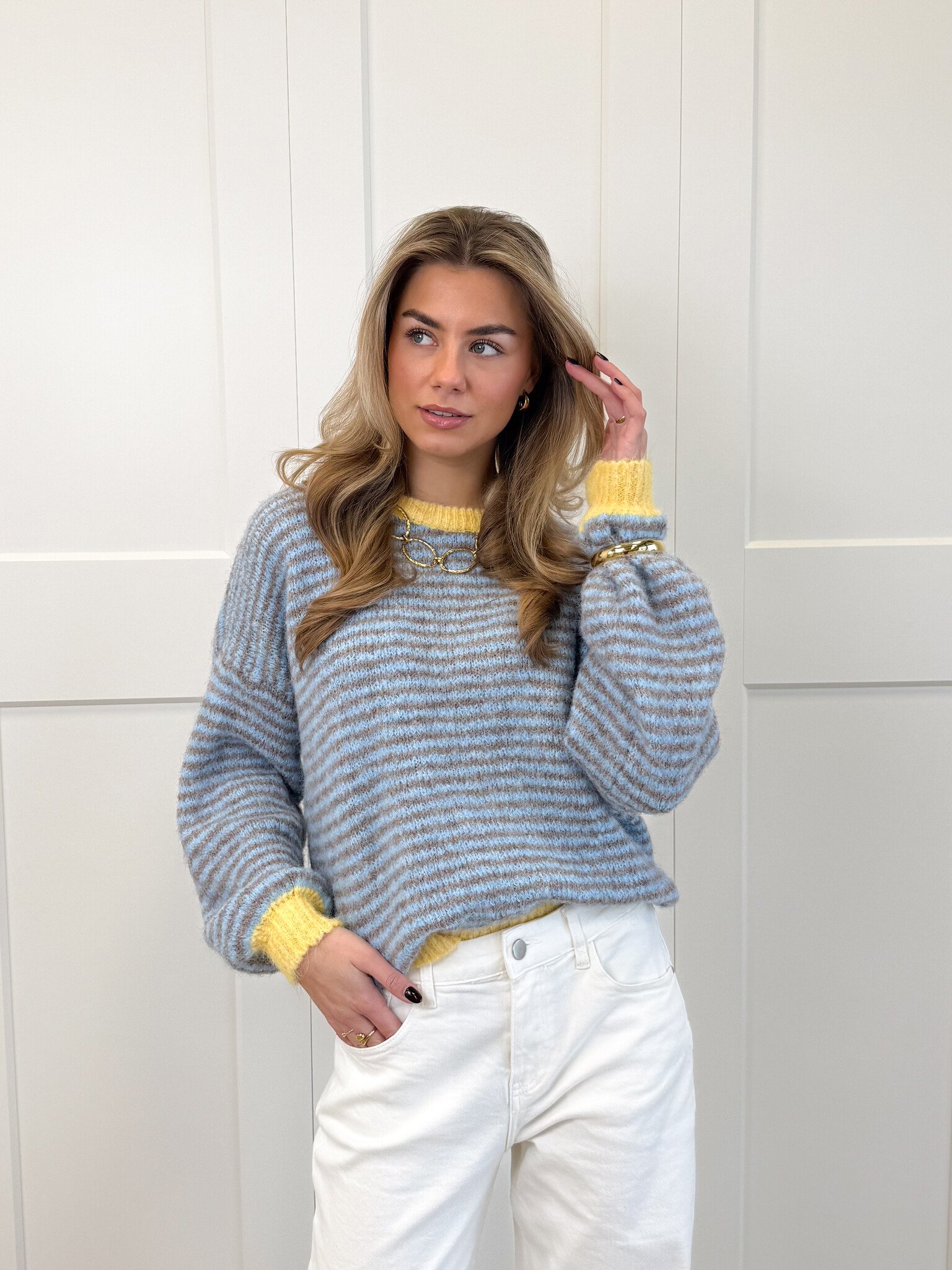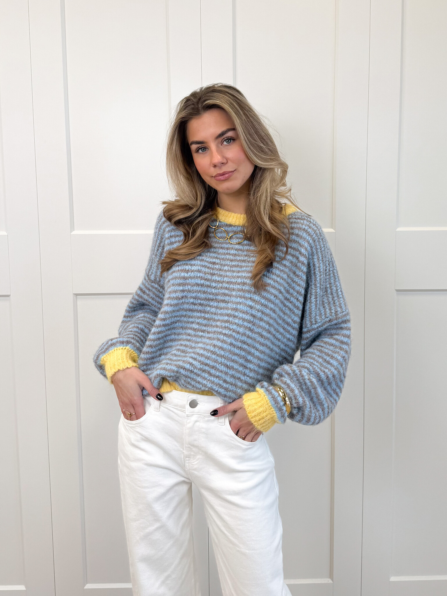 Deze gestreepte wollen trui is een must-have voor cosy dagen. De zachte en fluffy stof voelt heerlijk warm aan en houdt je comfortabel, terwijl het gestreepte patroon een speelse en girly touch toevoegt. De trui valt relaxed en is makkelijk te combineren met jeans, rokken of pantalons, waardoor hij perfect is voor school, een koffiedate, een dagje shoppen of een casual dag thuis. De zachte wollen knit maakt dat je ‘m het liefst elke dag wilt dragen, terwijl de frisse strepen elke outfit meteen een fashionable upgrade geven. Kylina combineert comfort, warmte en een girly uitstraling moeiteloos in één cosy item.