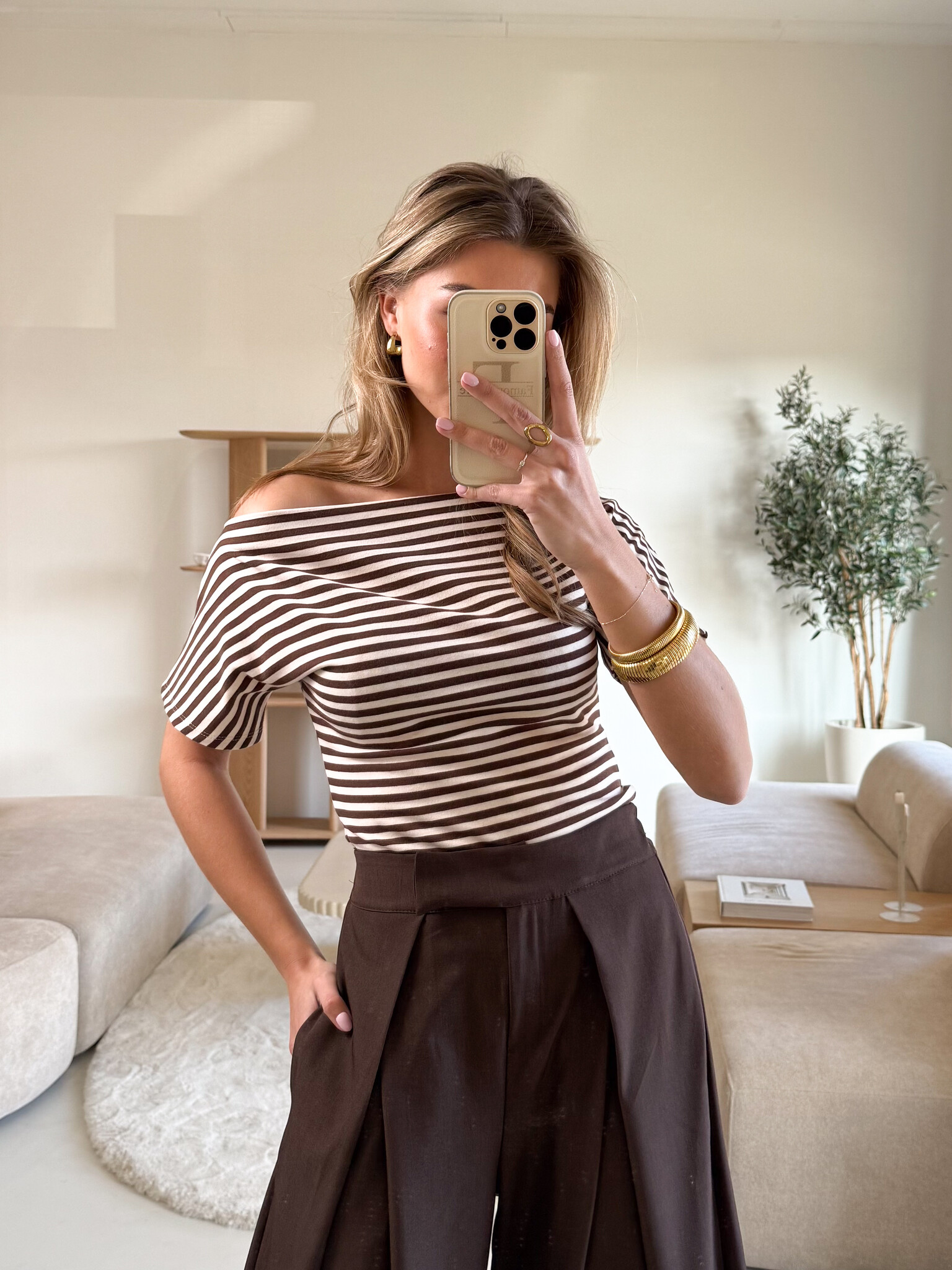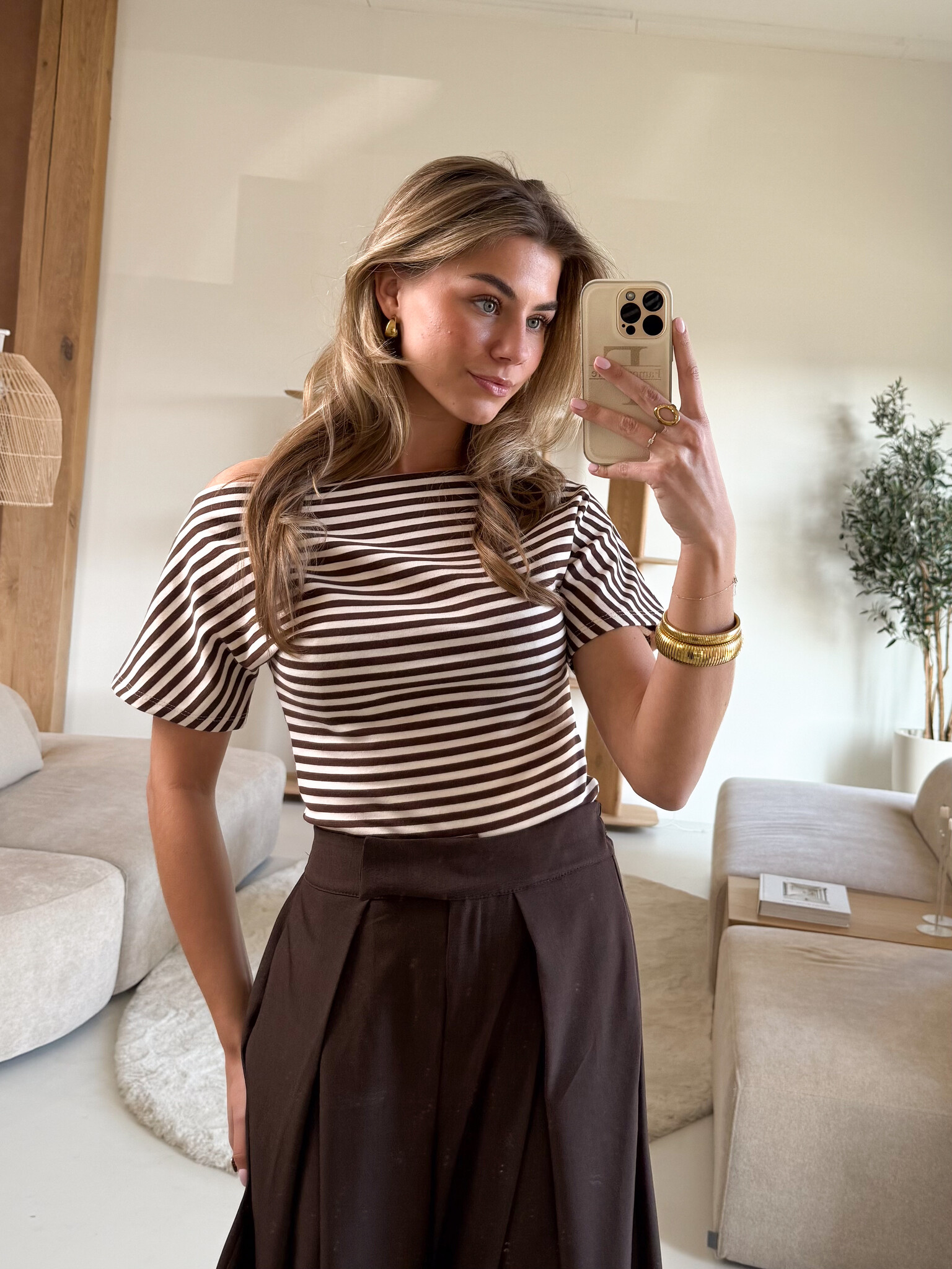 Strepen top Kate bruin