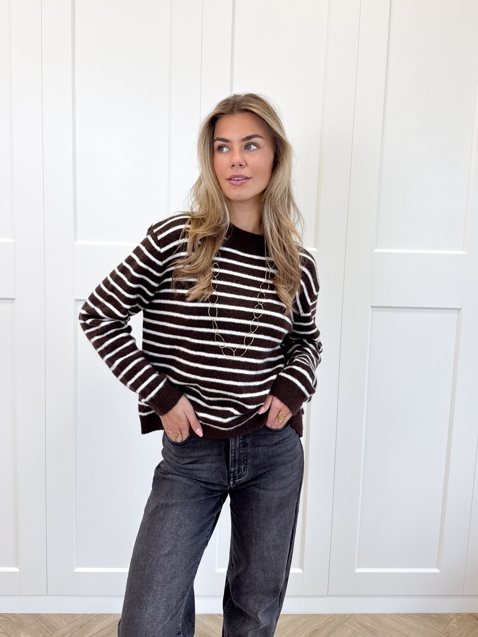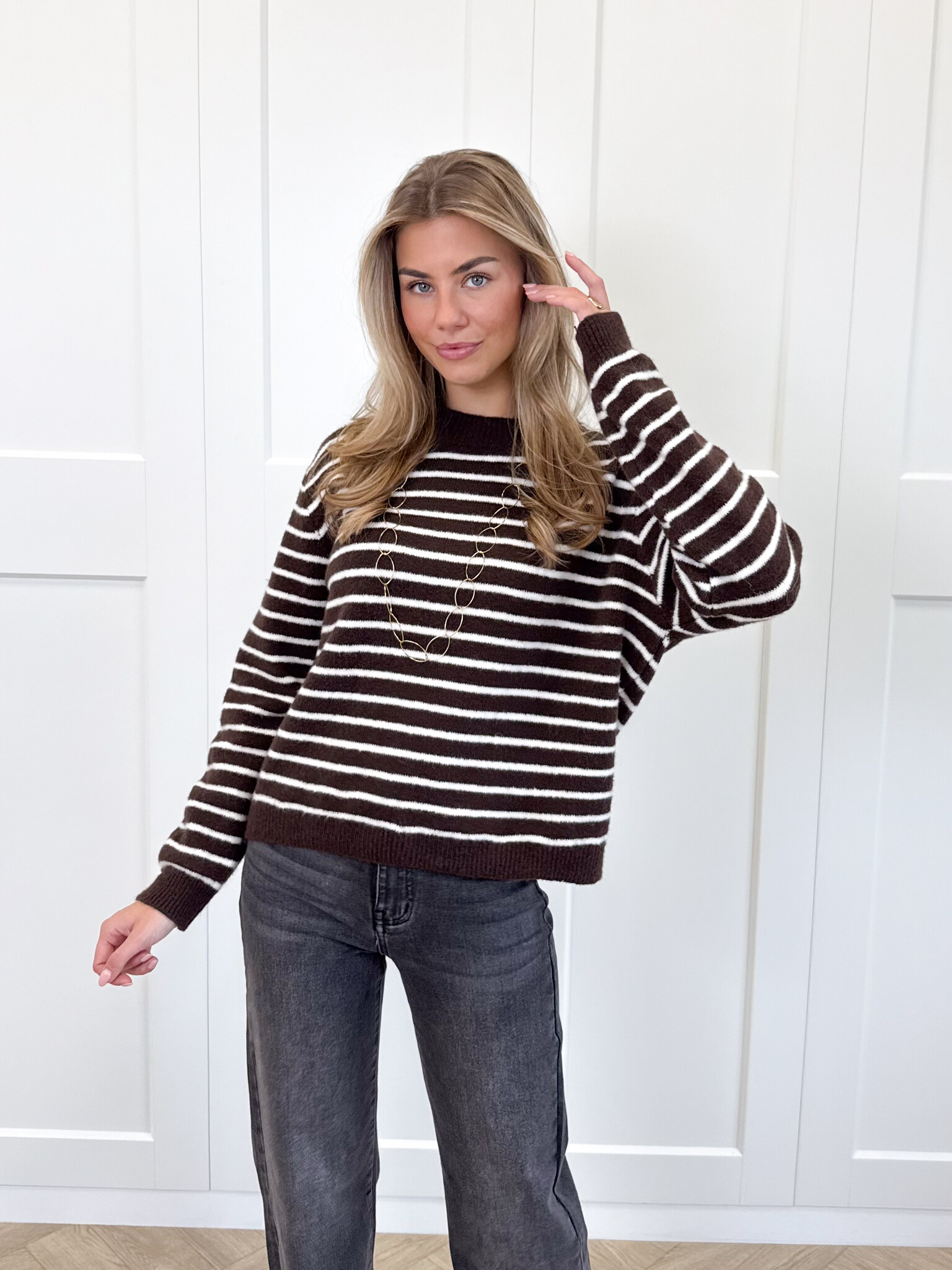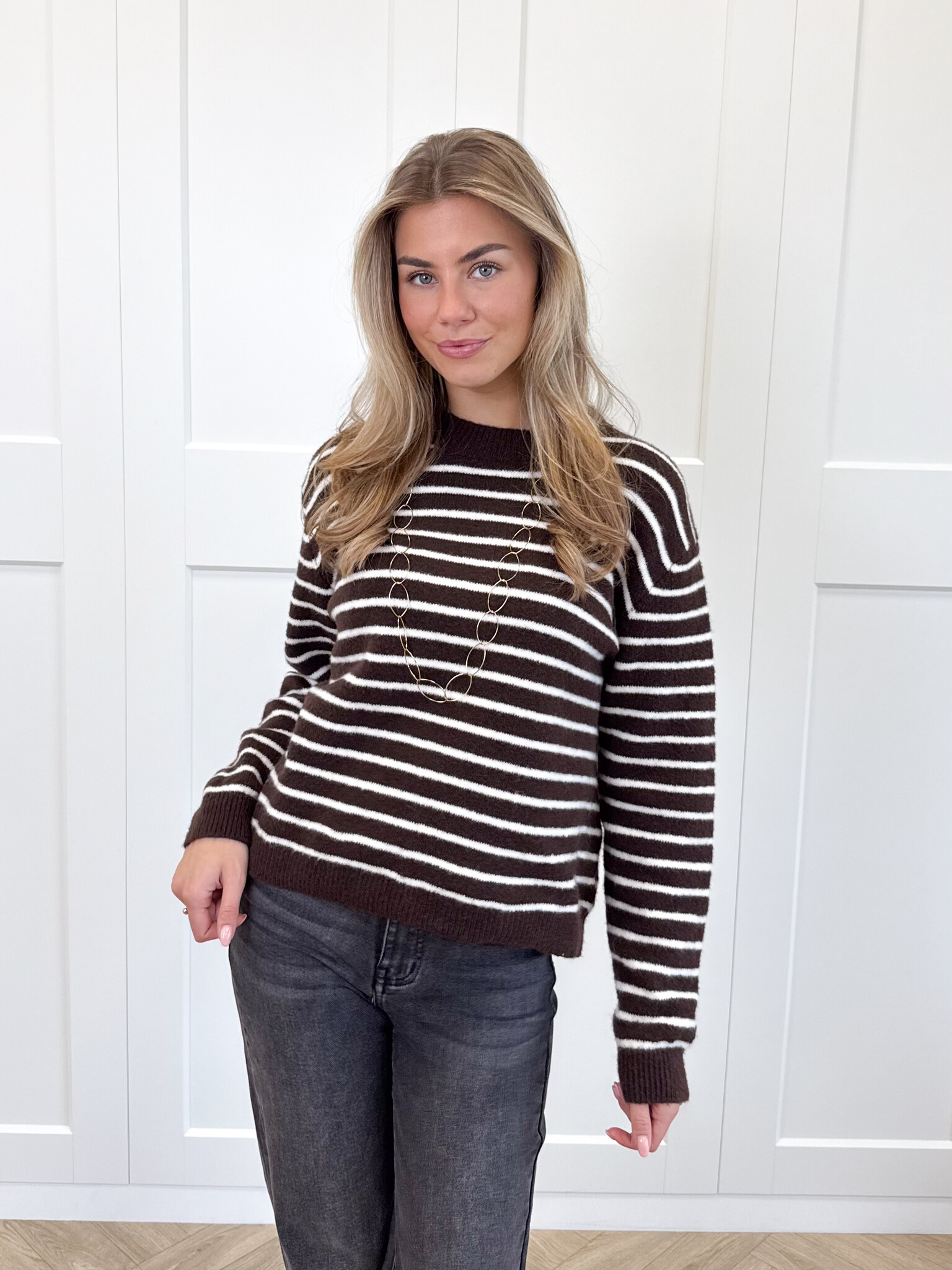 Strepen trui Elinora bruin