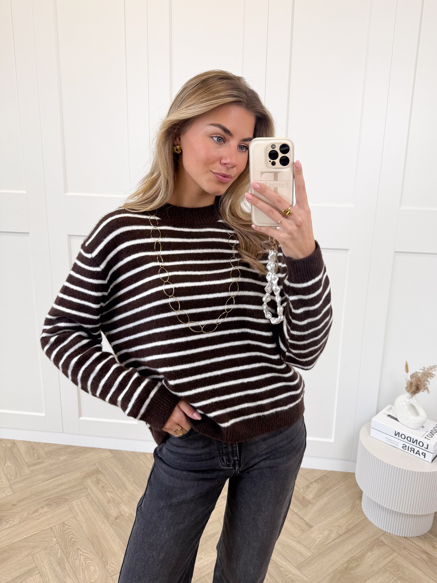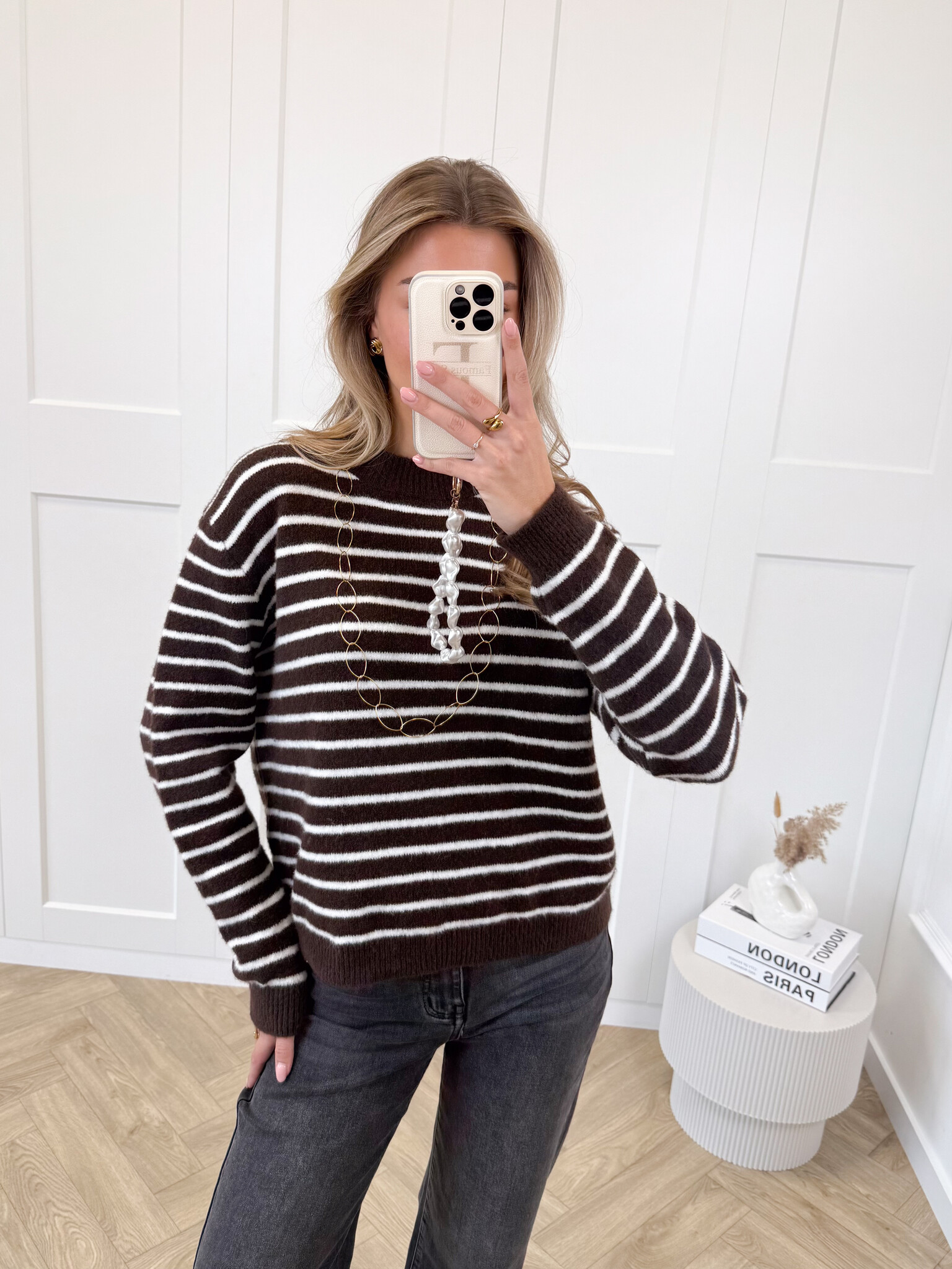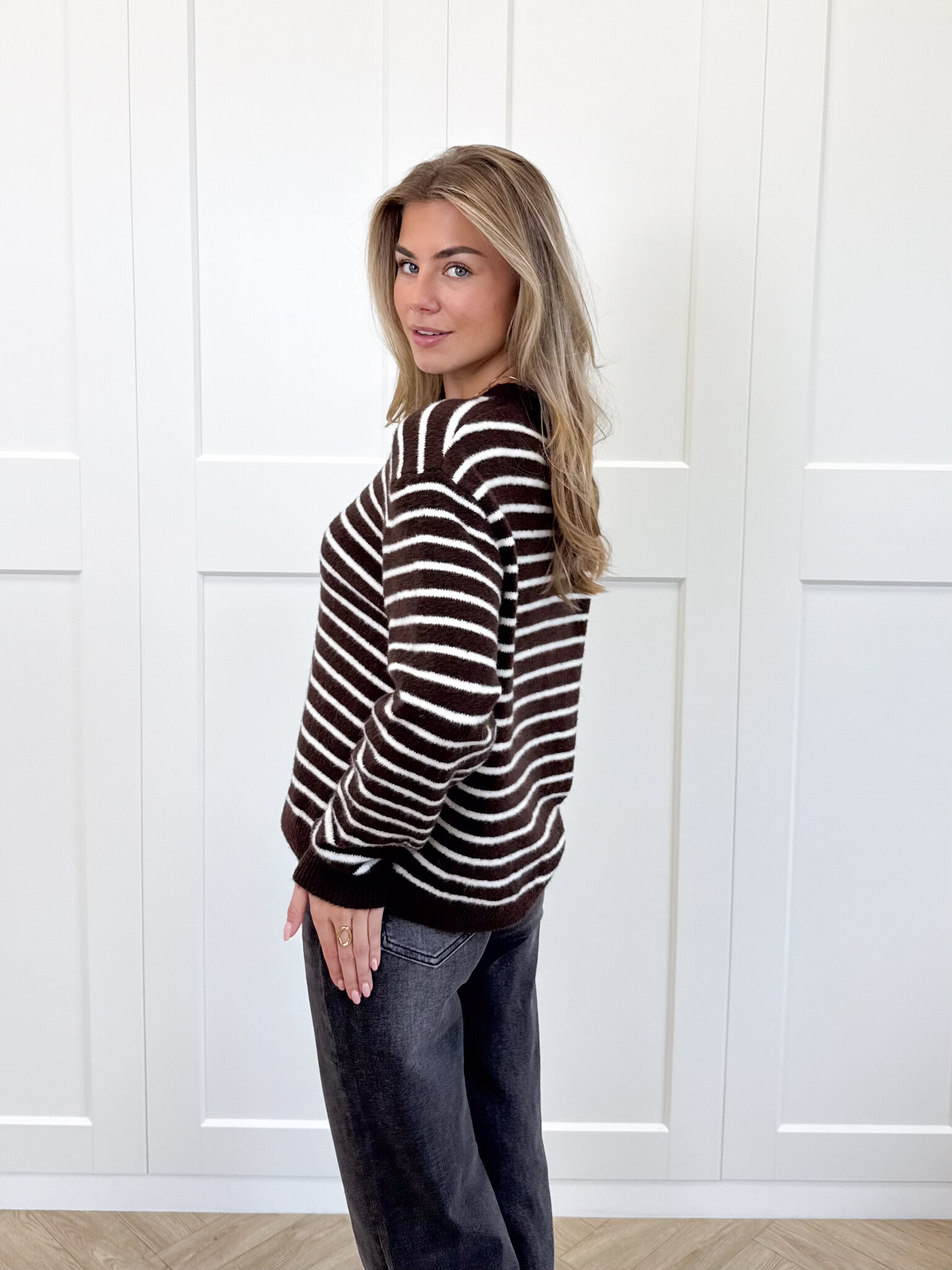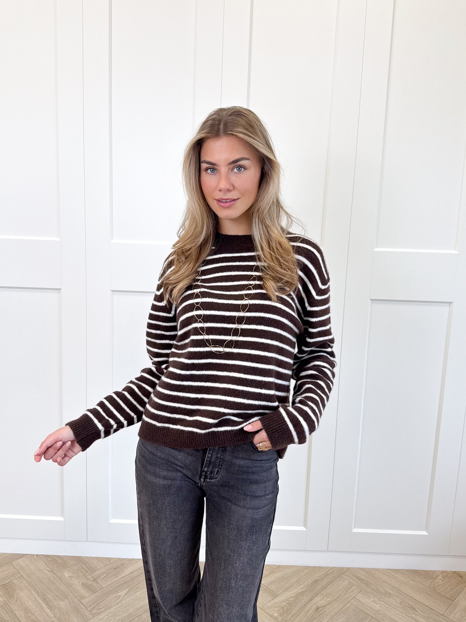 Strepen trui Elinora bruin