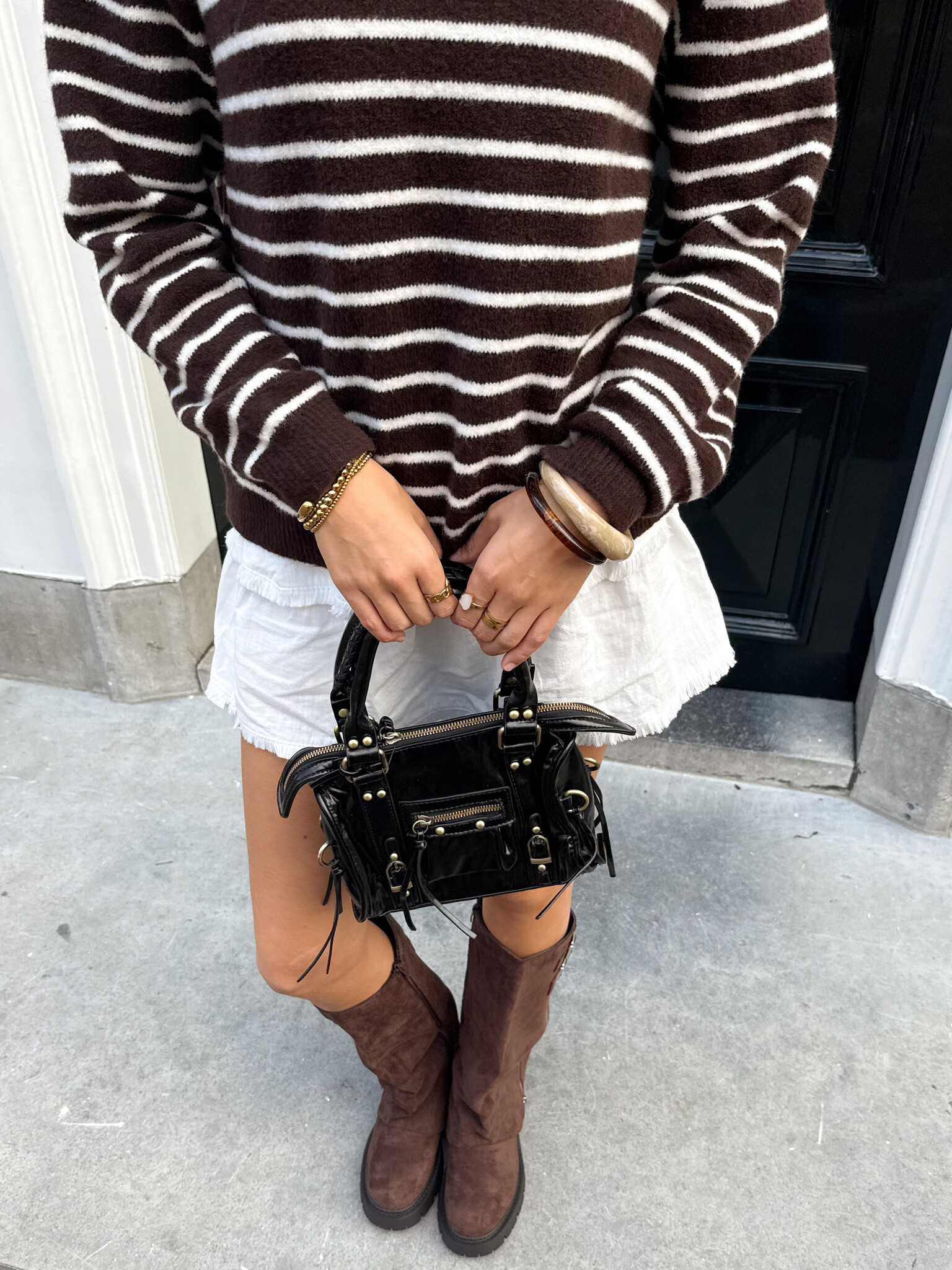 Say hello to our new favourite! Deze bruin-witte streepjes trui van zacht wol is super cozy én stijlvol tegelijk. De subtiele strepen geven een frisse en speelse look, terwijl de rafelrandjes aan de mouwen en onderkant een trendy, nonchalante touch toevoegen. Draag ‘m met je favoriete jeans en sneakers voor een casual, girly vibe, of combineer met een rok en boots voor een iets chiquere outfit. Perfect voor school, een koffiedate of een relaxte dag met vriendinnen. Comfortabel, fashionable en ready-to-wear voor elke dag van de week!