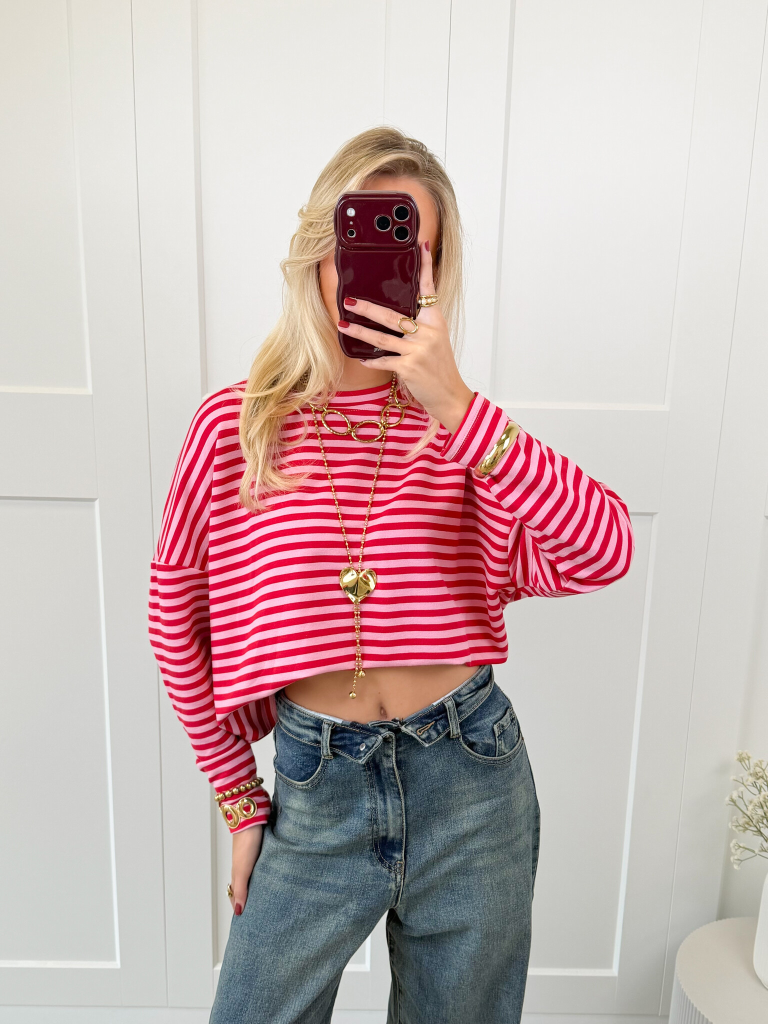 Deze gestreepte longsleeve is een echte musthave voor een girly en casual look. Gemaakt van zachte, comfortabele stof voelt hij heerlijk aan voor dagelijks gebruik. De subtiele strepen geven een frisse, tijdloze uitstraling en maken hem perfect te combineren met jeans of pantalons voor een effortless outfit. De lichte stretch zorgt voor een comfortabele pasvorm die meebeweegt gedurende de dag. Ideaal voor school, werk, een dagje uit of een koffiedate met vriendinnen. Met zijn veelzijdige stijl is hij eenvoudig te stylen met sneakers, jassen en sieraden voor een complete, trendy look. Een tijdloze toevoeging aan je girly wardrobe die comfort en stijl combineert.