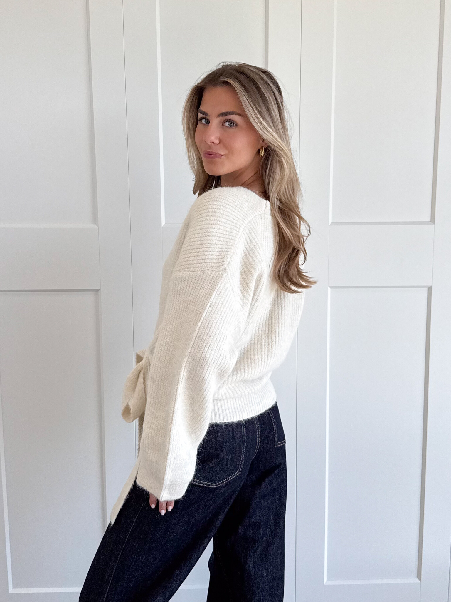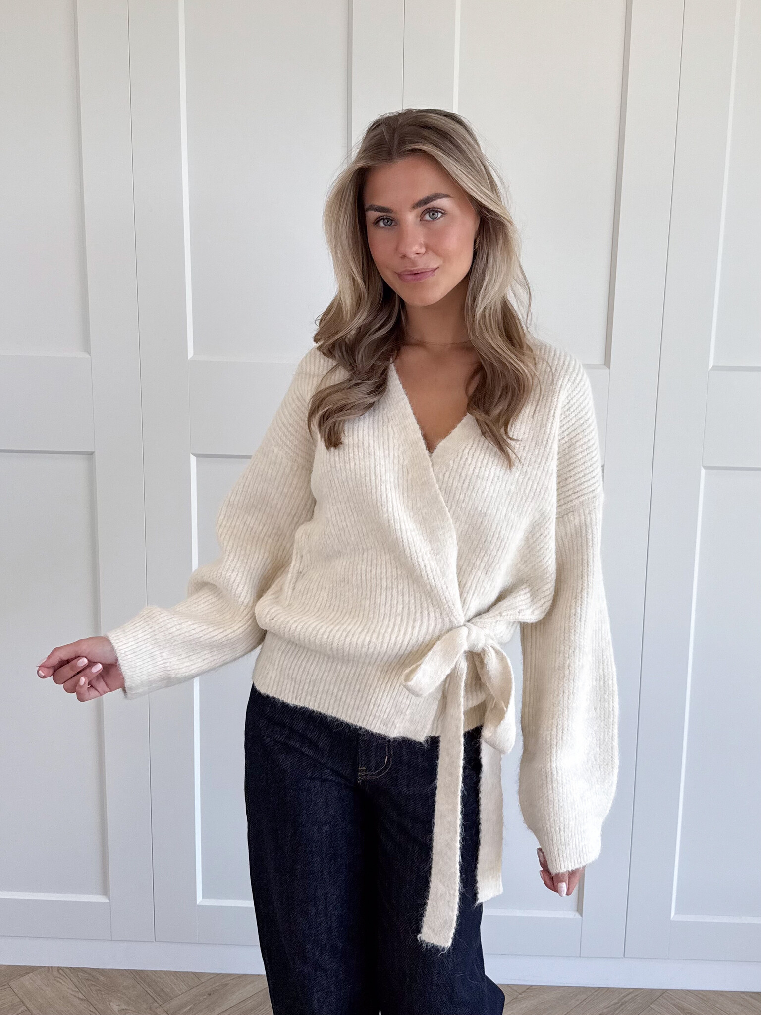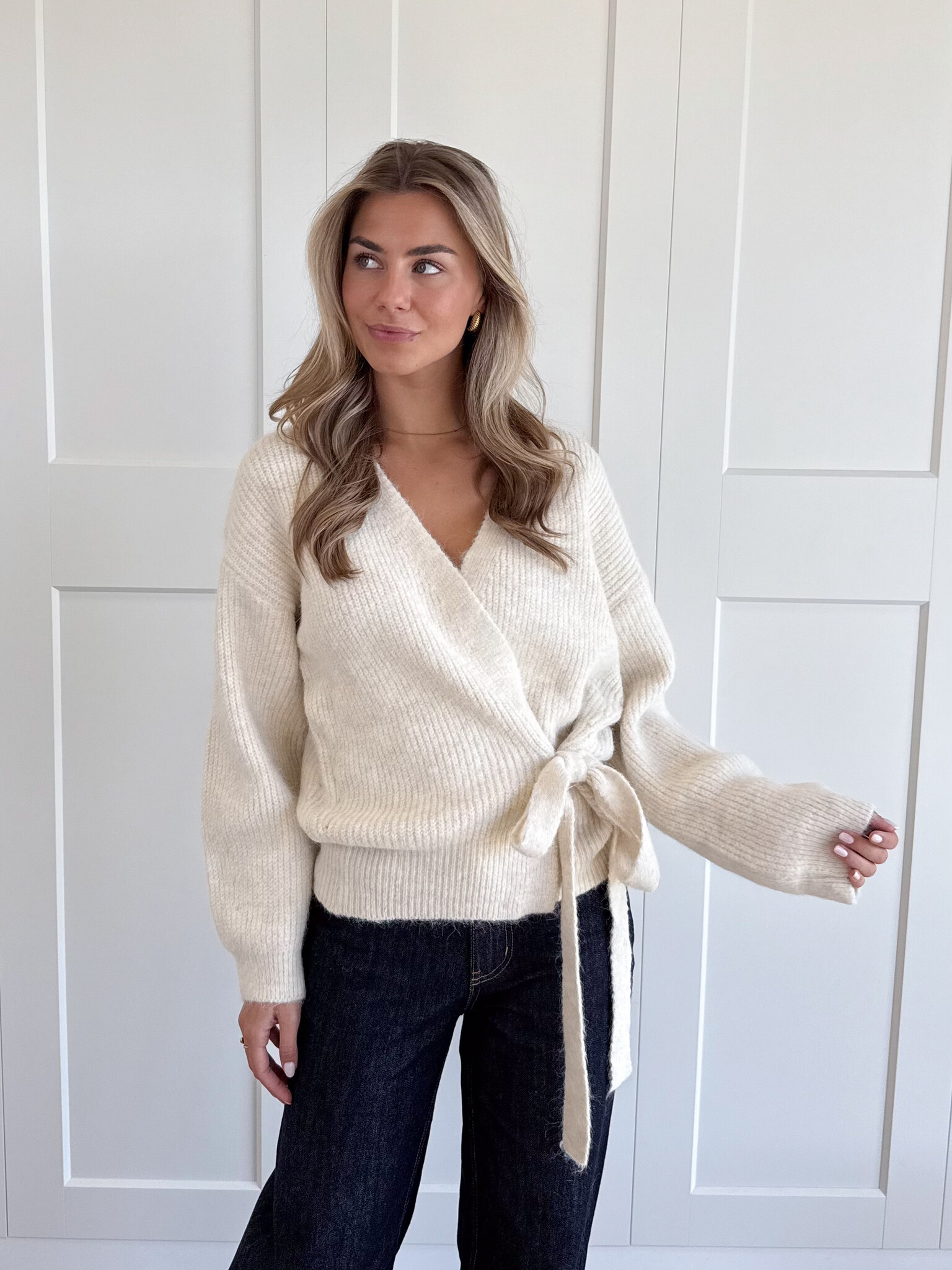 Dit ecru truitje is het perfecte item voor een feminine maar comfy look. Gemaakt van een zachte gebreide stof die soepel om je lichaam valt en heerlijk aanvoelt op de huid. De ribstructuur geeft extra diepte en een stijlvolle touch, terwijl de knoopdetails aan de zijkant zorgen voor een speelse en unieke twist. Dankzij de zachte stof en de relaxte fit draag je haar moeiteloos de hele dag door – ideaal voor werk, school of een casual dagje uit. Combineer met jeans voor een laid-back vibe of style haar met een rok voor een chique touch.