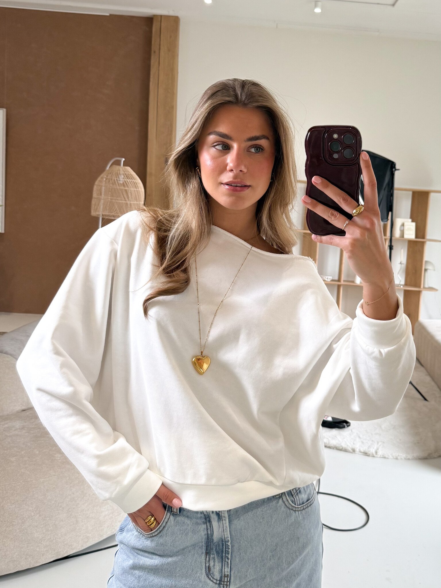 Ontmoet jouw nieuwe go-to sweater voor dit seizoen. Deze beauty is gemaakt van een zachte stof die heerlijk comfortabel aanvoelt. De brede boothals geeft haar een vrouwelijke touch, terwijl de oversized mouwen zorgen voor een nonchalante, trendy look. Draag haar casual met een jeans of combineer met een rok voor een cozy chic vibe. Perfect voor dagen waarop je comfort en stijl wilt samenbrengen.