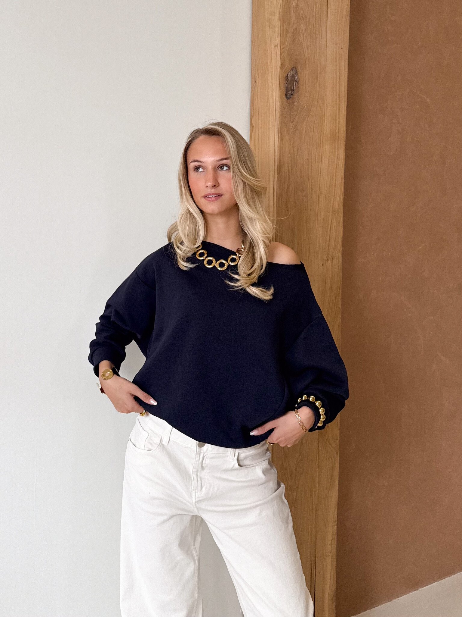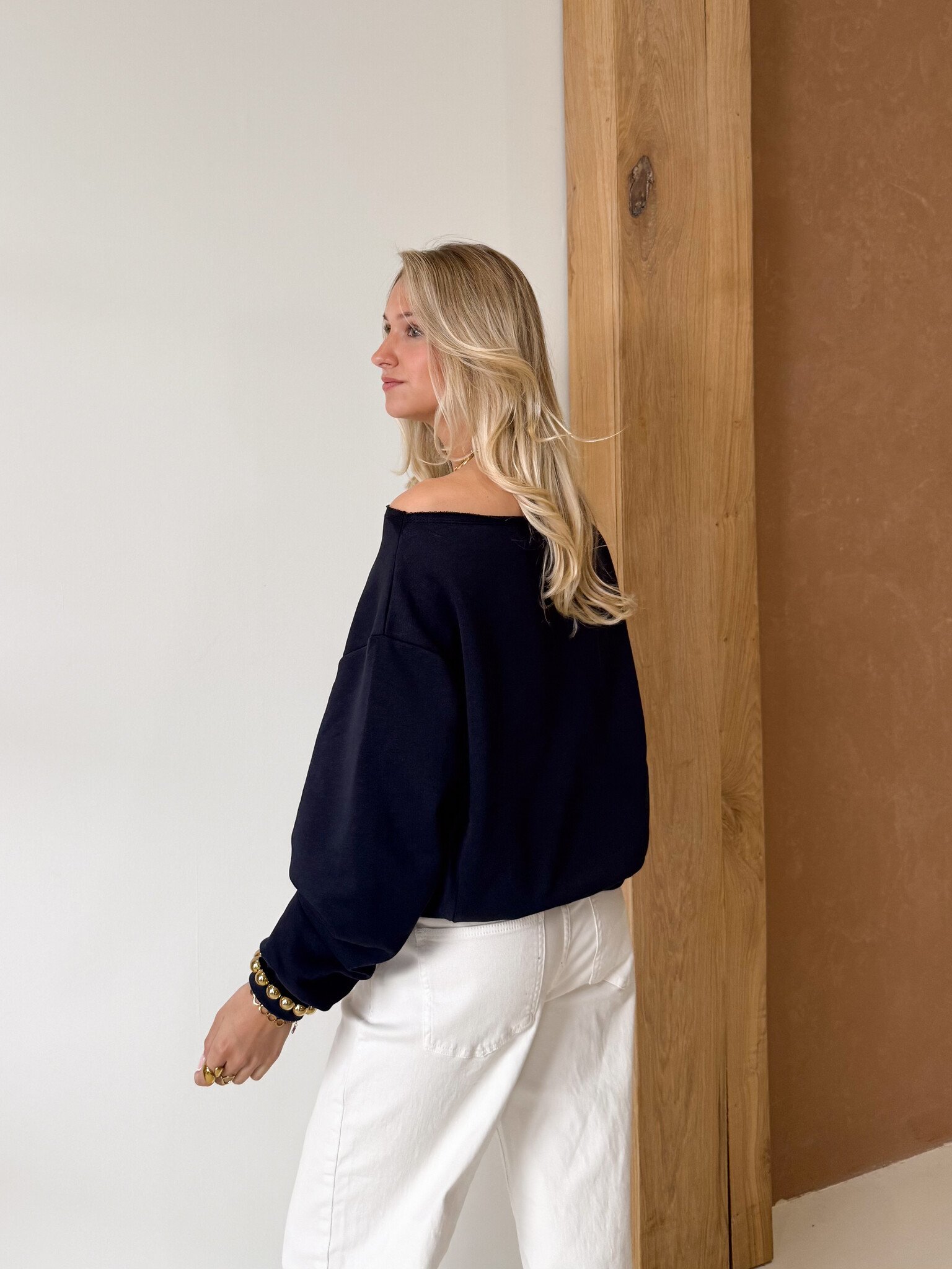 Ontmoet jouw nieuwe go-to sweater voor dit seizoen. Deze beauty is gemaakt van een zachte stof die heerlijk comfortabel aanvoelt. De brede boothals geeft haar een vrouwelijke touch, terwijl de oversized mouwen zorgen voor een nonchalante, trendy look. Draag haar casual met een jeans of combineer met een rok voor een cozy chic vibe. Perfect voor dagen waarop je comfort en stijl wilt samenbrengen.