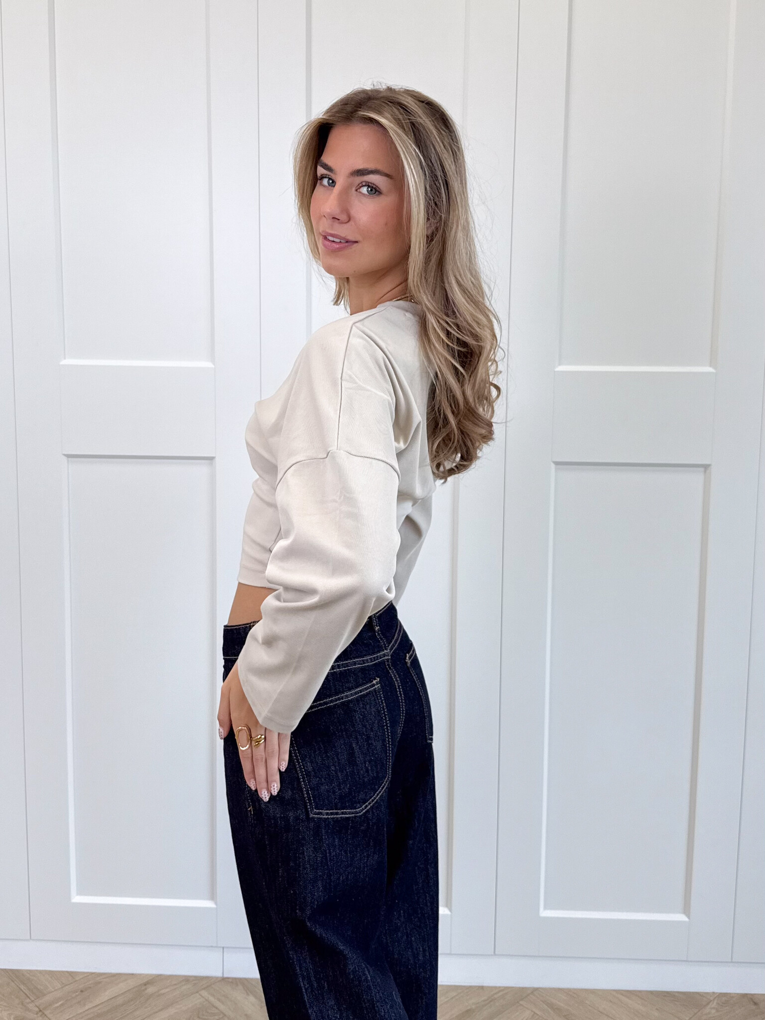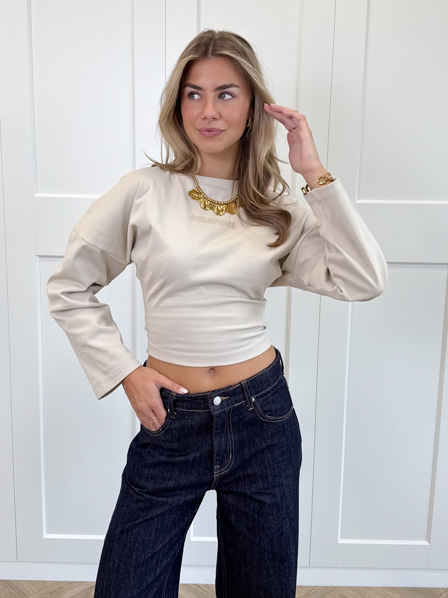 Deze kaki top met lange mouwen is een perfecte mix van casual en stijlvol. Het model sluit mooi aan bij de taille voor een flatterend silhouet, terwijl de bovenkant wat losser valt voor een comfy en relaxte uitstraling. Dankzij de zachte stof voelt hij heerlijk aan op de huid en is hij makkelijk te combineren met jeans, rokken of een blazer. Een echte everyday essential met een fashionable touch.