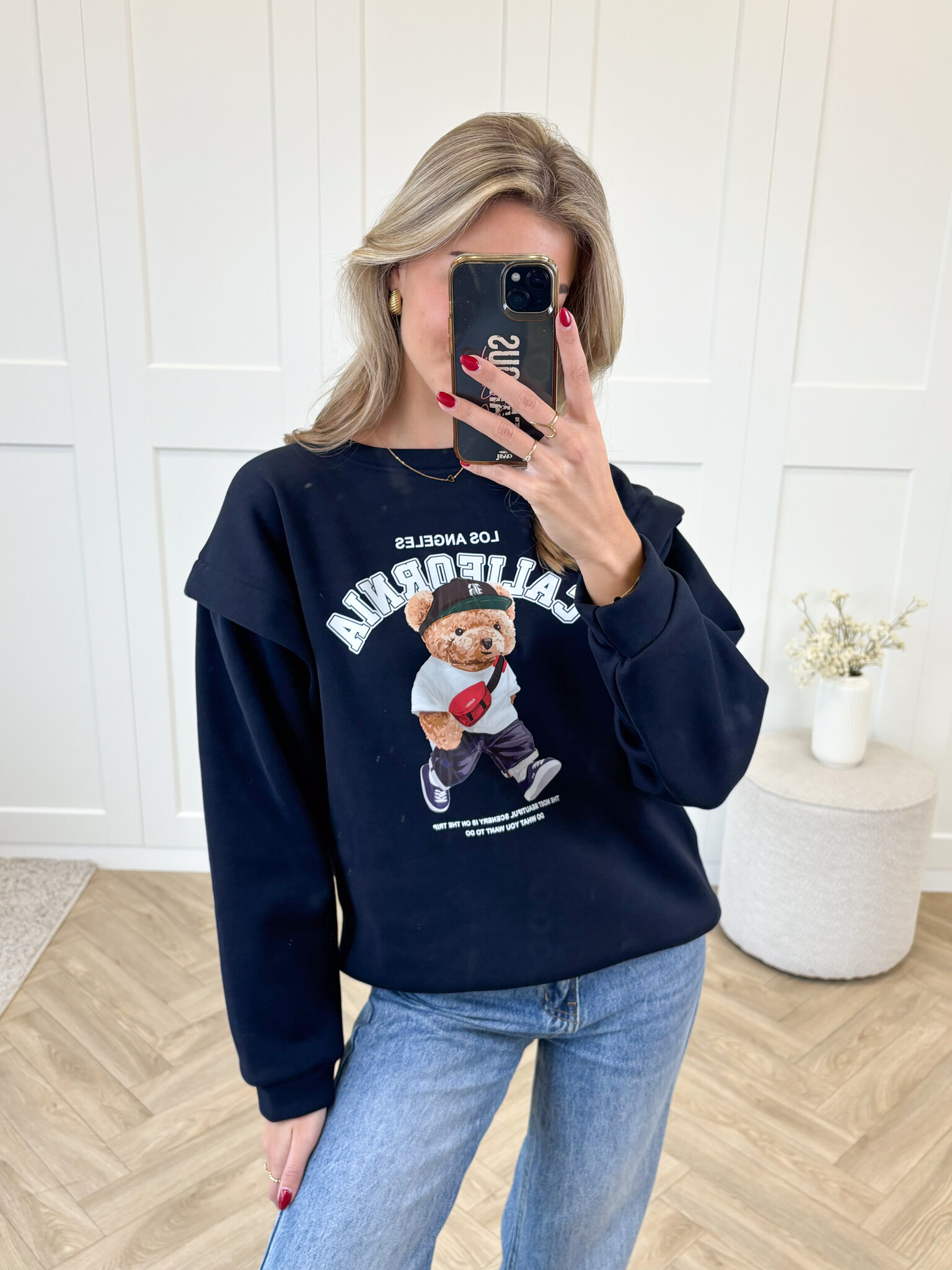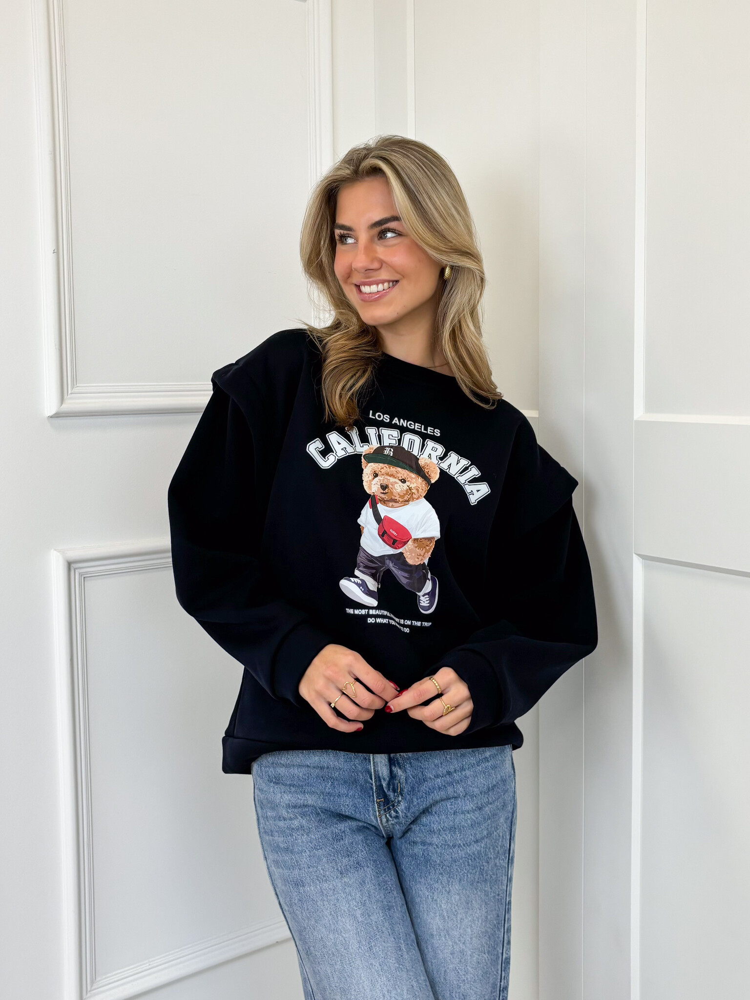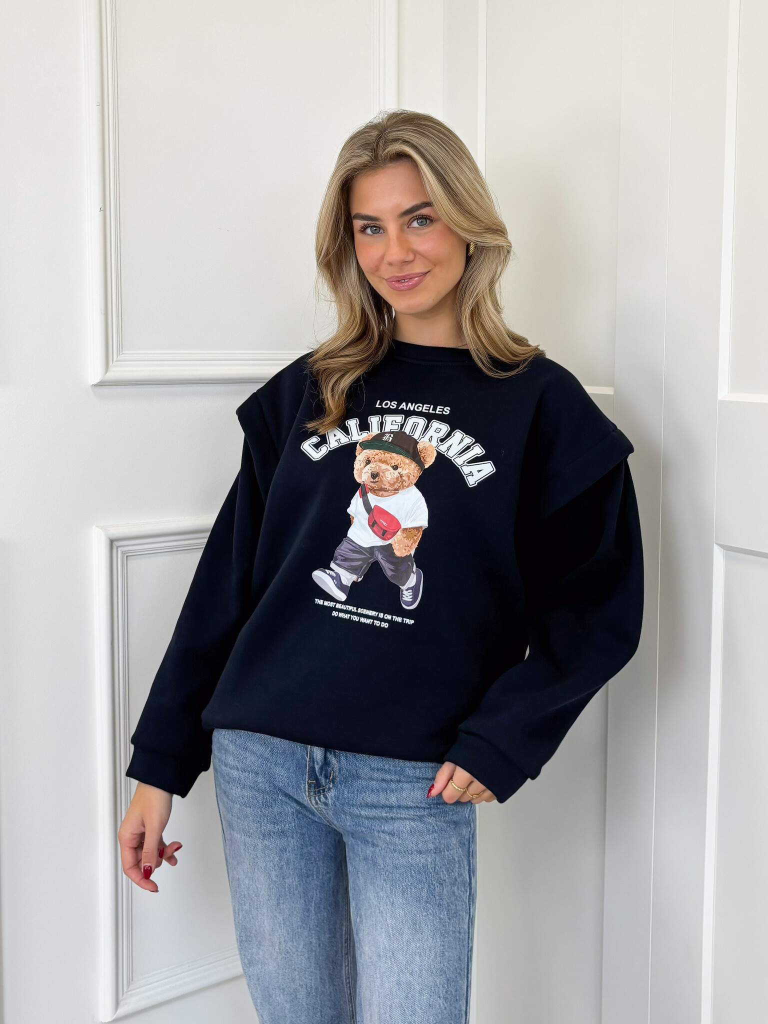 Need a cosy sweater? Hoe cute is deze sweater met beer print. De trui heeft een speels detail op de schouders. Je shopt deze trui in twee verschillende kleuren! Combineer met een jeans en je bent ready to go. Je shopt deze trui in twee verschillende kleuren!