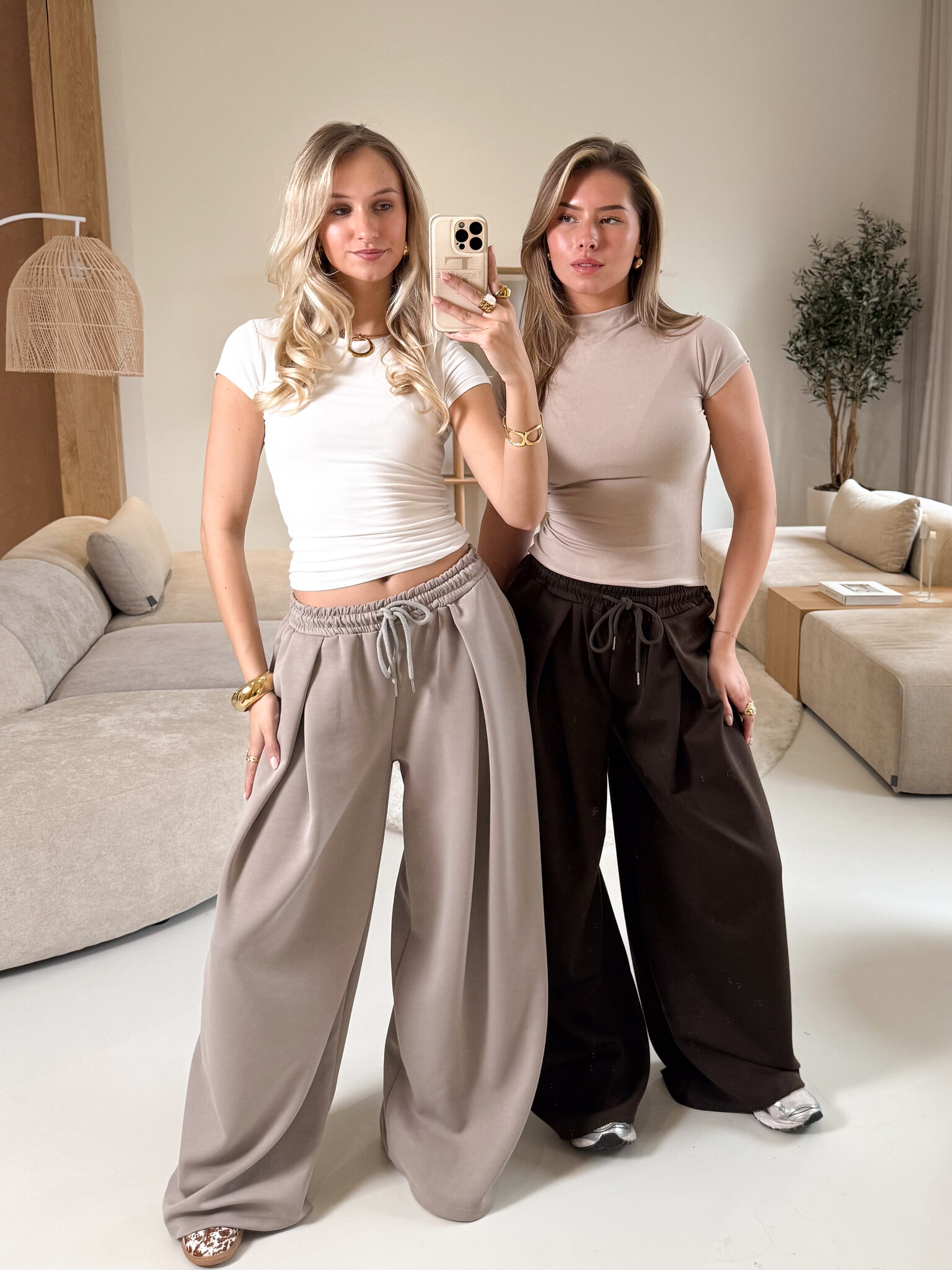 Deze broek is gemaakt van een zachte, comfortabele stof die heerlijk aanvoelt op de huid. De rechte pasvorm zorgt voor een moderne en flatterende look, waardoor hij niet alleen geschikt is voor thuis, maar ook perfect is voor casual outfits buitenshuis. De taille sluit fijn aan en biedt genoeg bewegingsvrijheid, zodat je de hele dag comfortabel blijft. Door de minimalistische uitstraling is dit item makkelijk te combineren met knitwear, tops of sweaters. Een echte musthave voor meiden die comfort en stijl willen combineren.