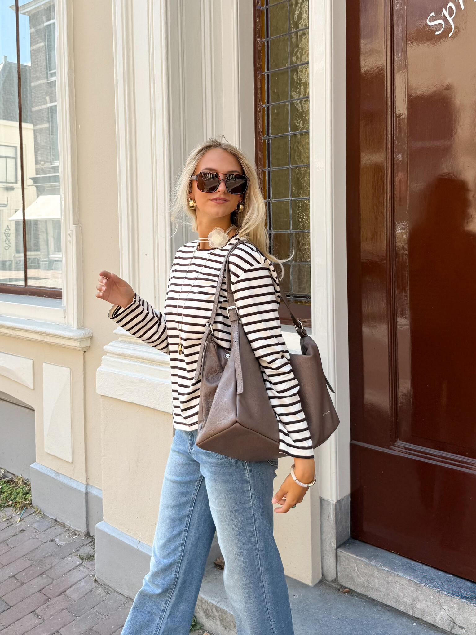 Say hello to Valerie! Deze tas gemaakt van soepel leerlook materiaal is super praktisch met verstelbare handvaten en een extra band om hem als crossbody te dragen. De schuine rits bovenop maakt hem net even anders dan de rest. Perfect om je essentials stijlvol mee te nemen, of je nou naar kantoor gaat of een dagje uit!