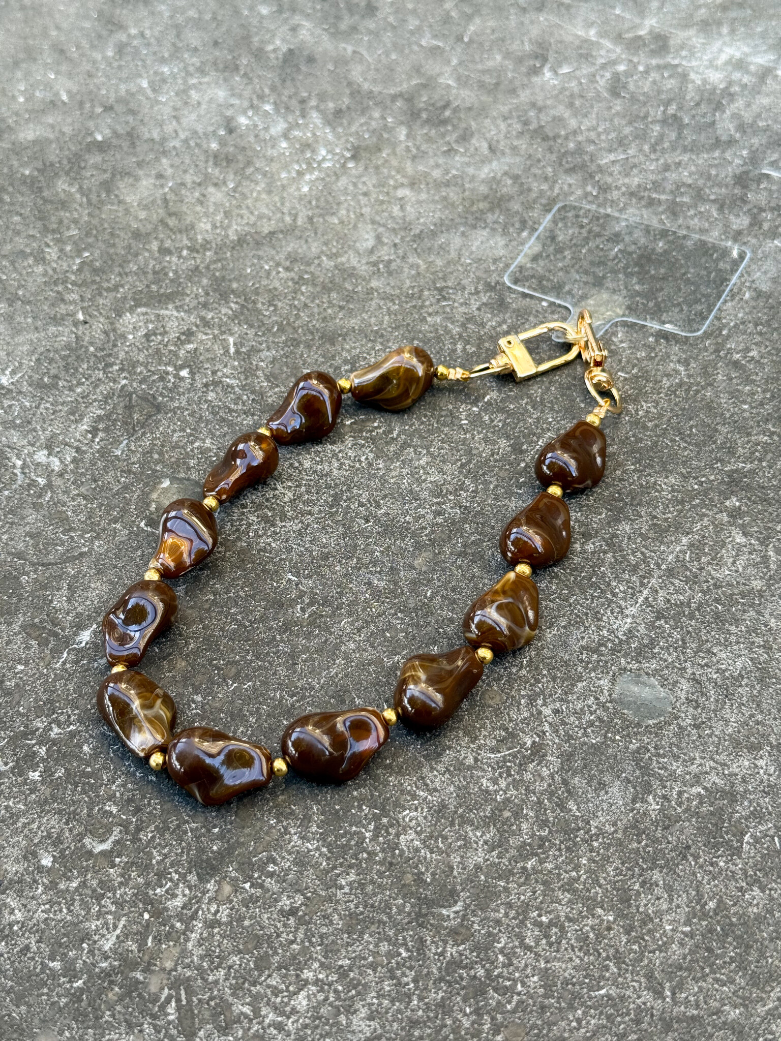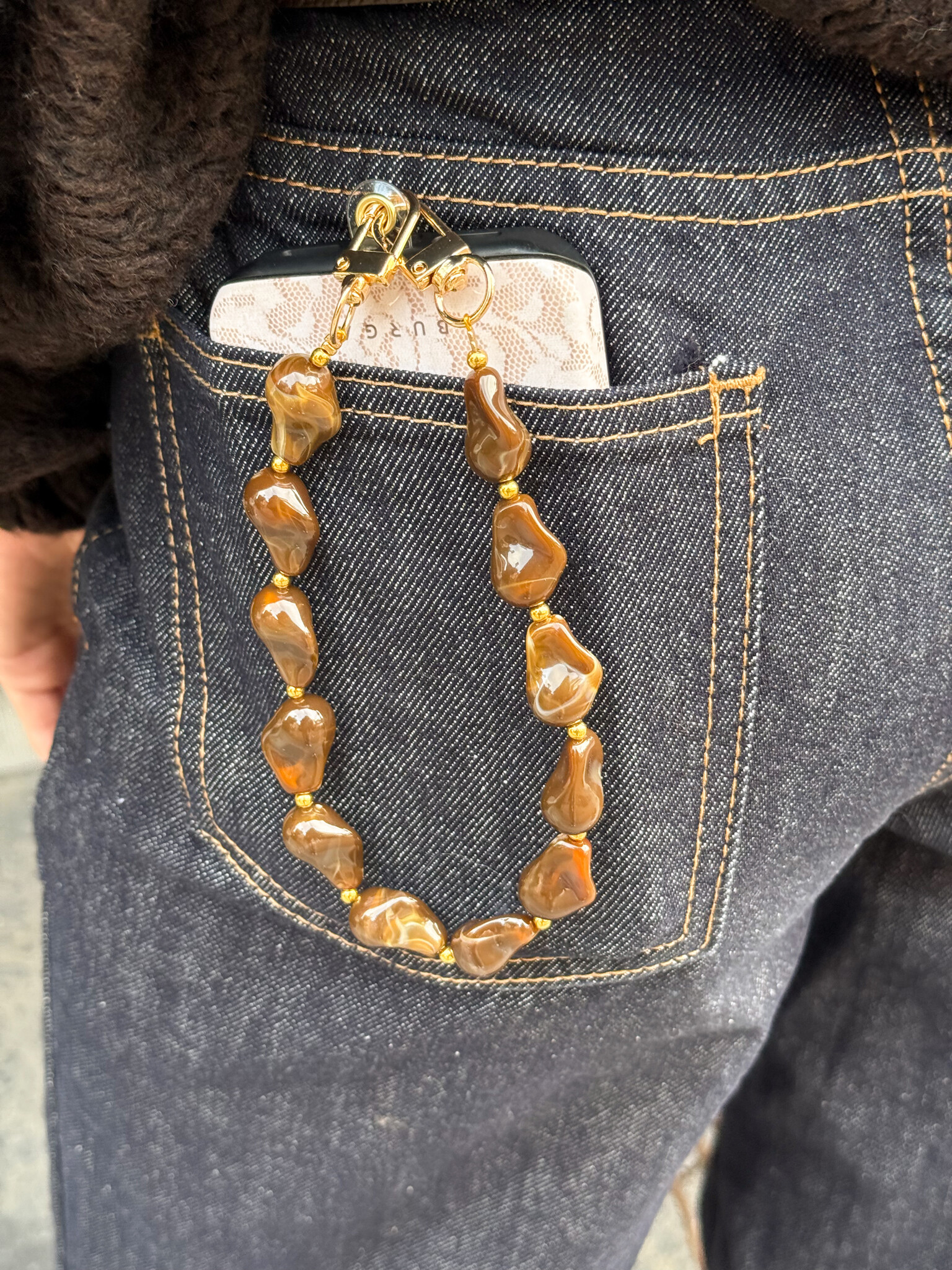Geef je smartphone een stijlvolle upgrade met dit bruine parel telefoonkoord. Handig, elegant en perfect om je telefoon altijd bij de hand te hebben.