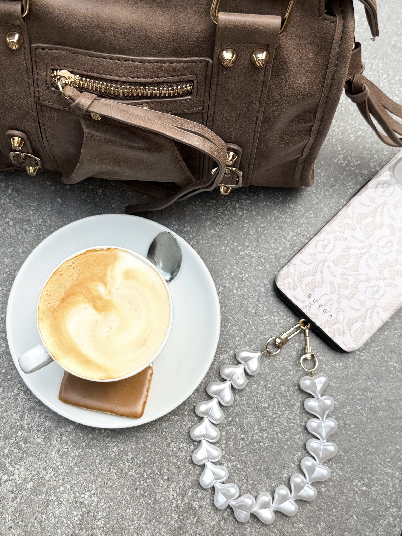 Geef je smartphone een stijlvolle upgrade met dit harten parel telefoonkoord. Handig, elegant en perfect om je telefoon altijd bij de hand te hebben.