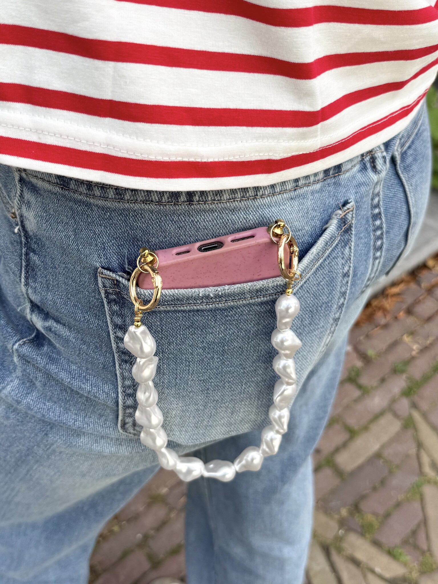 Geef je smartphone een stijlvolle upgrade met dit parel telefoonkoord. Handig, elegant en perfect om je telefoon altijd bij de hand te hebben.