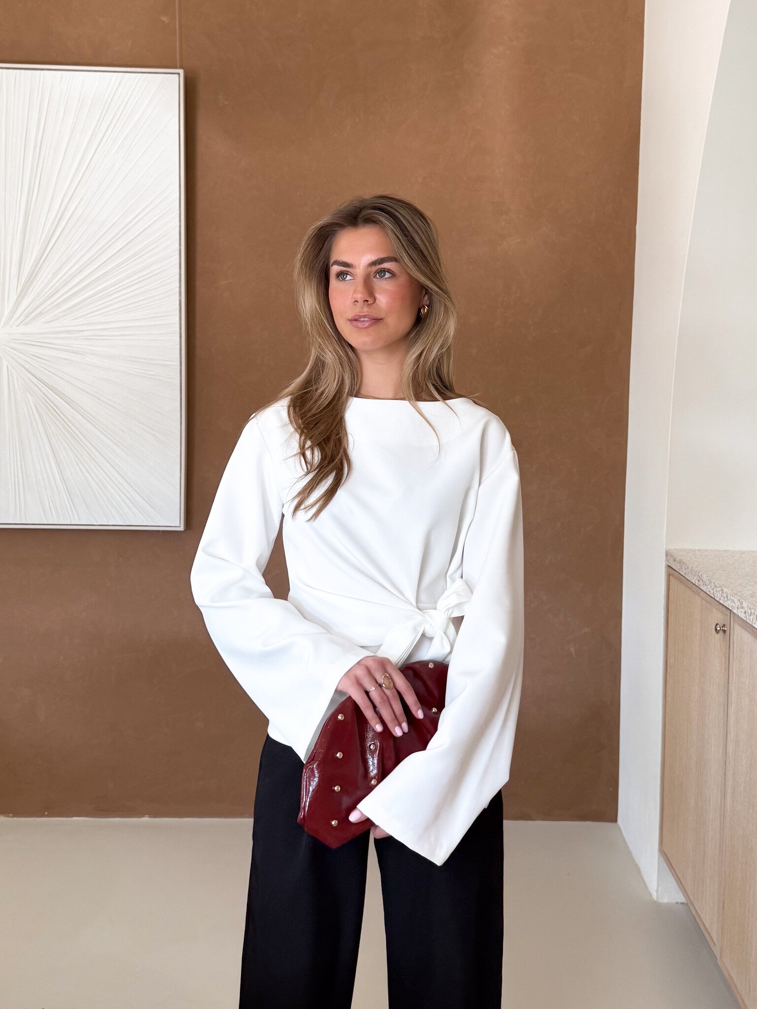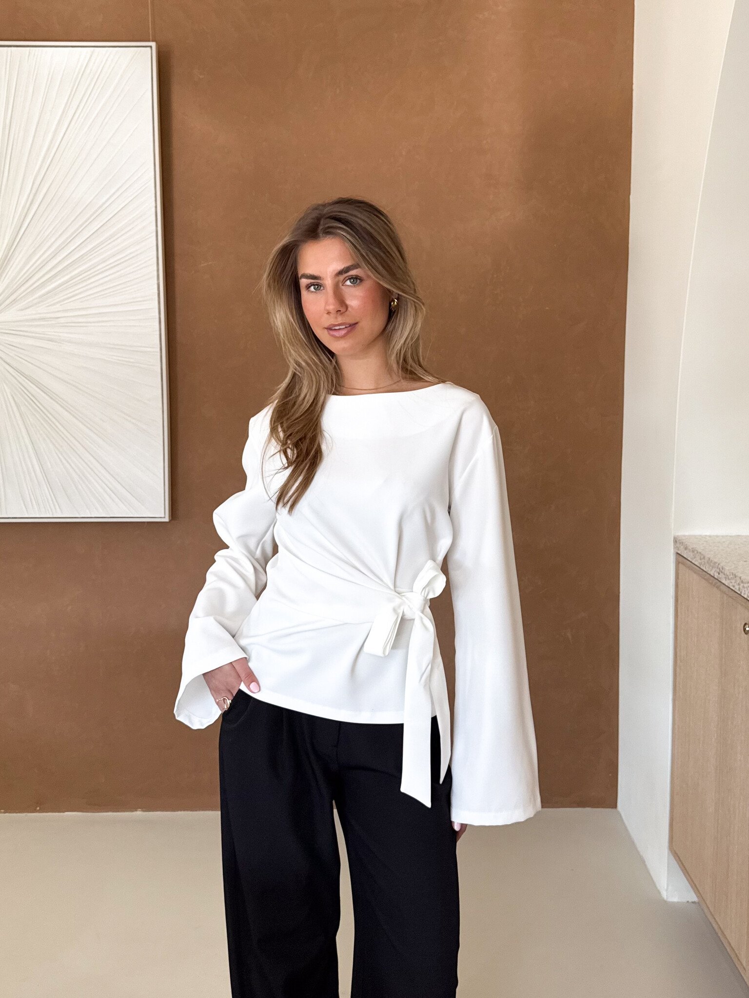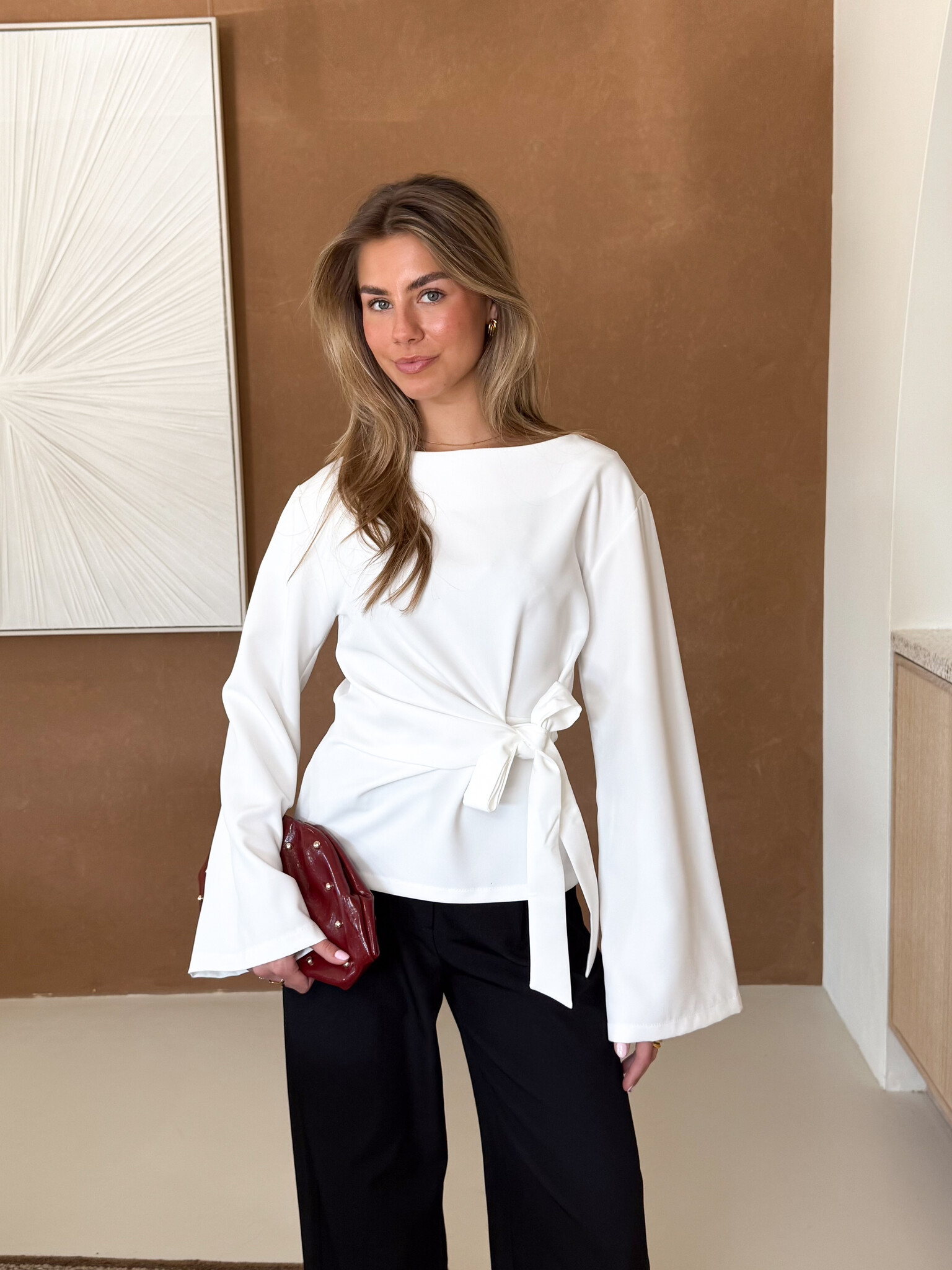 Deze top straalt pure elegantie uit en is een echte eyecatcher in je garderobe. De lange mouwen en getailleerde pasvorm zorgen voor een vrouwelijke en flatterende look. Het extra stofdetail dat je kunt strikken geeft een speels maar chic accent en laat je taille mooi uitkomen. De zachte stof voelt comfortabel aan en maakt het item fijn om zowel overdag als ’s avonds te dragen. Combineer met een pantalon voor een classy vibe of met een jeans voor een meer casual maar stijlvolle outfit. Perfect voor etentjes, feestjes of een date night waar je net iets meer wilt shinen ✨