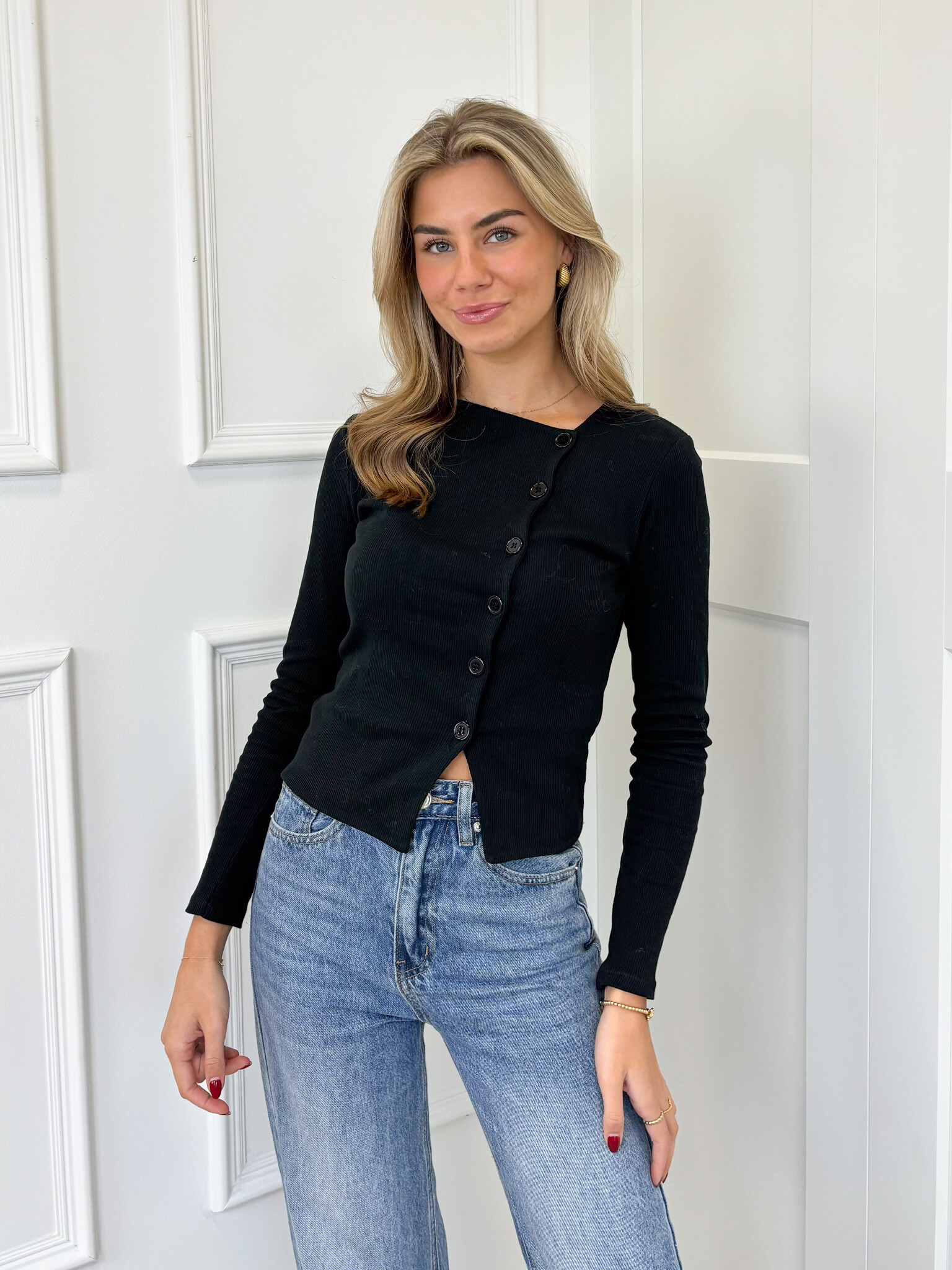 De perfecte basic top met knopen! Het heeft een geribbelde stof met knopen die schuin over op de top zit. Een tijdloze musthave die je gemakkelijk overal op kan combineren. Je shopt deze in drie verschillende kleuren!