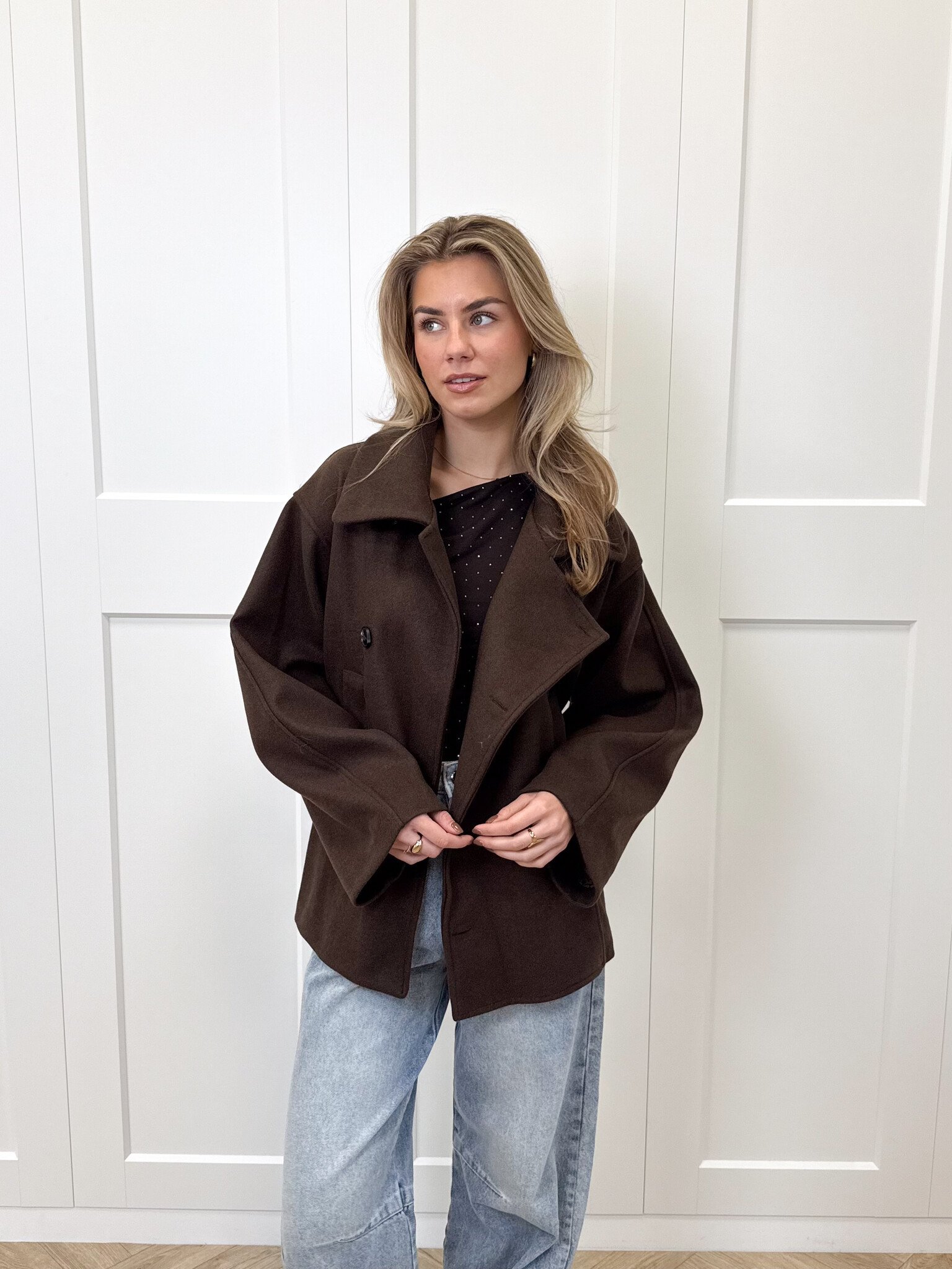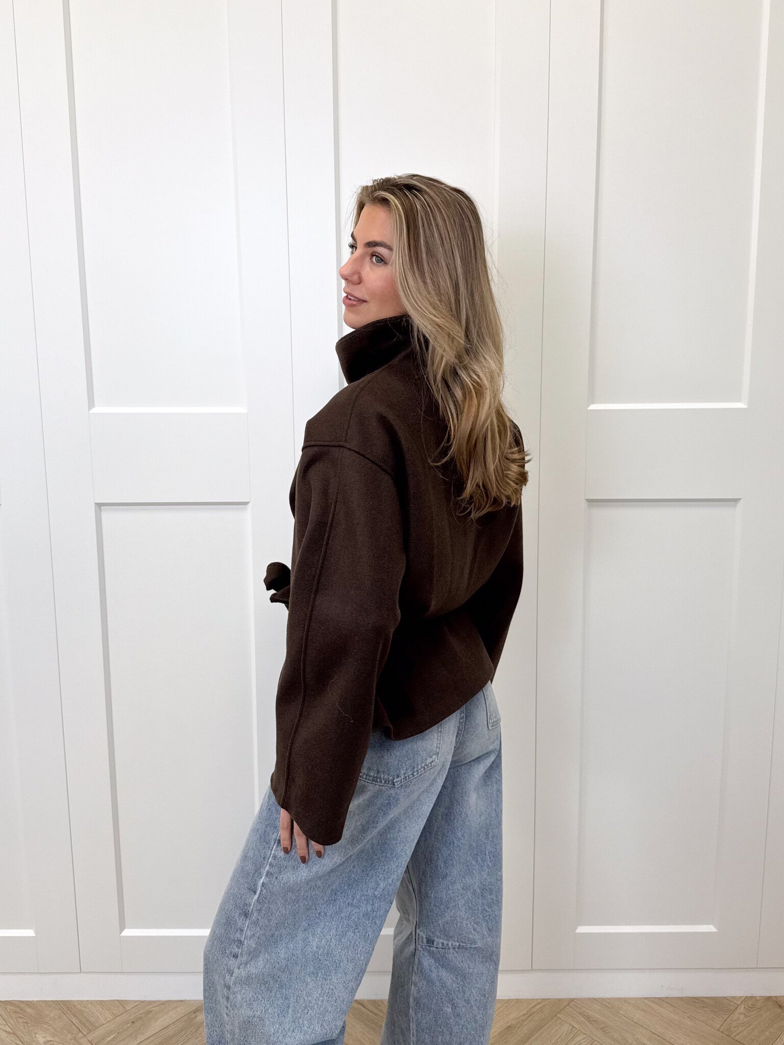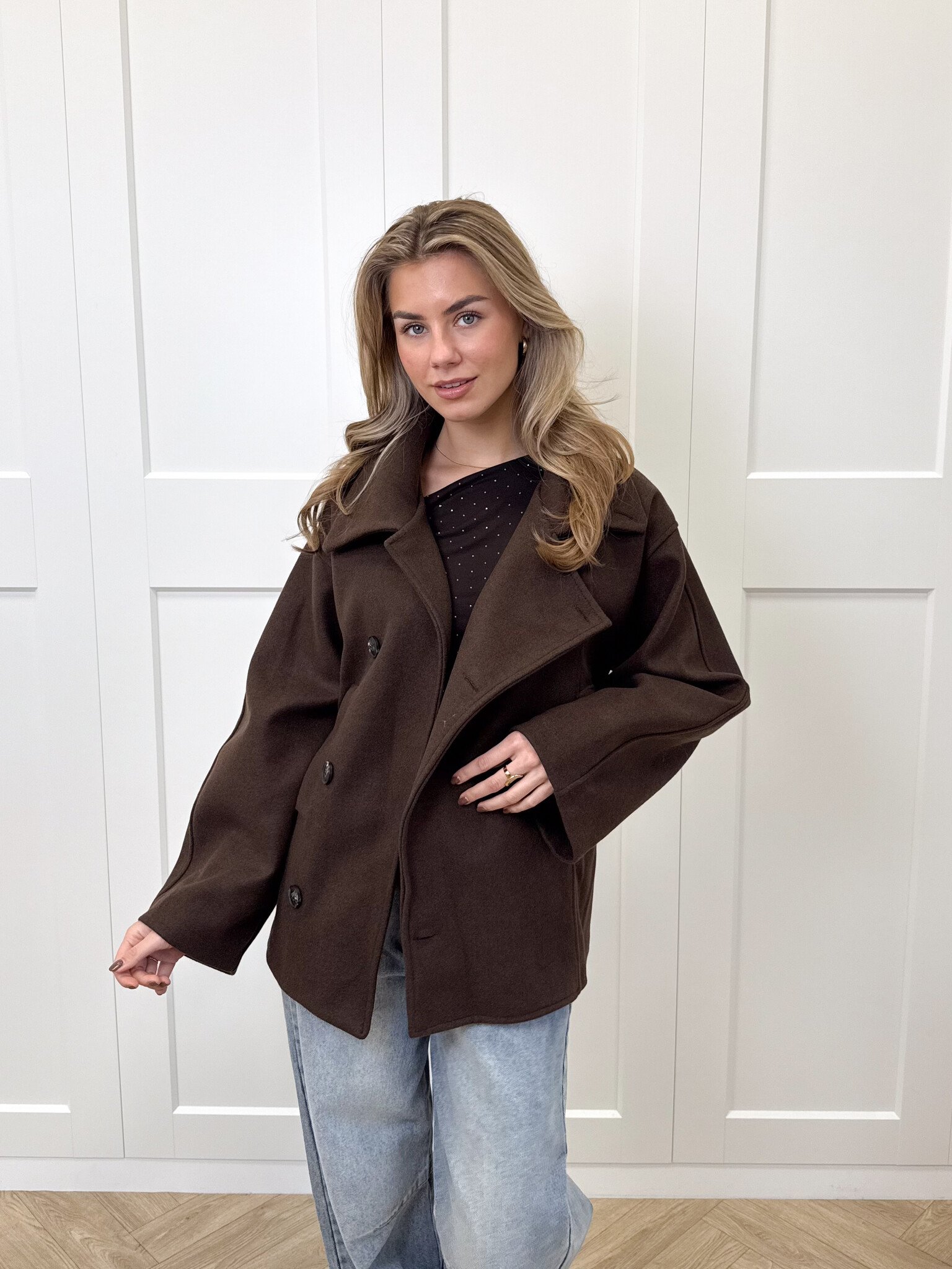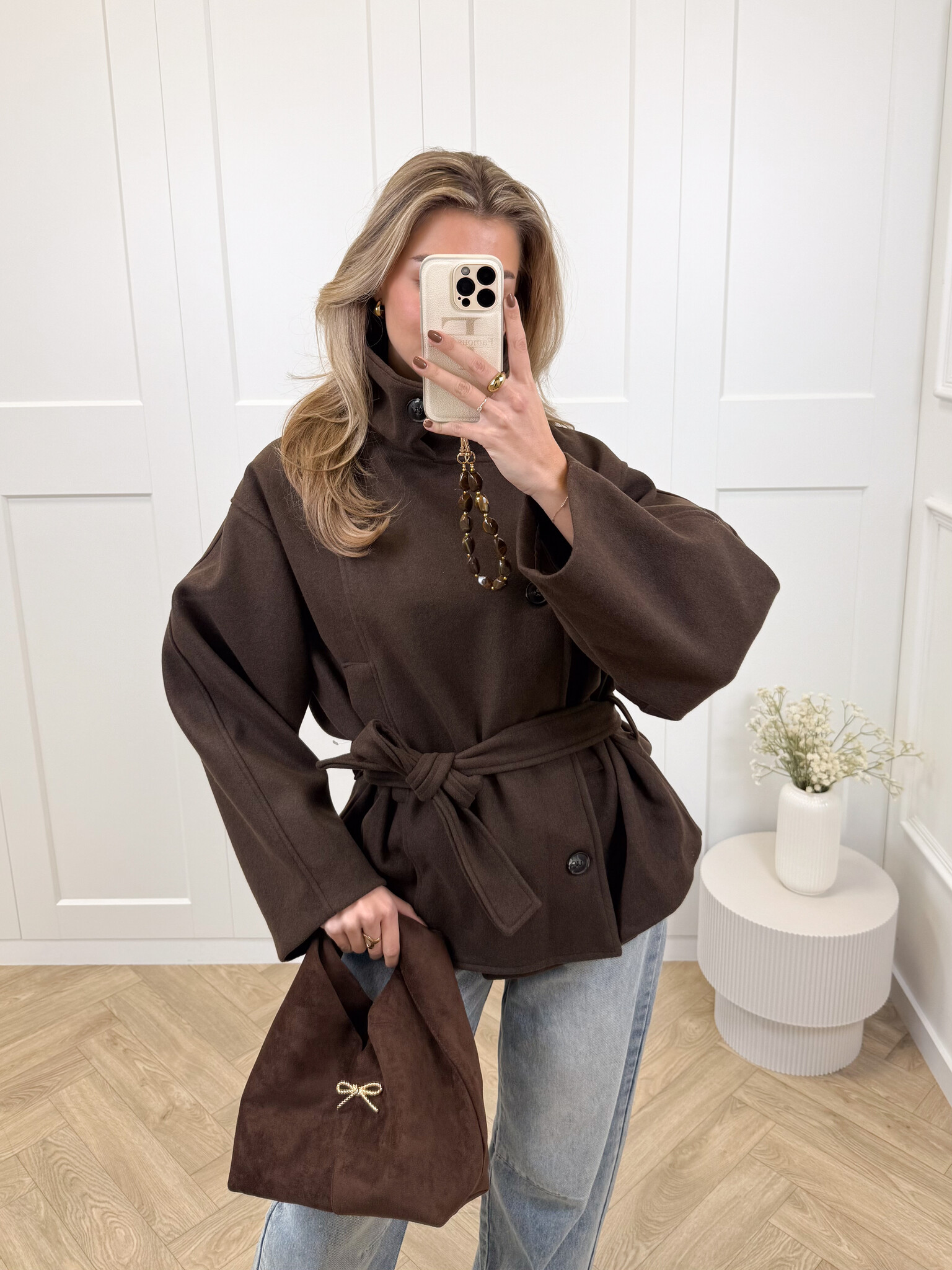Deze korte wollen trenchcoat is de perfecte mix tussen warm, stijlvol en super vrouwelijk. De hoge kraag zorgt voor een chique uitstraling én extra warmte op koude dagen. De klassieke knoopsluiting en het ceintuur in de taille geven je silhouette een mooie shape, terwijl de praktische zakken de jas zowel elegant als functioneel maken. Dankzij de kortere lengte is hij ideaal om te combineren met jeans, pantalons of een rok van casual tot office chic. Of je nu onderweg bent naar school, werk of een city stroll, deze coat maakt elke outfit moeiteloos classy.