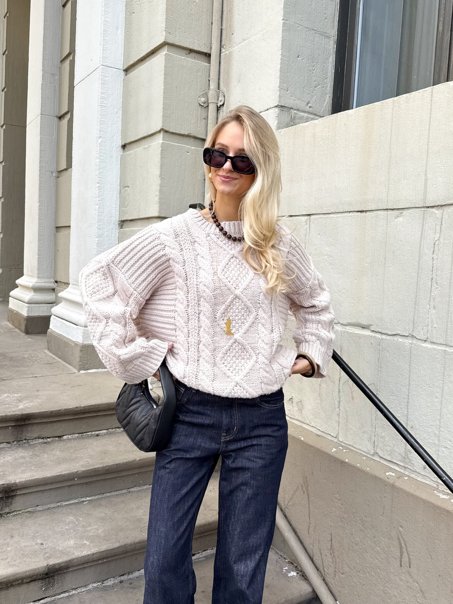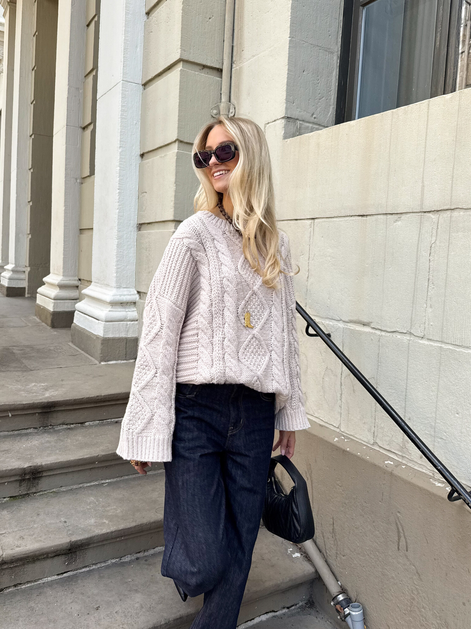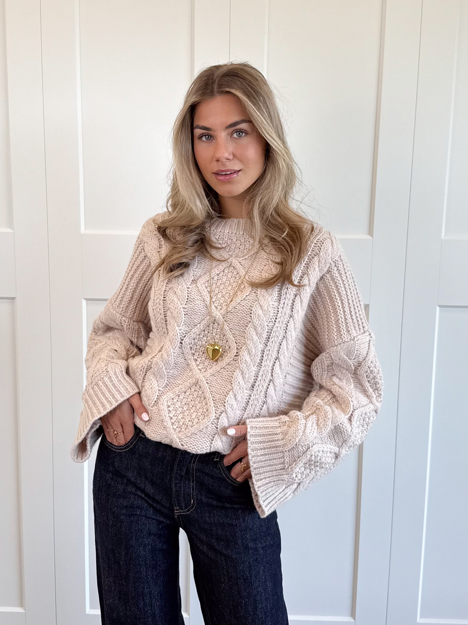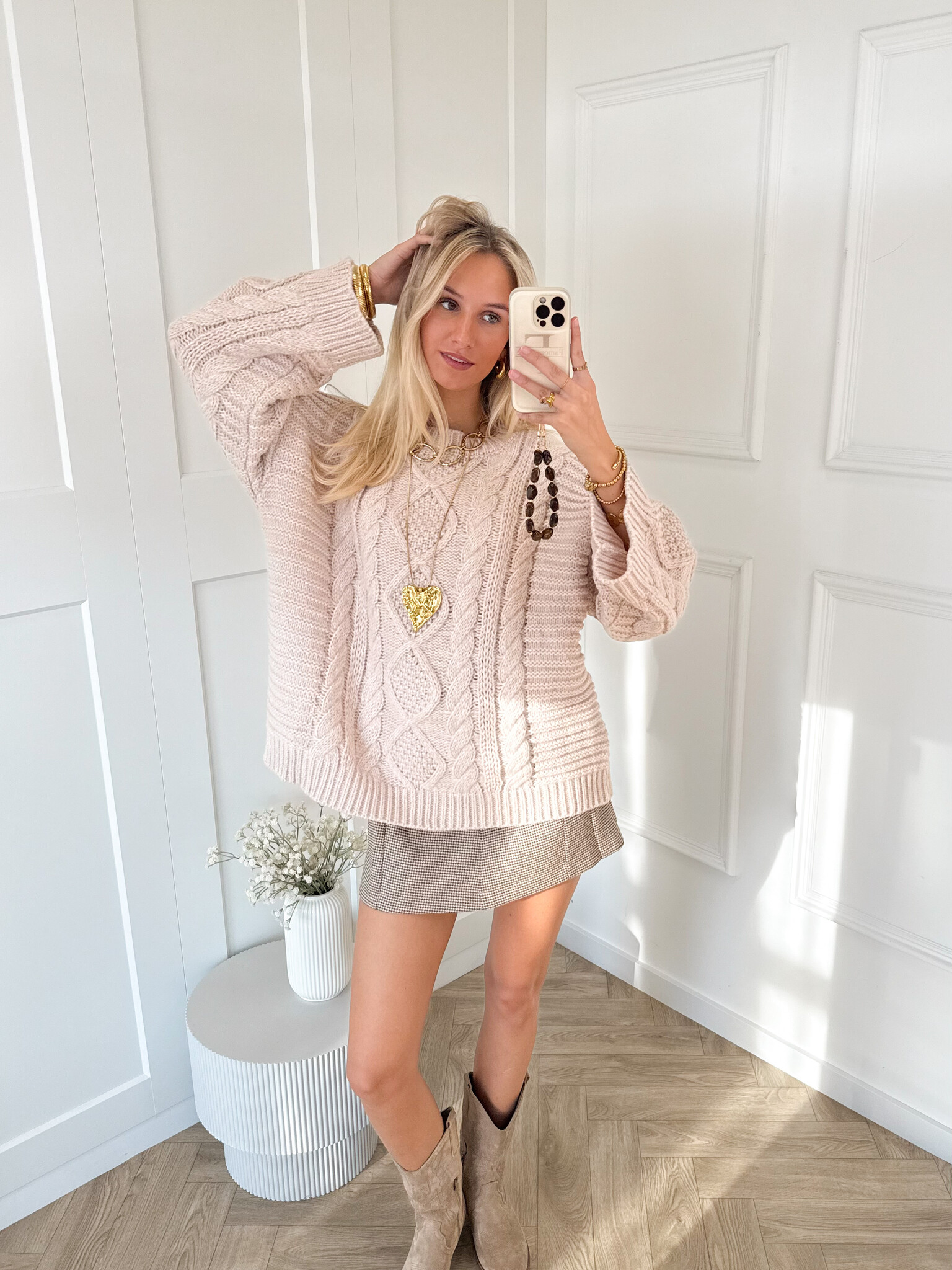 Deze beige kabeltrui wordt jouw ultieme cozy essential. De klassieke kabelstructuur geeft haar een tijdloze uitstraling, terwijl de oversized fit zorgt voor een relaxte en trendy look. Gemaakt van een warme, zachte knit die je heerlijk warm houdt tijdens koude dagen. Combineer haar casual met jeans of draag over een jurk voor een speelse herfststijl. Een trui die comfort en stijl moeiteloos samenbrengt.