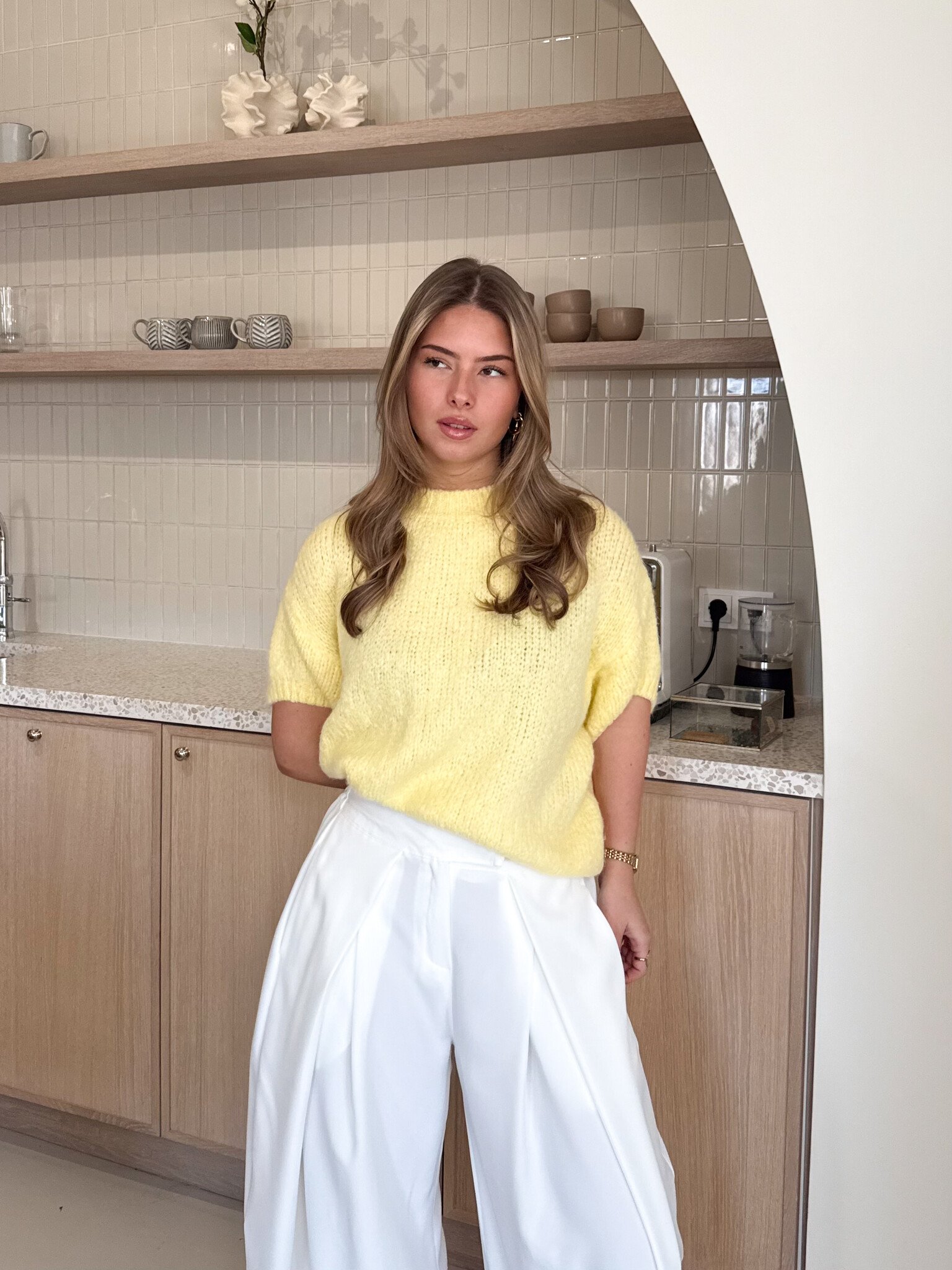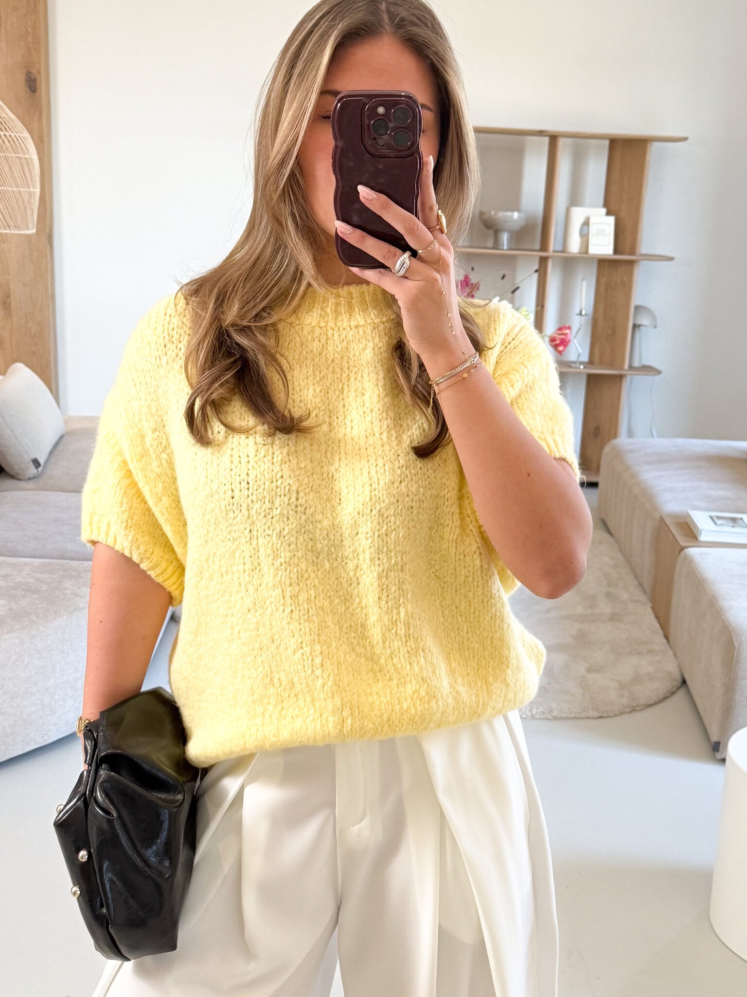 Of je nu onderweg bent naar school, werk of een koffiedate met vriendinnen: dit truitje past bij elke gelegenheid en voelt altijd comfortabel. Het is een tijdloze basic met net dat beetje extra door de combinatie van wol en korte mouwen.