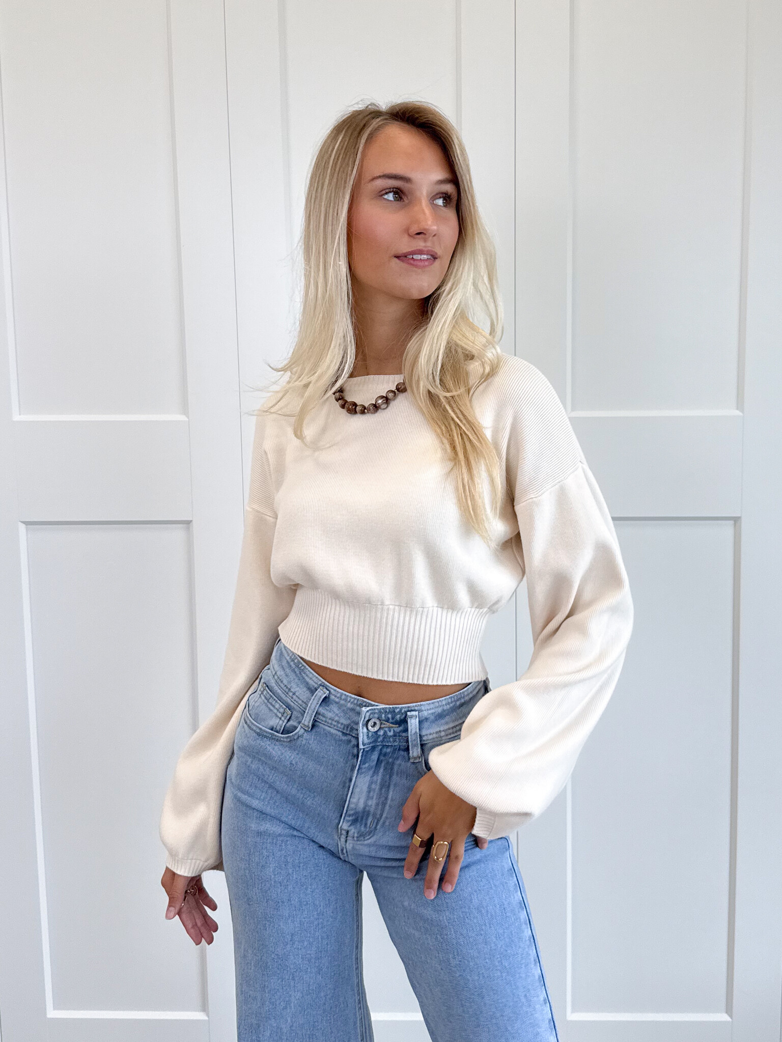 Deze cropped trui is het ultieme item voor wie houdt van een comfy maar toch super fashionable look. De lengte geeft je outfit een speels en trendy effect, terwijl de getailleerde onderkant ervoor zorgt dat de trui mooi aansluit en een vrouwelijk silhouet creëert. Ideaal om te combineren met high-waist jeans of een pantalon, zo komt de cropped fit helemaal tot zijn recht.