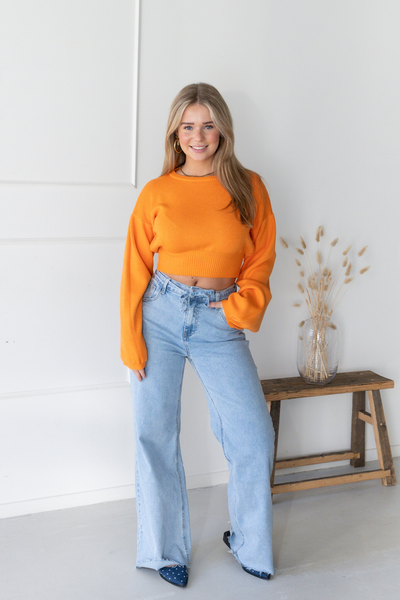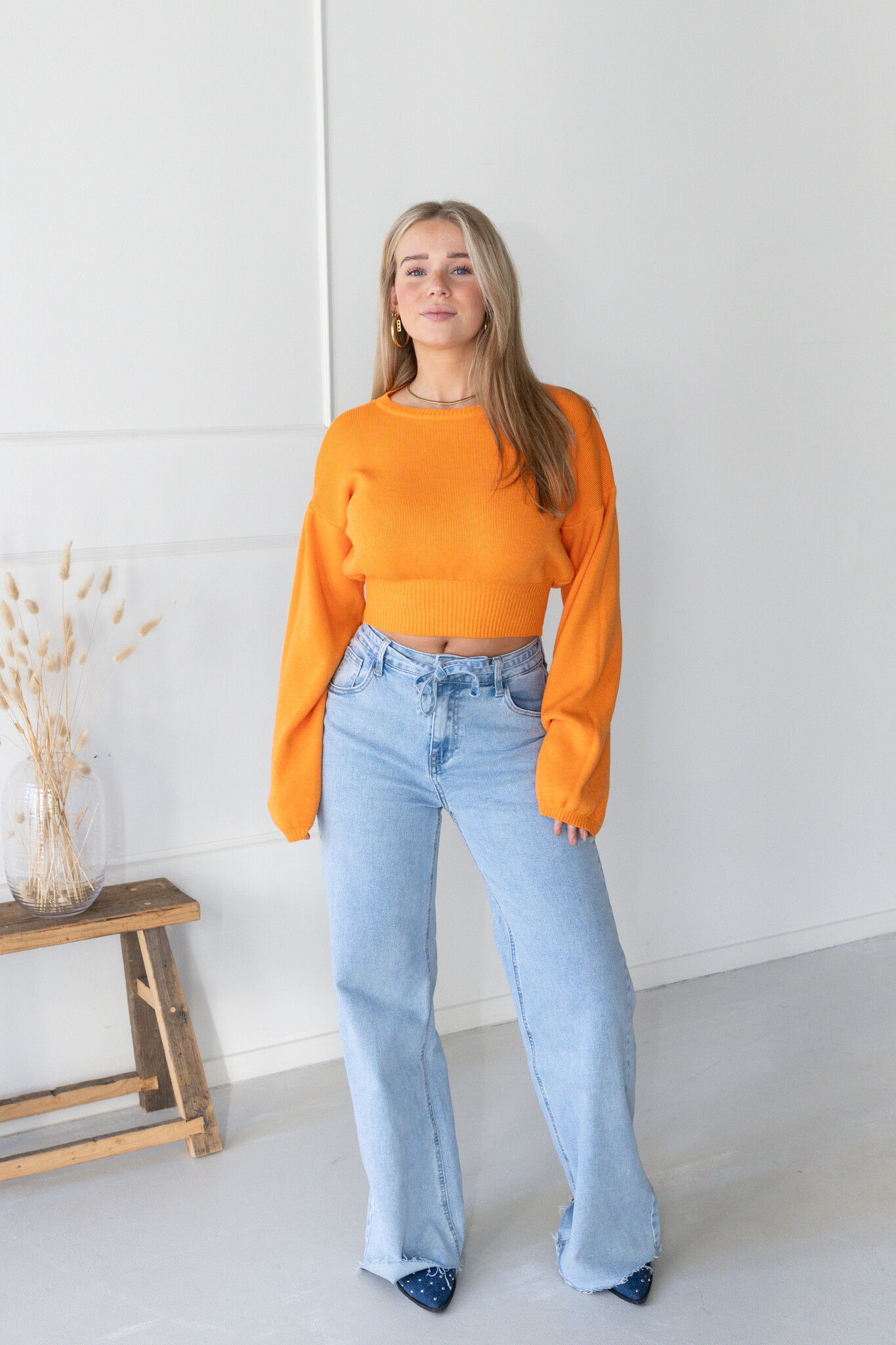De perfecte basic trui! Door het cropped model en de wijd uitlopende mouwen is de trui net even wat specialer! Deze trui zit aan de onderkant wat getailleerd, waardoor het een mooi model geeft. Een tijdloze trui die je gemakkelijk overal op kan combineren. Dit truitje valt mooi soepel en houdt je lekker warm voor de koudere dagen. Je shopt deze trui in meerdere kleuren!