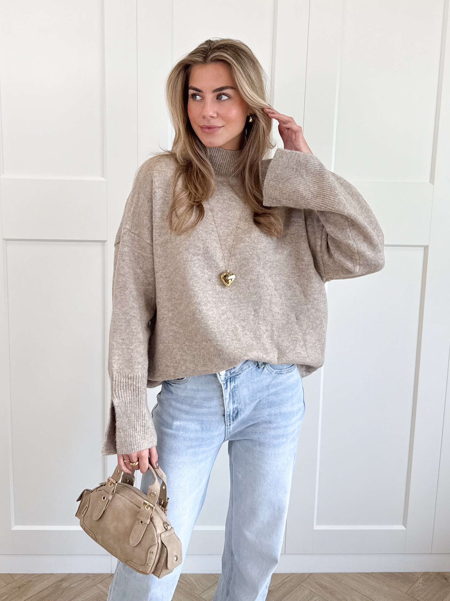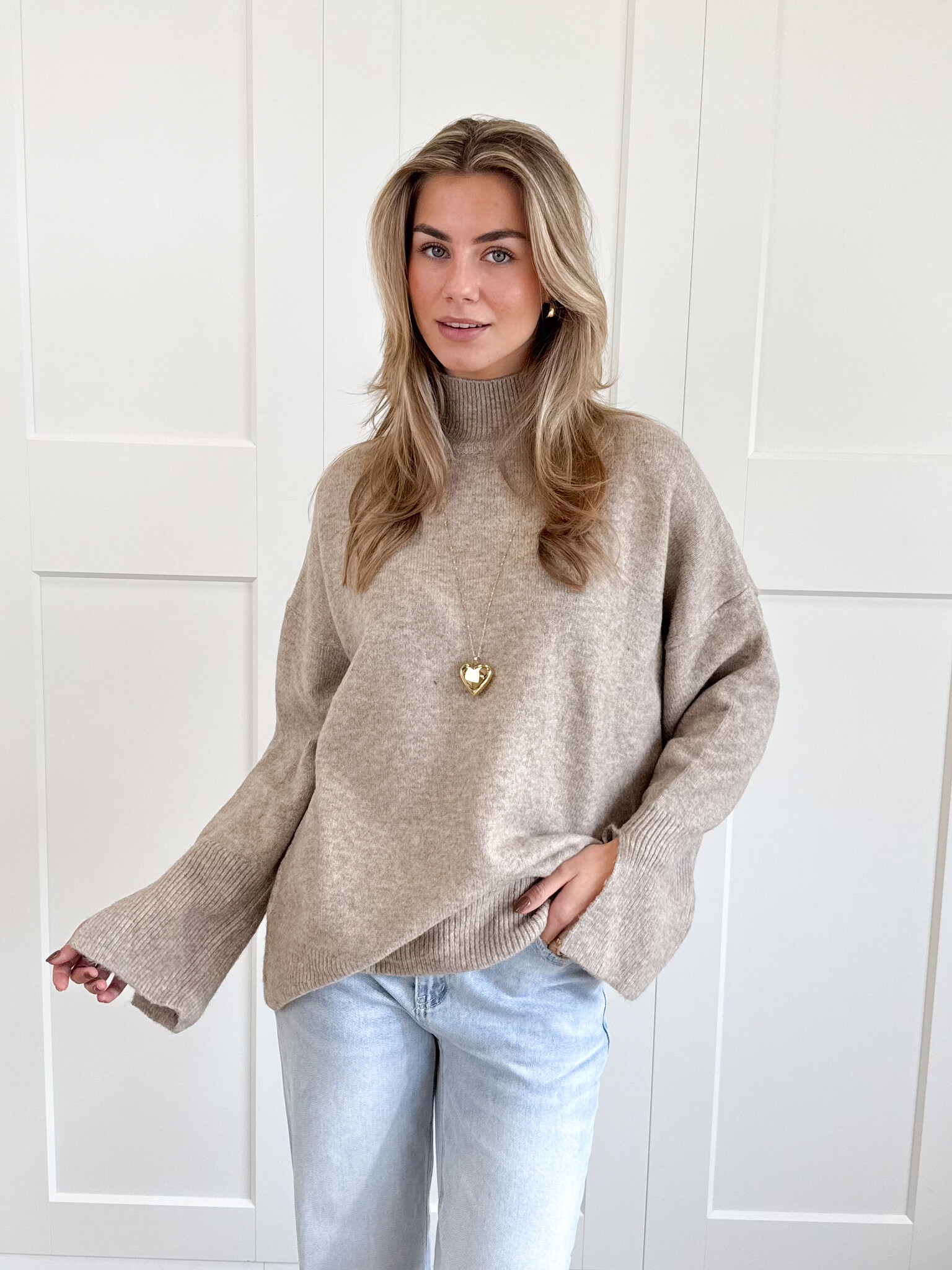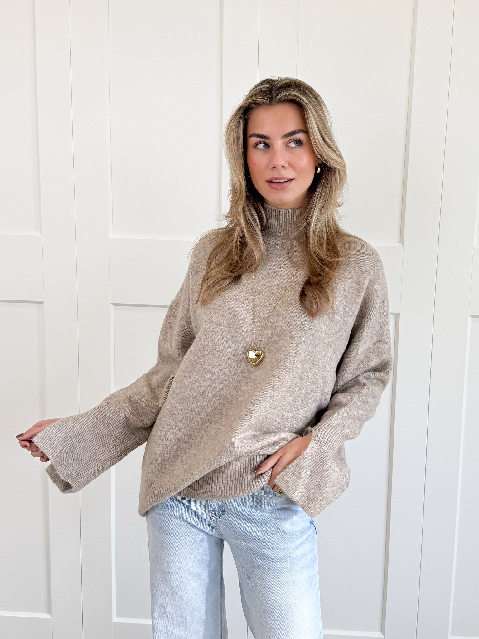 Deze oversized gebreide trui is alles wat je nodig hebt voor de koude dagen. De grove knit voelt zacht aan op je huid, terwijl de hoge hals je lekker warm houdt. De losse pasvorm zorgt voor een nonchalante maar stijlvolle uitstraling. Perfect om te dragen met een jeans voor een casual look of met een rok voor een feminine touch. De trui valt soepel, heeft subtiele details bij de boorden en is gemaakt van een warme, ademende stof. Comfortabel, cozy en super fashionable een echte musthave die je de hele winter wilt dragen!